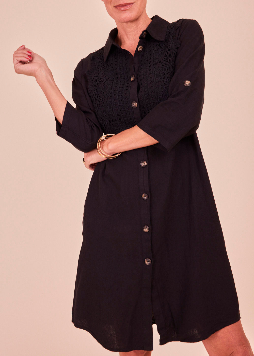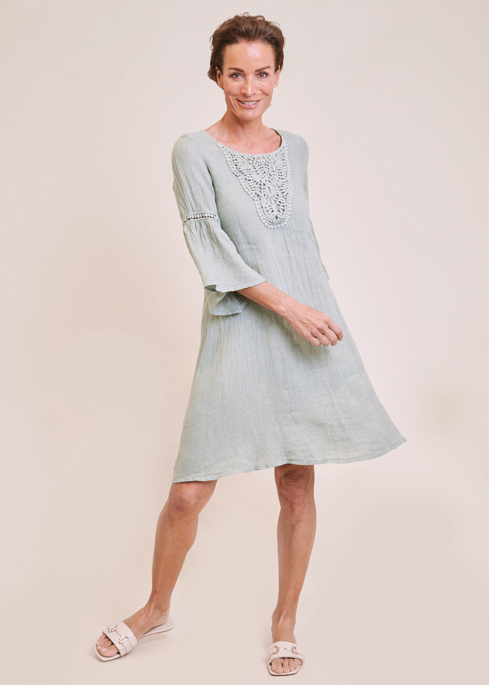 Leinenkleid mit Häkeleinsatz