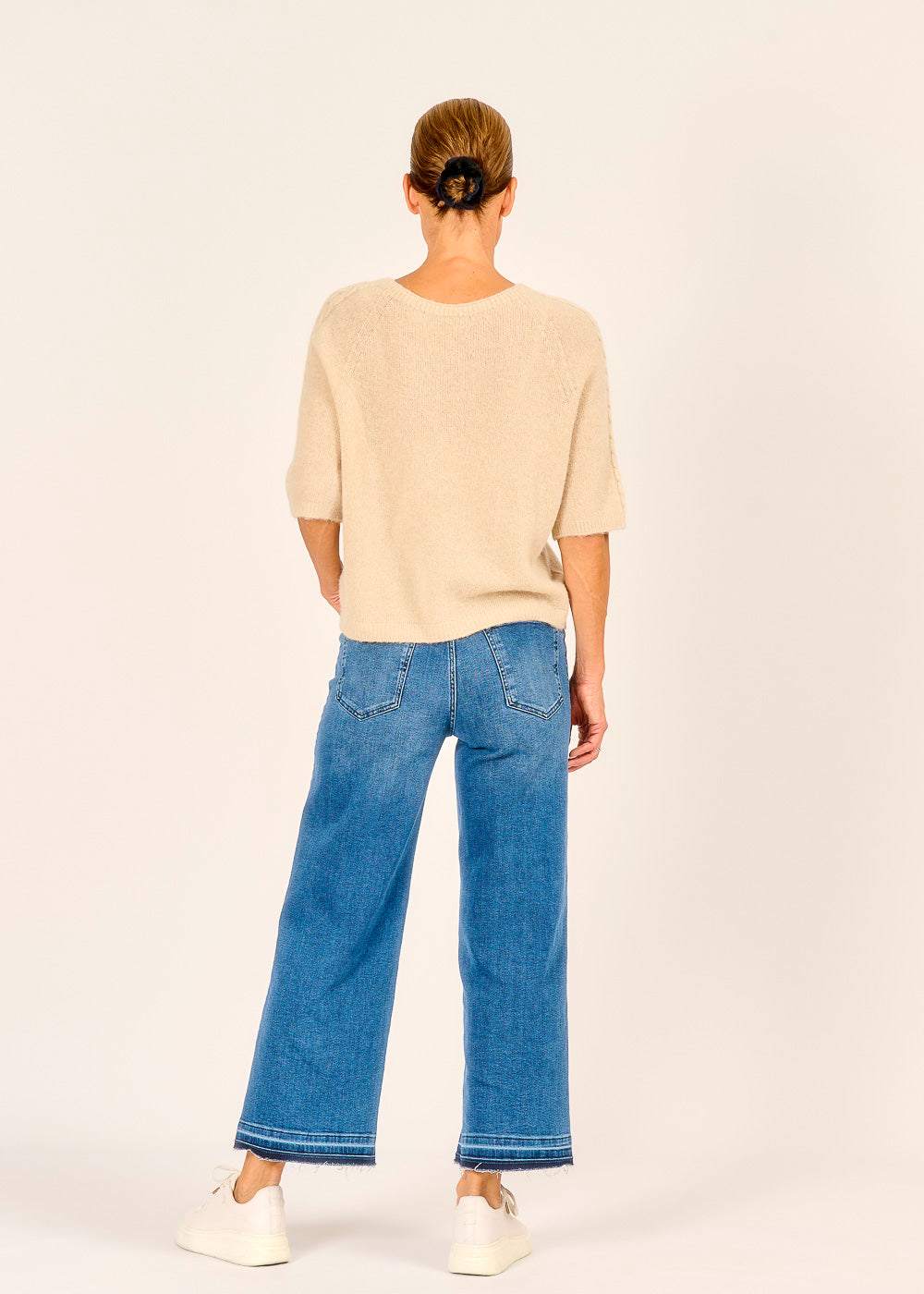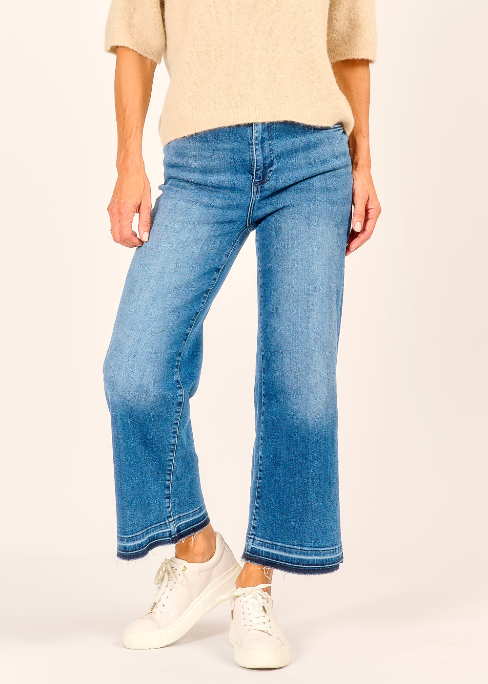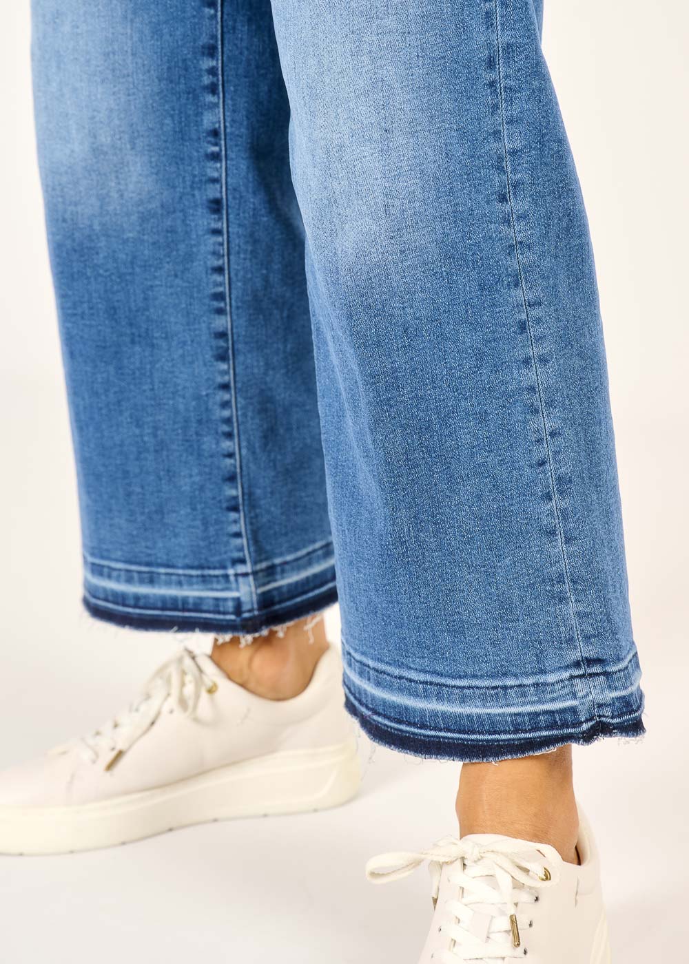 Diese trendige Culotte-Jeans ist ein Must-have für jede moderne Garderobe und überzeugt mit ihrem lässigen, weiten Schnitt. Die angesagte 7/8-Länge mit offener Saumkante verleiht ihr einen coolen, entspannten Look, der perfekt zu Sneakern oder Sandalen passt. Ein vielseitiges Kleidungsstück, das im Handumdrehen jedem Outfit eine stylische Note verleiht und dabei höchsten Tragekomfort bietet.