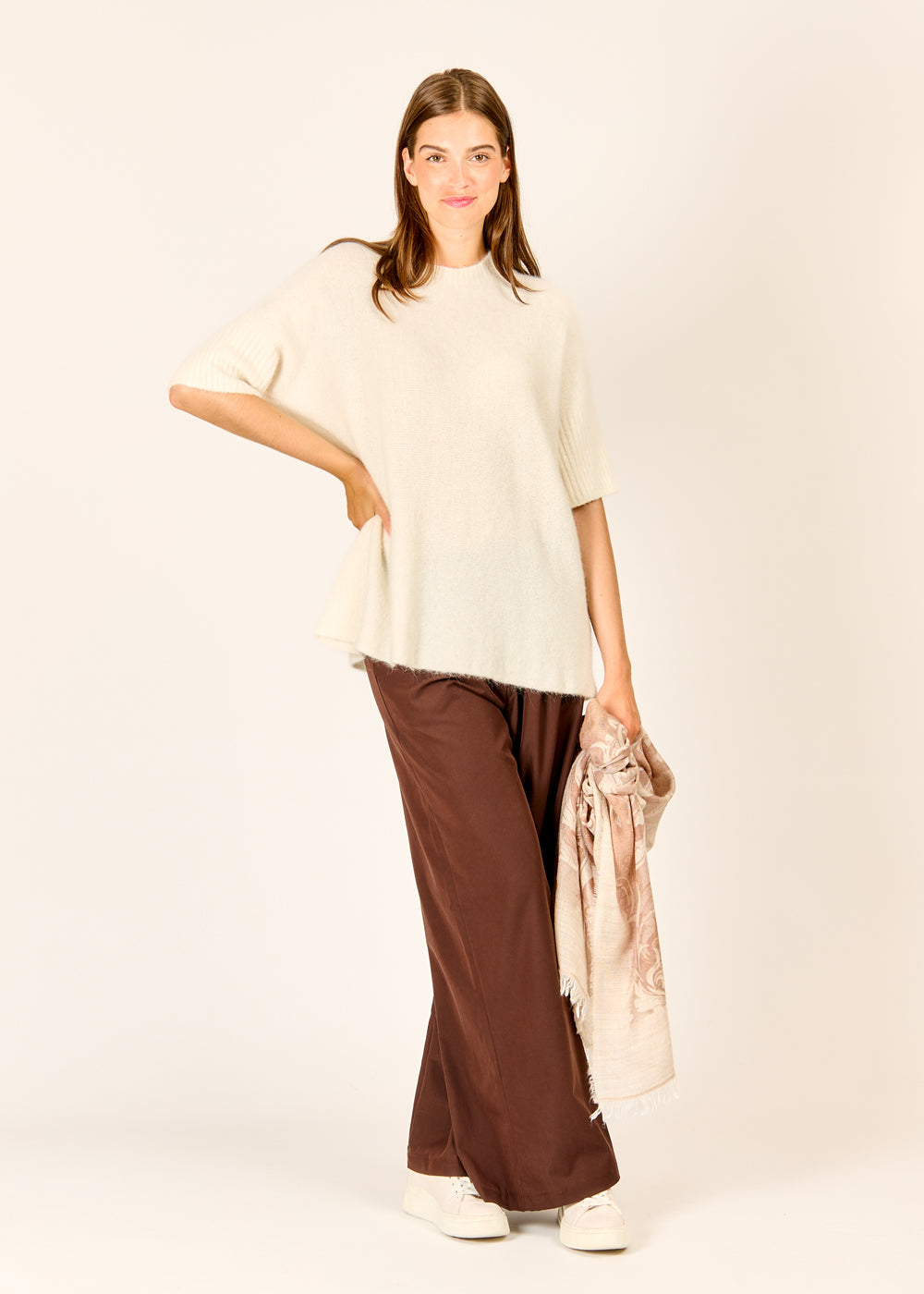 In der zeitlosen Eleganz dieses Pullovers in einem cremigen Weiß findet Gemütlichkeit eine stilvolle Ausdrucksform. Die weite Passform und die kurzen Ärmel schaffen eine moderne Silhouette, die mühelos kombiniert werden kann. Ein vielseitiges Kleidungsstück, das sowohl für entspannte Momente als auch für schicke Anlässe perfekt geeignet ist.
