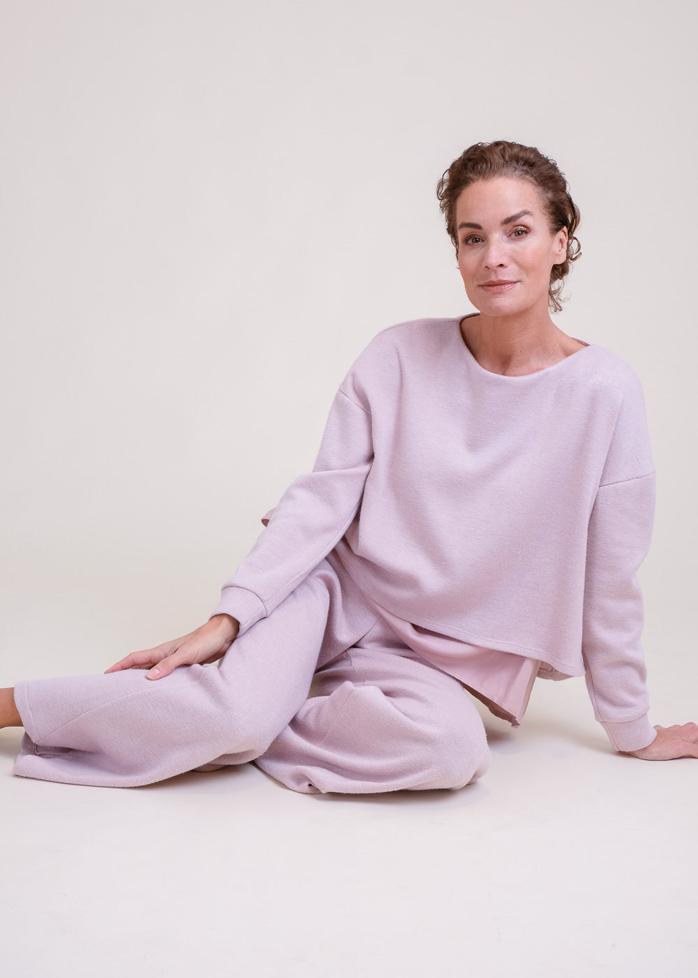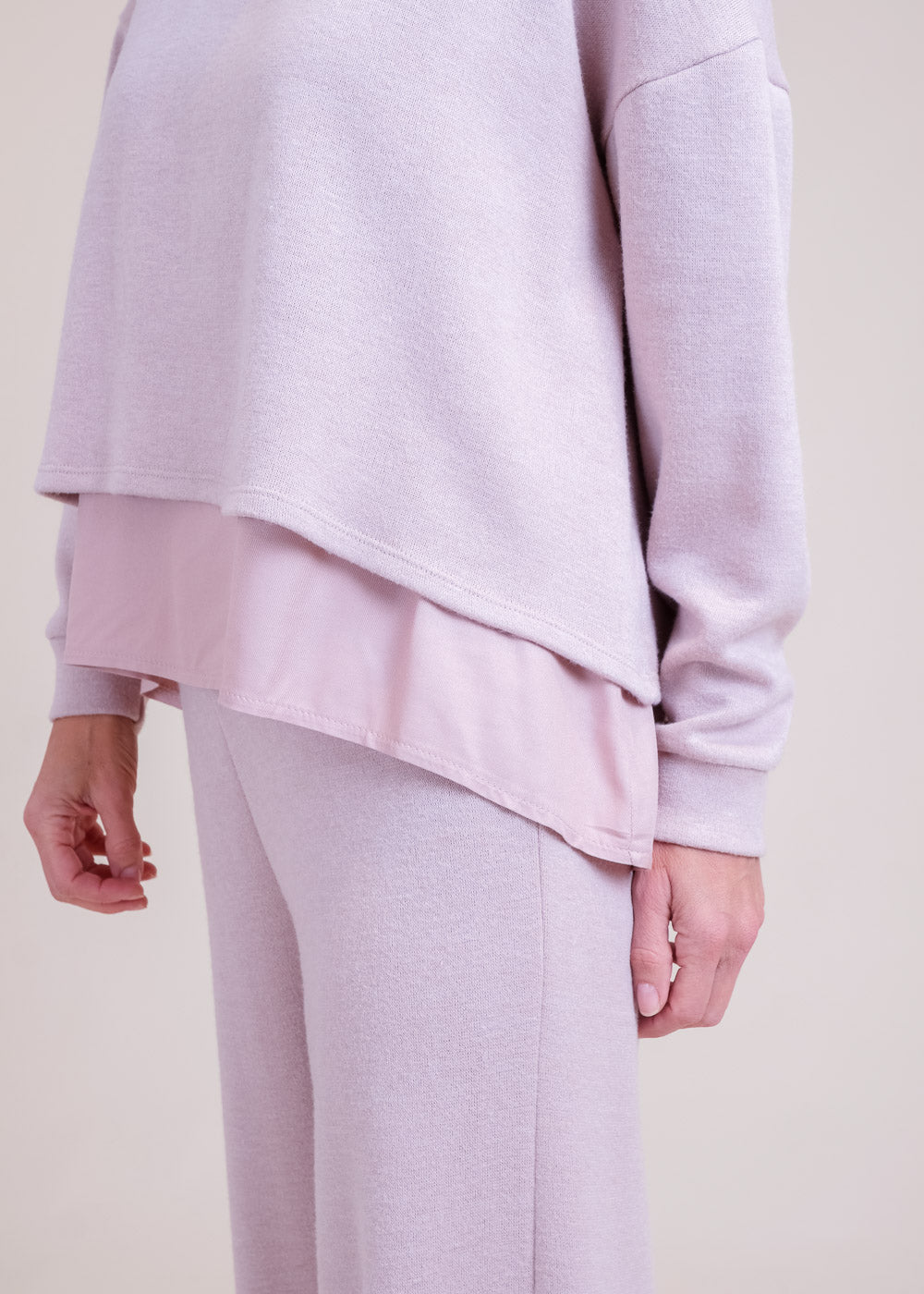 Lässig geschnittenes Sweatshirt mit überschnittenen Ärmeln und Bluseneinsatz. Bündchen an den Ärmeln. Wir haben auch die passende Sweat Hose in unserem Shop Länge:64cm.