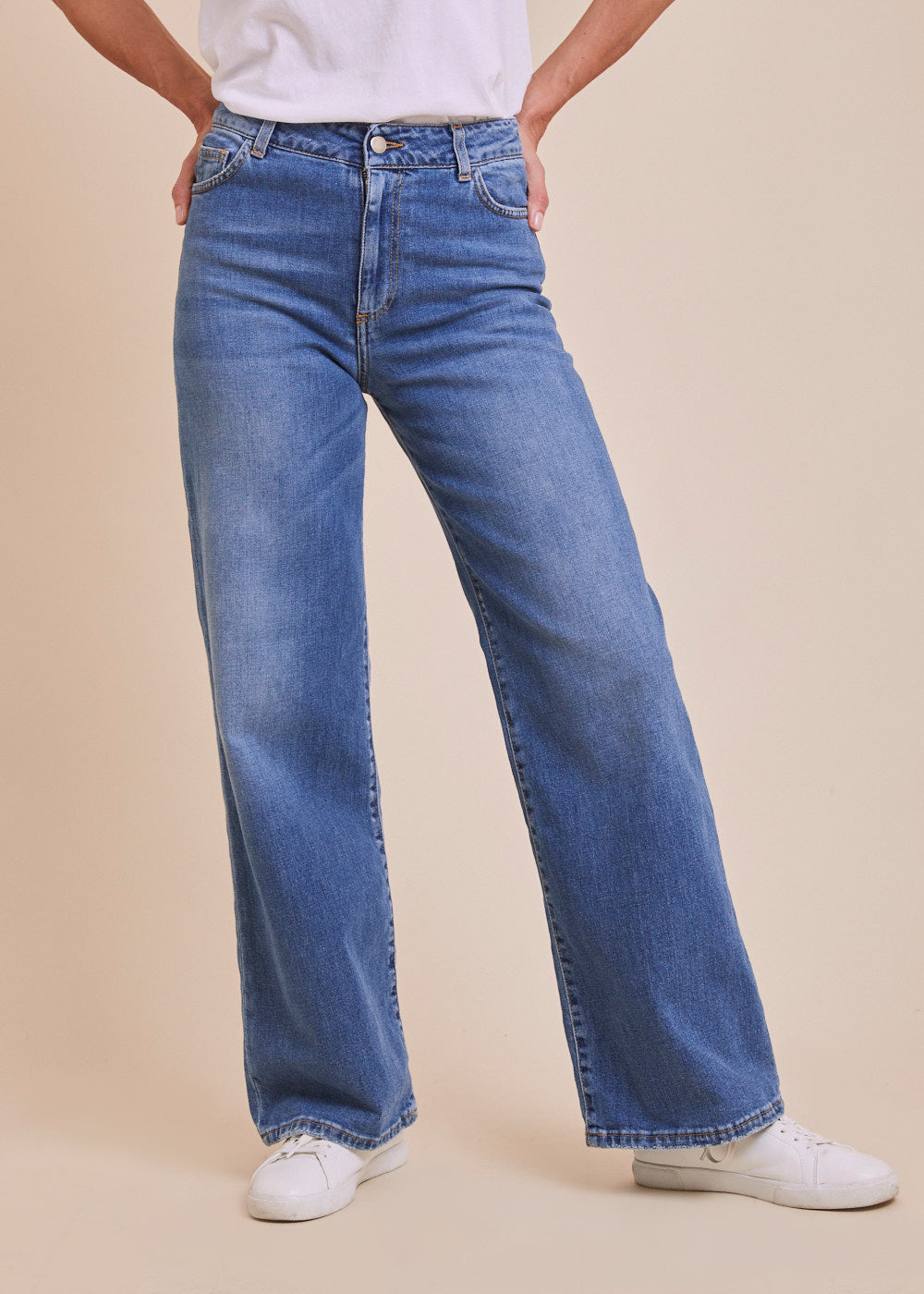 Lang geschnittene Bootcut Jeans in einer leichten Waschung. Die figurbetonte Jeans mit unten weit ausgestelltem Bein passt sich durch ihre elastischen Denimqualität bequem an. Man trägt diese Bootcut-Jeans zu Stiefeln, zu High Heels oder ganz casual einfach zu Sneakern.