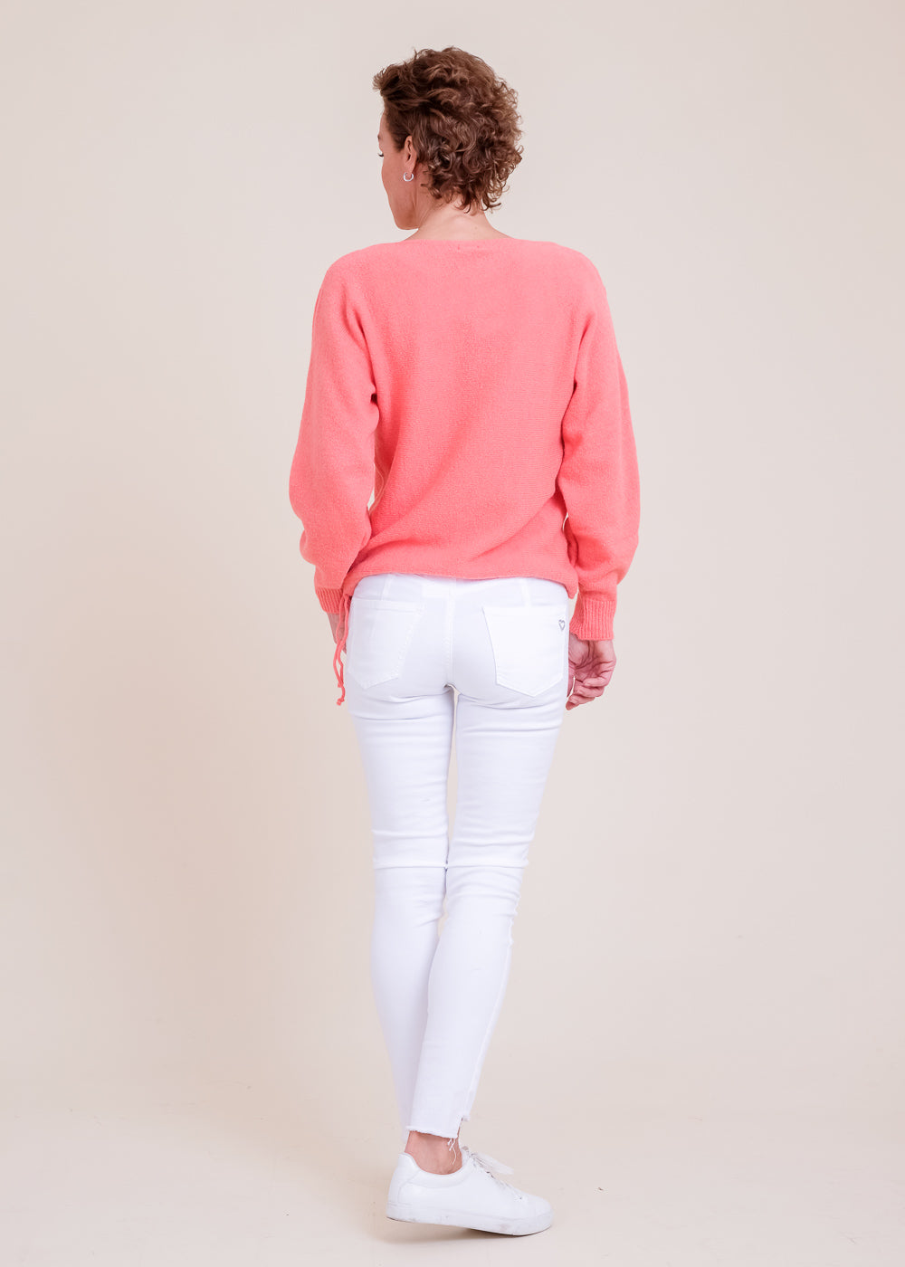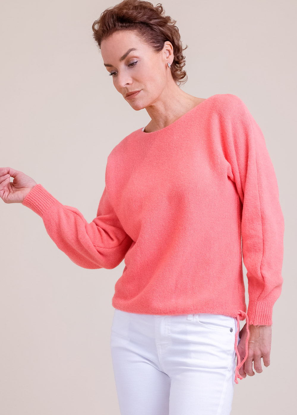 Strickpullover mit U-Bootausschnitt in einem lässigen Schnitt. Abschlussbündchen mit regulierbaren Kordelzug an der Seite. Rippenbündchen an den Ärmeln. Das Unifarbende Design schafft einen lässigen und kombinationsstarken Allrounder. Länge:68cm.