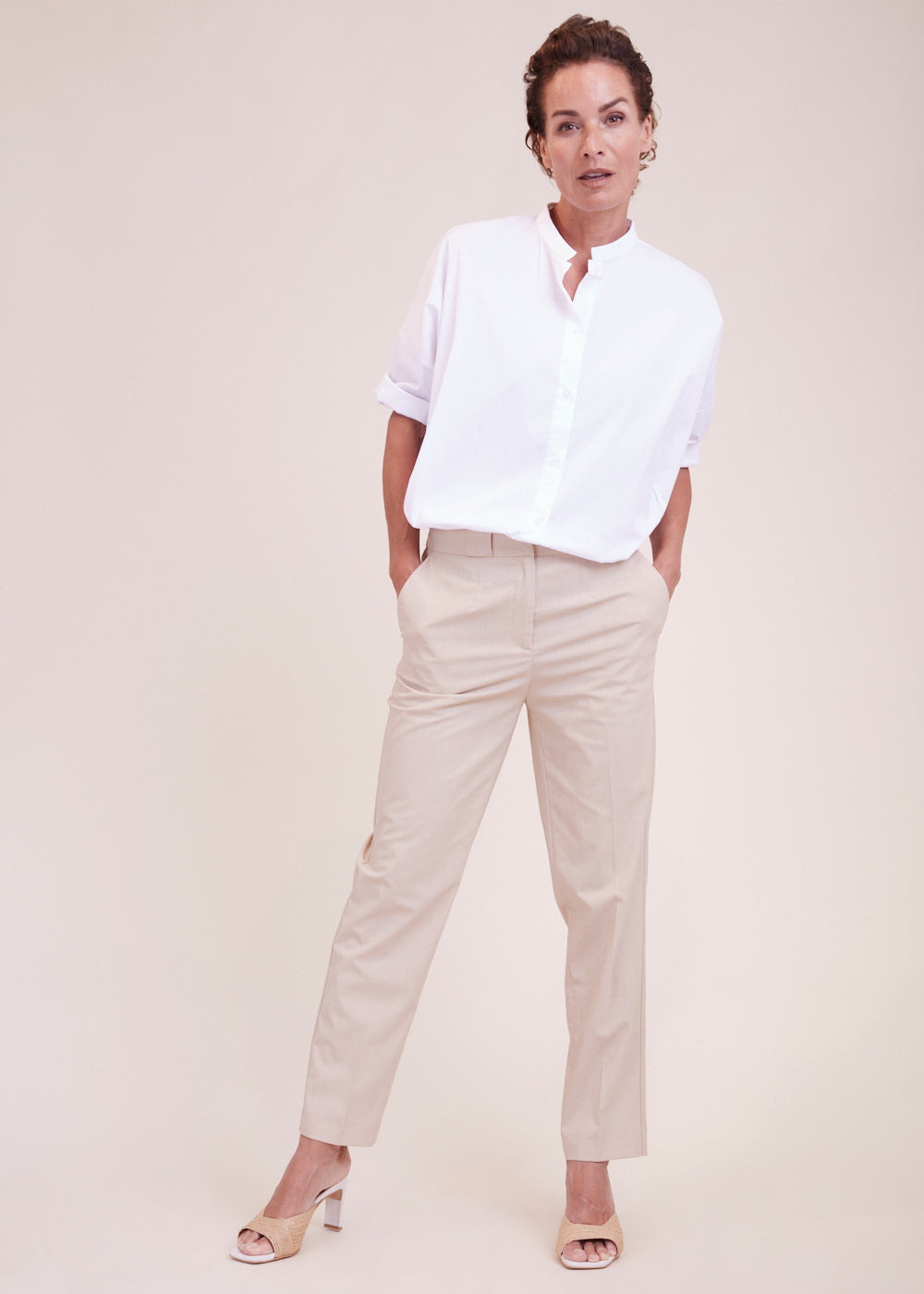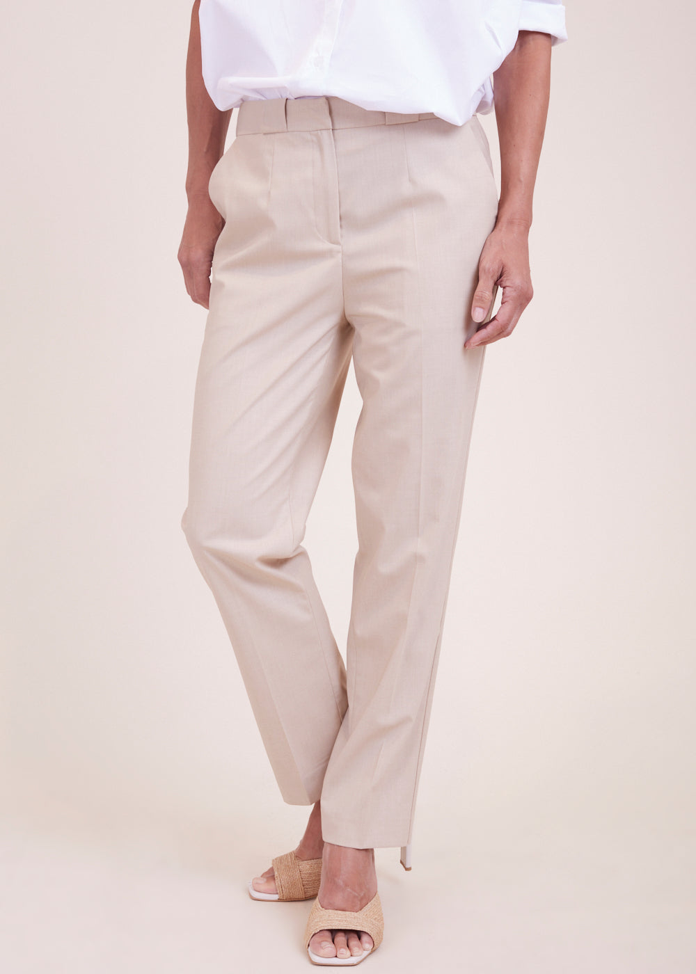 Tolle Bundfaltenhose mit geradem Bein. Die Hose lässt sich durch einen Reißverschluss und zwei Metallschieber verschließen und hat seitliche Eingriffstaschen, soviel Paspeltaschen auf dem Gesäß. Besonders toll in Kombination mit dem passenden Blazer und einen weißen Bluse. Die Hose fällt etwas größer aus.