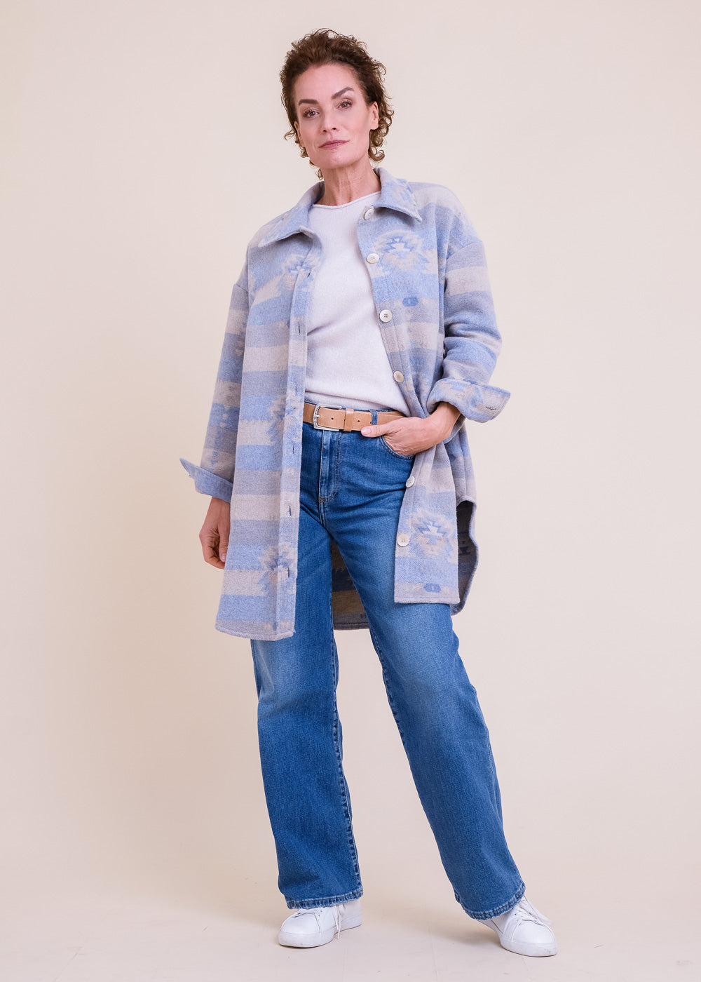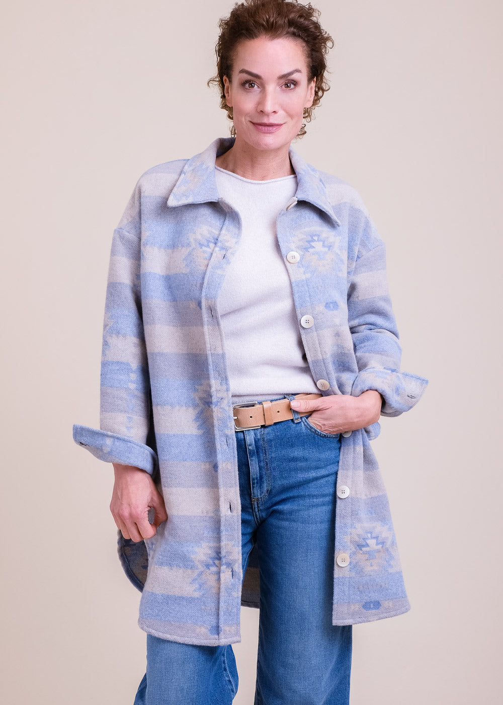 Länger geschnittener Hemdmantel mit seitlichen Eingriffstaschen und Hemdkragen. Schließbar durch eine Durchgängige Knopfleiste. Lässige Passform mit leicht überschnittenen Schultern und abgerundetem Saum. Der perfekte Begleiter zum drüber werfen. Länge:88cm.