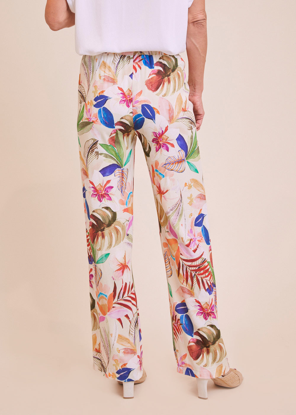 Die perfekte Hose für angenehme Sommertage. Sie hat eine bequeme Passform durch den Gummizug. Durch das großartige Viskosematerial fließt diese Hose besonders schön am Körper und ist daher perfekt für warme Temperaturen geeignet. Das besondere Muster lässt sich wunderbar mit unserem Viskoseshirt kombinieren. Länge:105cm .