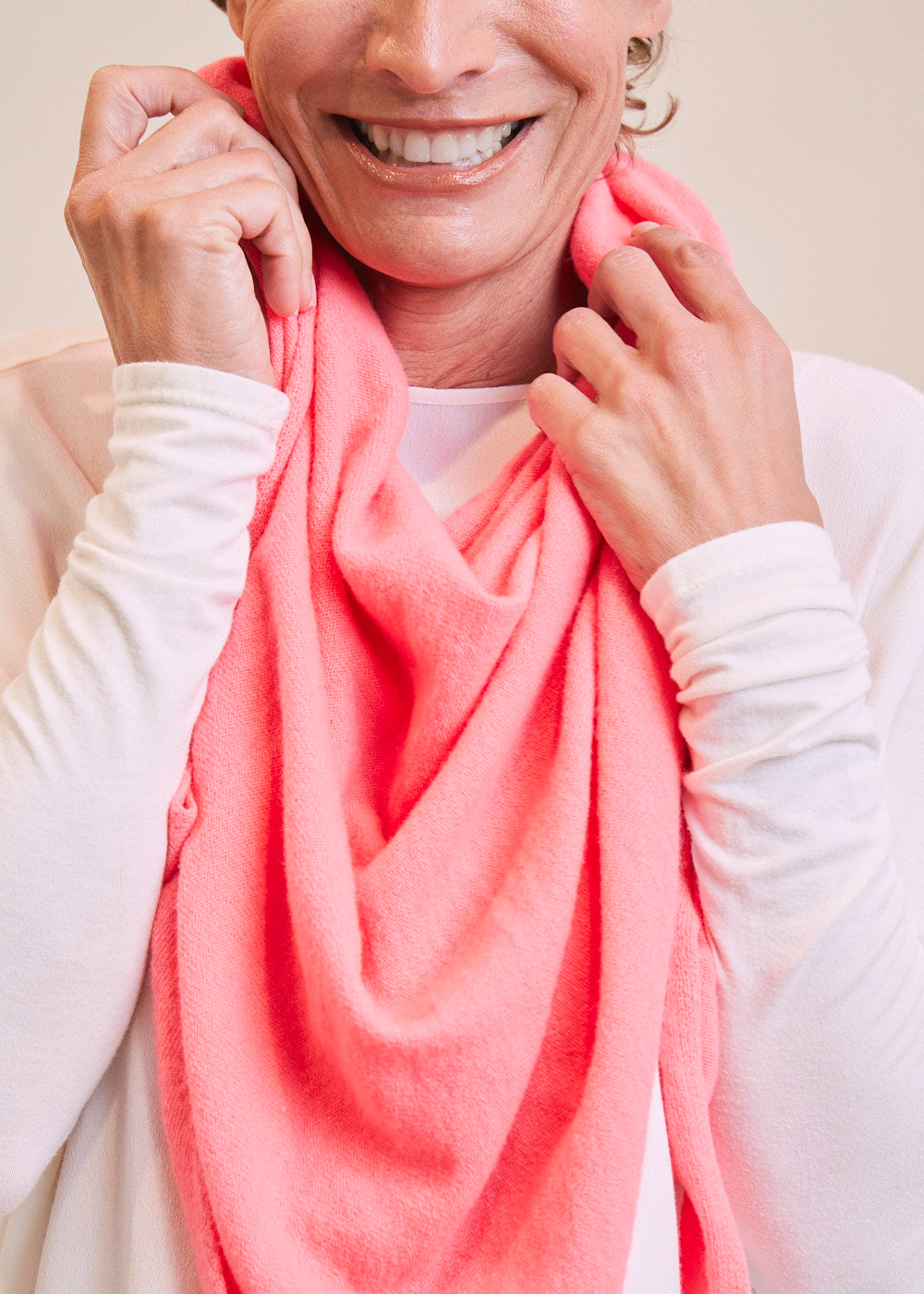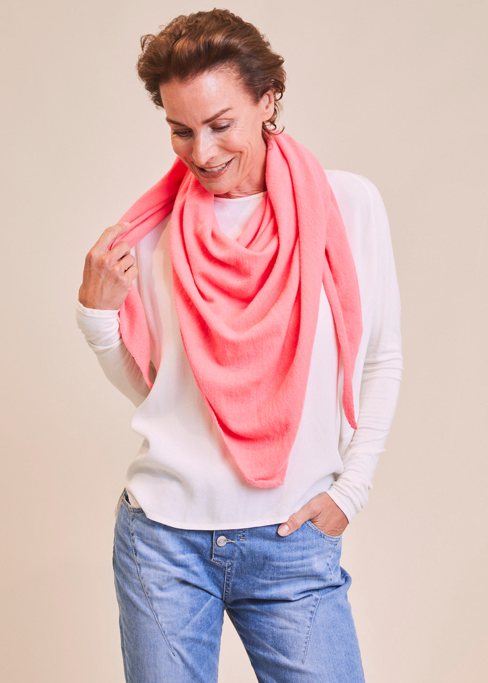 Unser geliebtes Dreieckstuch aus 100% feinsten Kaschmir. Für den absoluten Wohlfühl-Look. Es hat fein umsäuberte Kanten. Dieses besonders weiche Kaschmirteil lässt sich zum Kleid kombinieren, indem du es als Stola nutzt. Darüber hinaus ist es auch ein stylischer Begleiter zu unseren neuen Frühlings-Looks. Ein absoluter Alltagsheld, der jedem Outfit einen großartigen Touch verleiht.