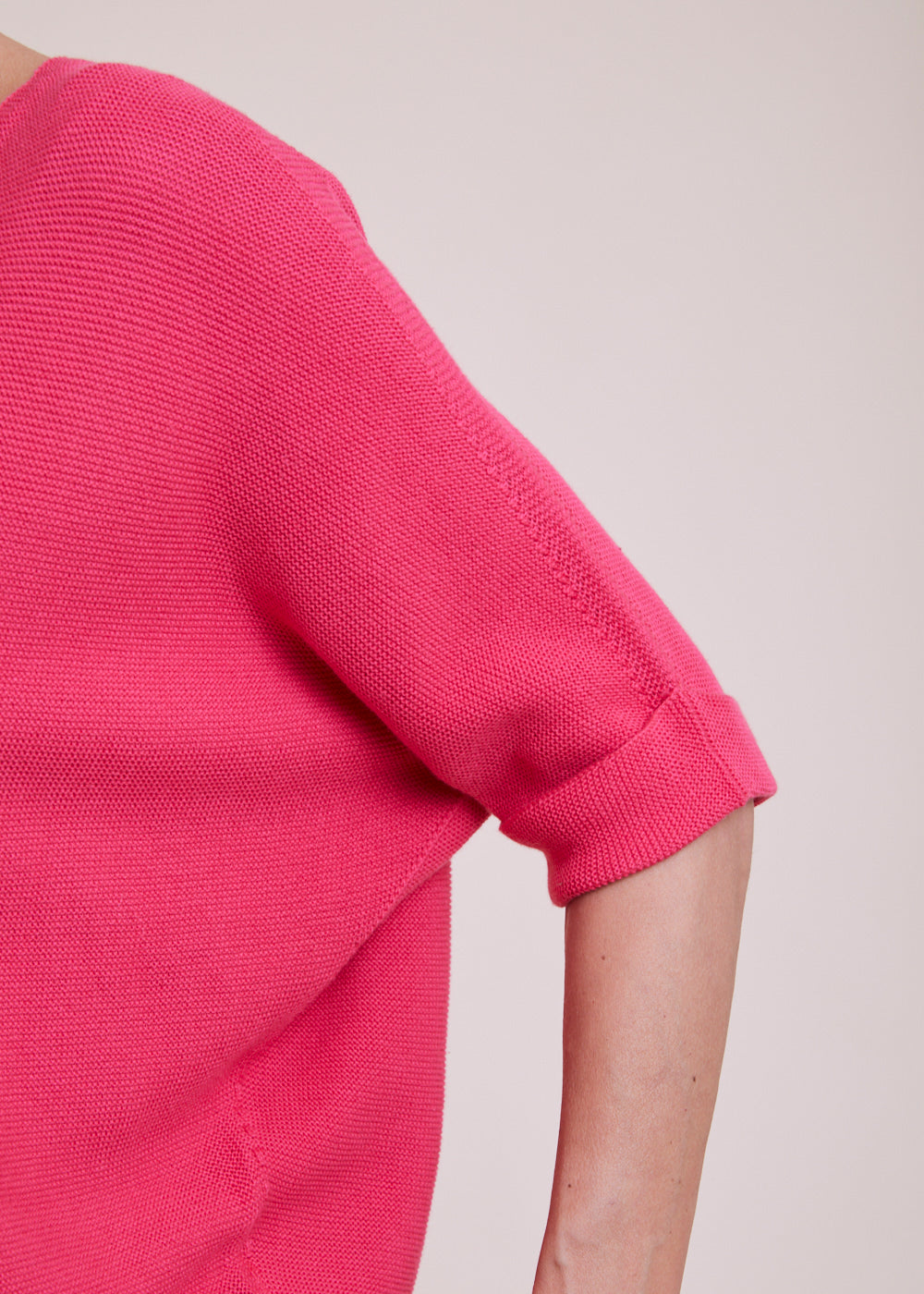Locker geschnittener V-Ausschnitt mit dreiviertel Armen aus einem reinen Baumwollmaterial. Er hat Rippenbündchen an den Armen und am Saum. Einfach zum drüber werfen und wohlfühlen. Tragt diesen leichten Pullover gerne mit einer weißen Hose oder Jeans, mit Sneakern und einem unserer Basic Tops, um den Look zu vervollständigen.