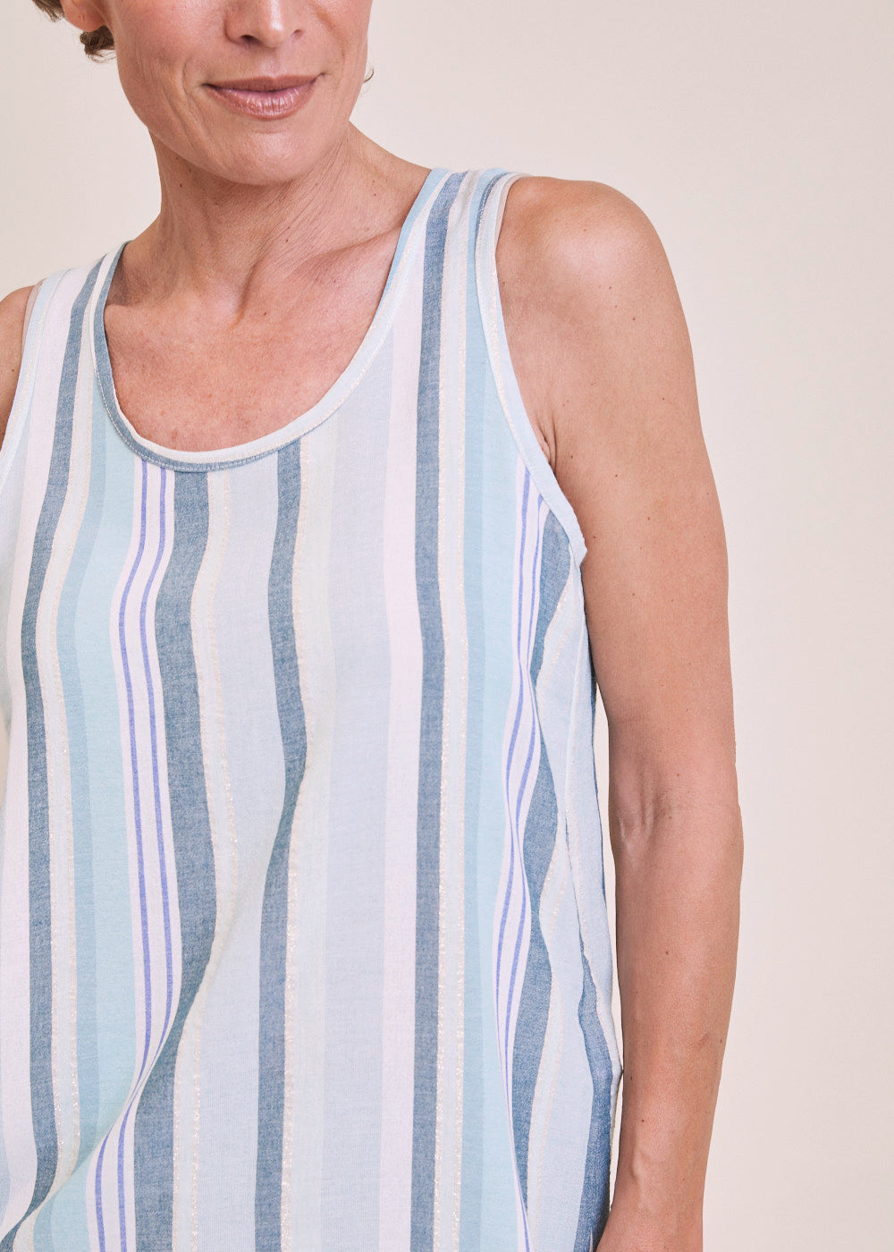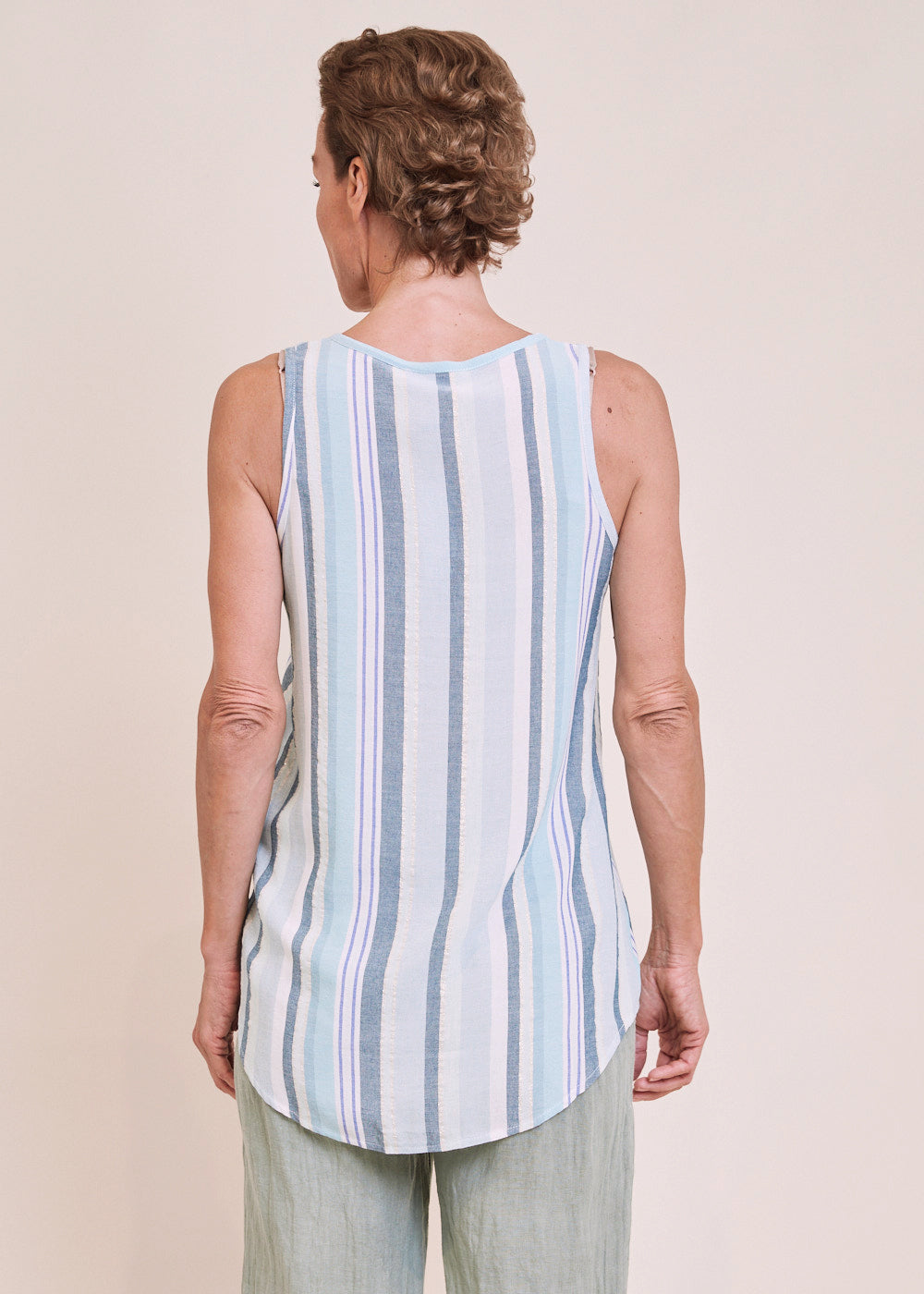 Unser sommerliches Top in Streifenoptik fällt locker um deinen Körper und ist ein hervorragender Kombiartikel für deinen Look. Die Arme und der Hals sind weit ausgeschnitten. Durch den asymmetrischen Stil, der sich nach Hinten verlängert, wird deine Silhouette perfekt umschmeichelt. Der optimale Begleiter für warme Temperaturen!