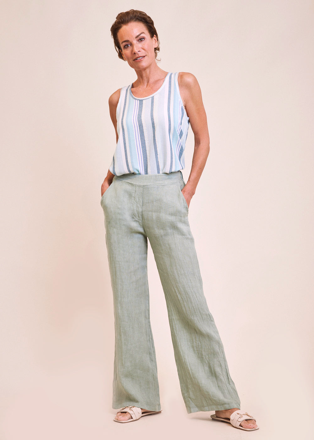 Ein Klassiker aus Leinen. Diese Hose überzeugt mit ihrem bewährten Gesamtkonzept aus Material und Style. Sie ist lässig in der Silhouette geschnitten und darüber hinaus noch kühlend auf der Haut durch ihr reines Leinen Material. Damit sind sie auch an heißen Tagen bestens versorgt. Durch ihren Gummibund hat sie darüber hinaus noch einen sehr angenehmen Tragekomfort. Mit seitlichen Eingriffstaschen.