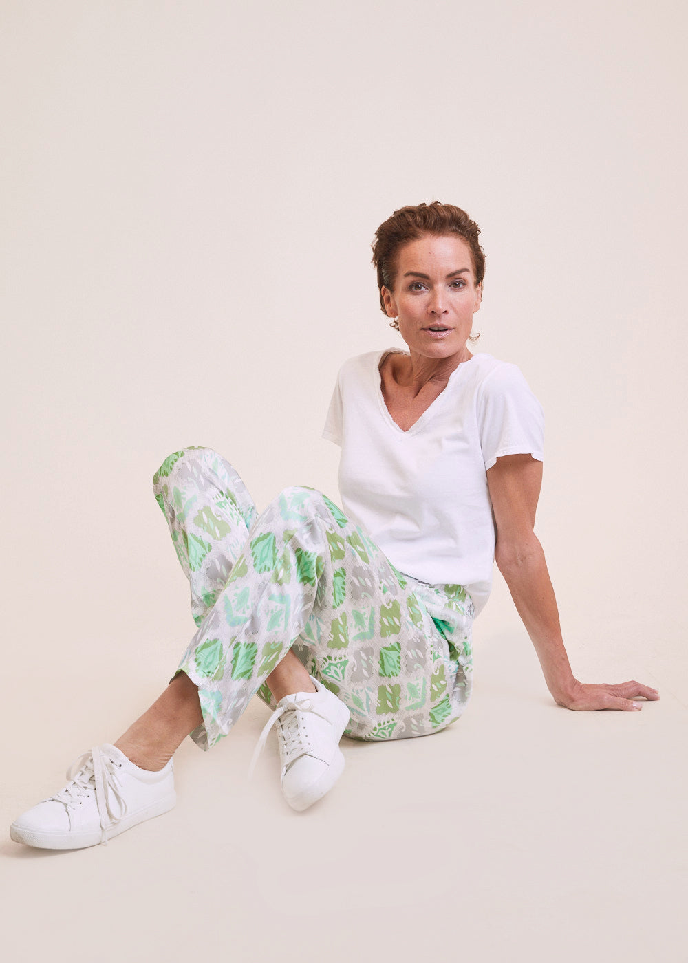Tolles Basic-Shirt mit Kurzarm. Das T-Shirt hat einen V-Ausschnitt mit offenen Kanten und einen leicht transparenten Look. Ein perfekter Artikel, um dein Outfit zu komplimentieren!