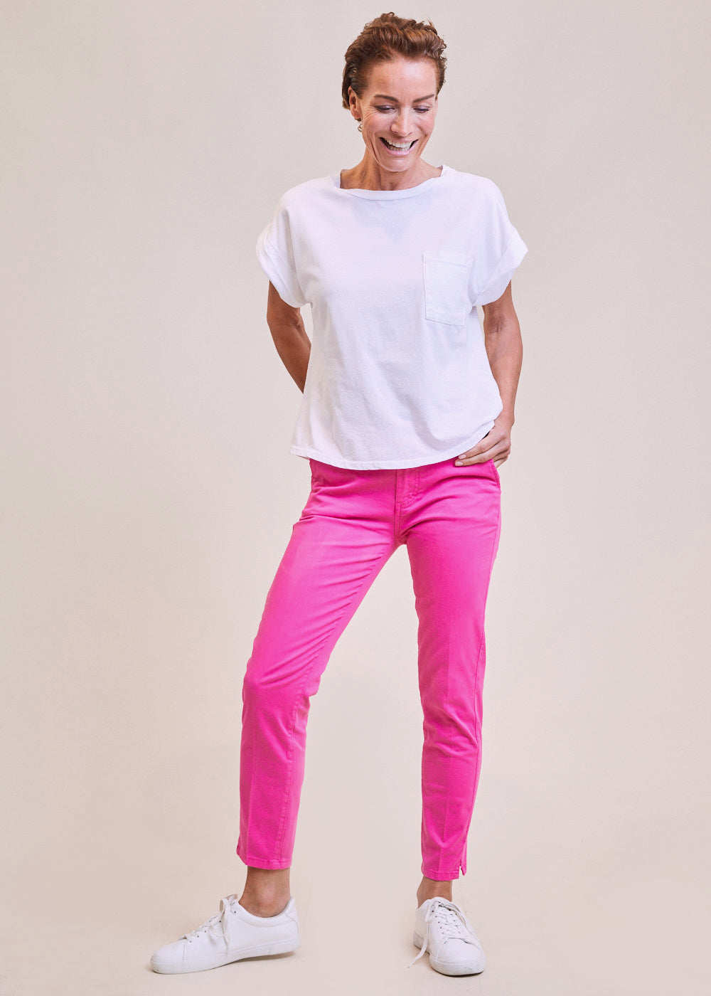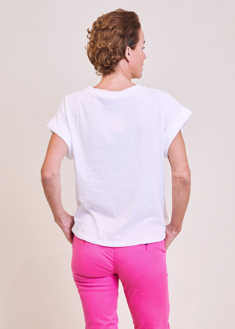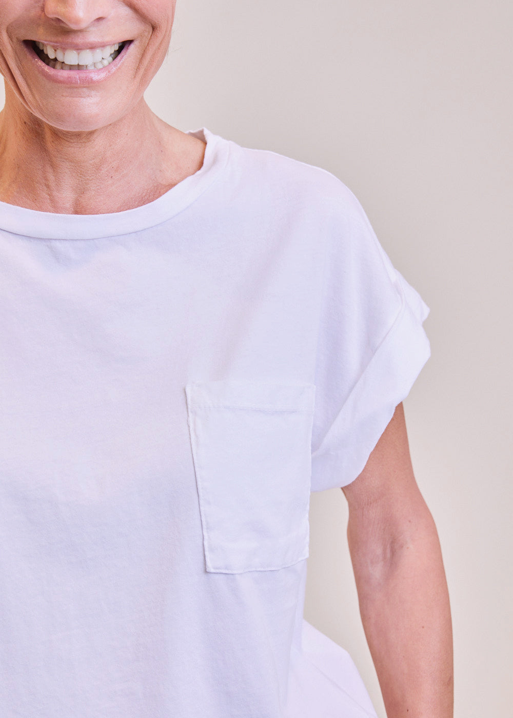 Ein toller Basicartikel mit unendlichen Kombinationsmöglichkeiten! Das Shirt besteht zu 100% aus Baumwolle. Die kurzen Ärmel sind einmal umgeschlagen. Aufgesetzte Tasche auf Höhe der Brust.
