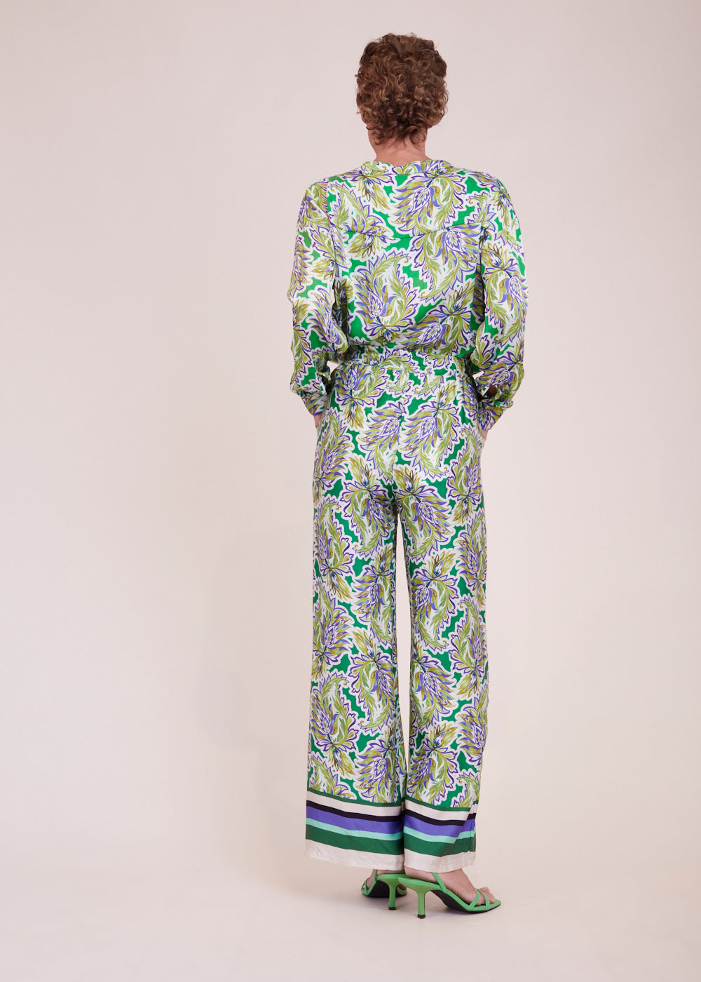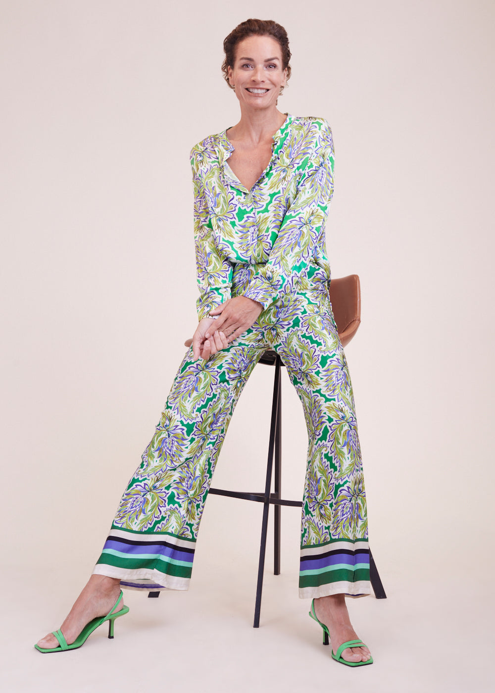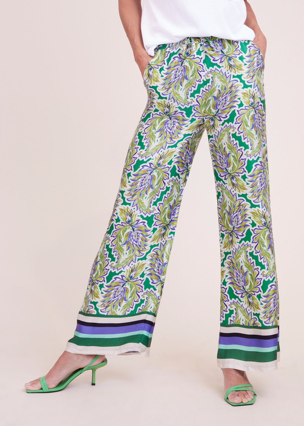Raffinierte Hose mit ausgestelltem Bein und All-Over-Print in frischen Sommerfarben. Der Bund ist mit einem Gummizug versehen für ein super leichtes Tragegefühl. Besonders schön in Kombination mit der passenden Bluse und ein echtes Must-Have für den kommenden Sommer.