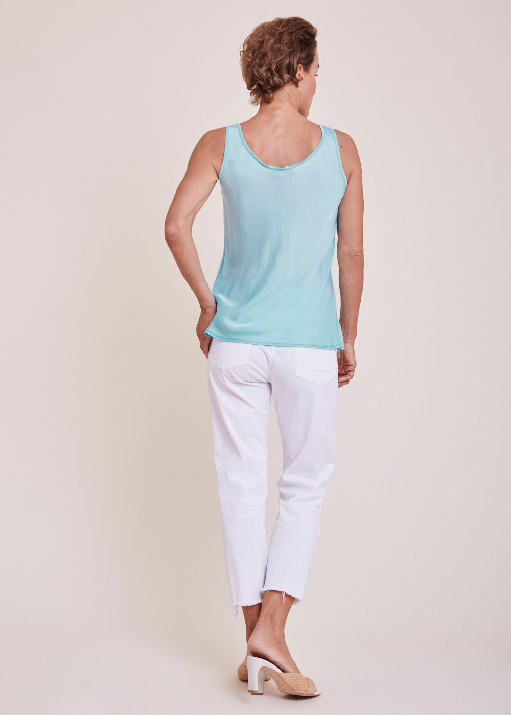 Sommerliches Satintop mit breiten Trägern in einem luftig-leichten Schnitt. Ein besonders schöner Kombinationsartikel, auch für elegantere Looks.