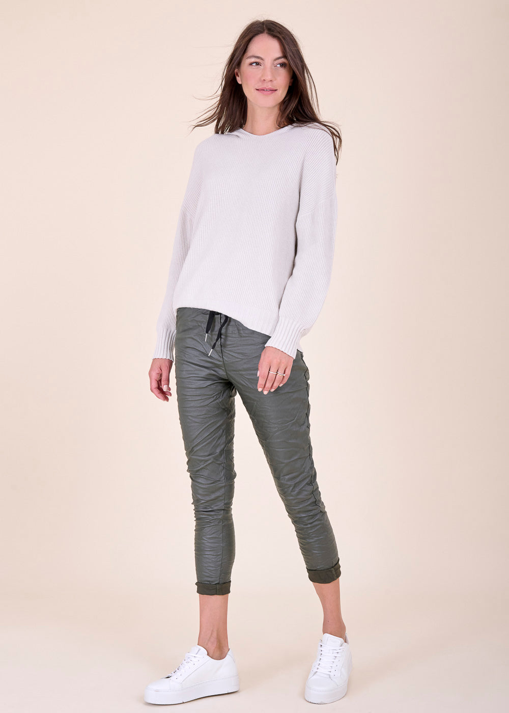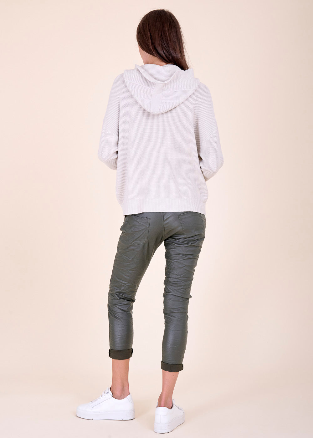 Gemütlicher Rippen Hoody aus unserem Kuschelgarn. Er hat eine Kapuze, überschnittene Schultern und Rippendetails an den Ärmeln und am Saum. Ein absoluter Allrounder der sich zu allem kombinieren lässt und darüber hinaus noch super bequem ist.