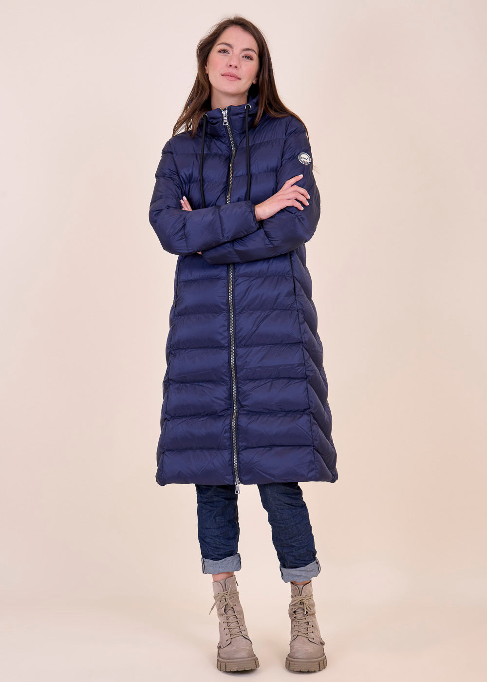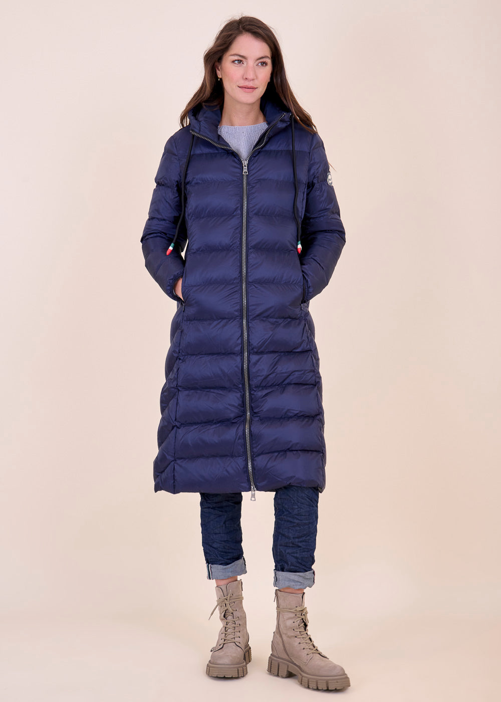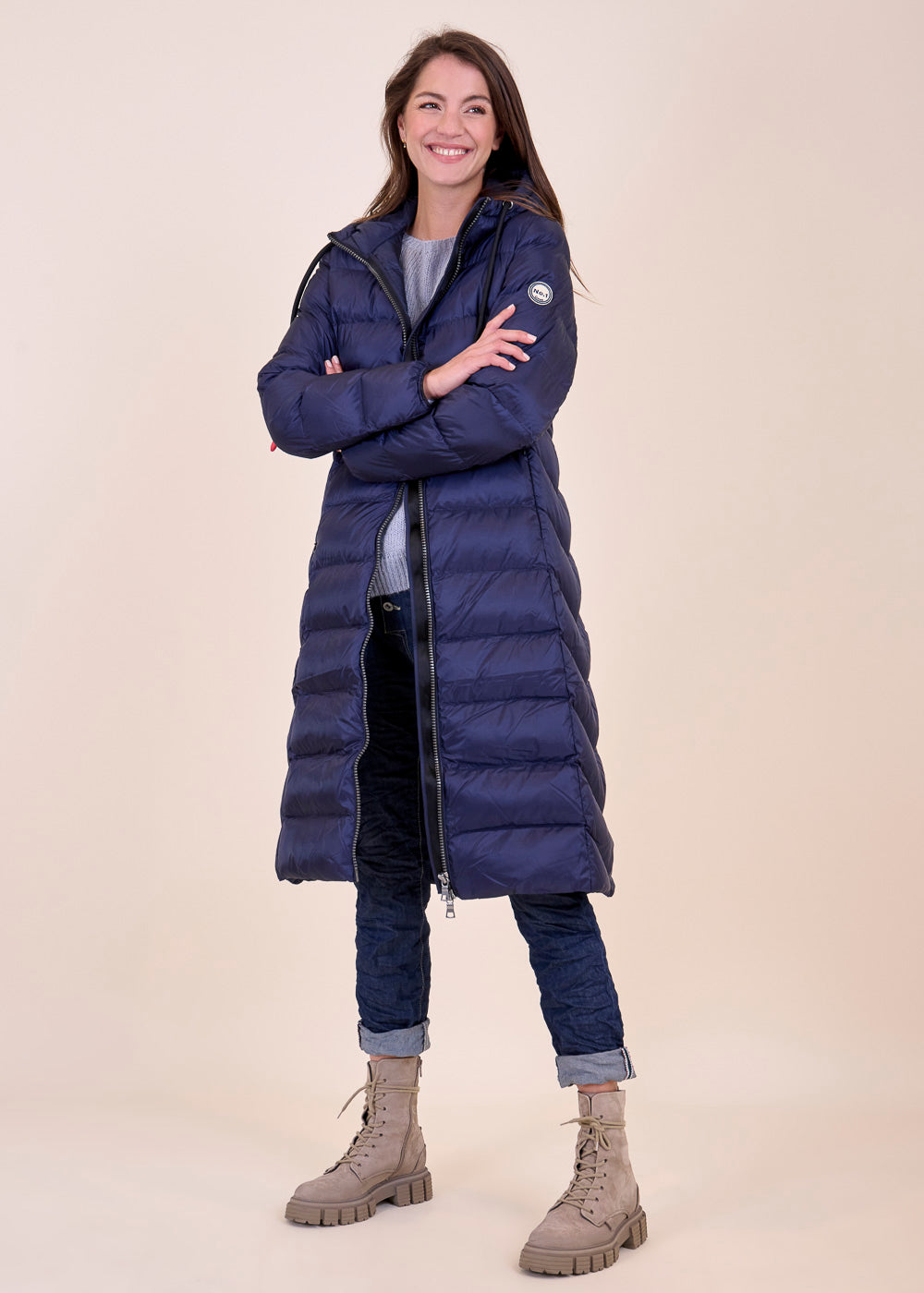 Taillierte Steppjacke mit hochschließenden Kragen. Sie hat eine Kapuze mit Tunnelzug und ist durch einen Zwei-Wege-Reißverschluss verschließbar. Die seitlichen Eingriffstaschen sind mit einem nahtfeinem Reißverschluss versehen. Durch seine Teflon EcoElite-Beschichtung™ ist die Steppjacke Wasser- und schmutzabweisend.