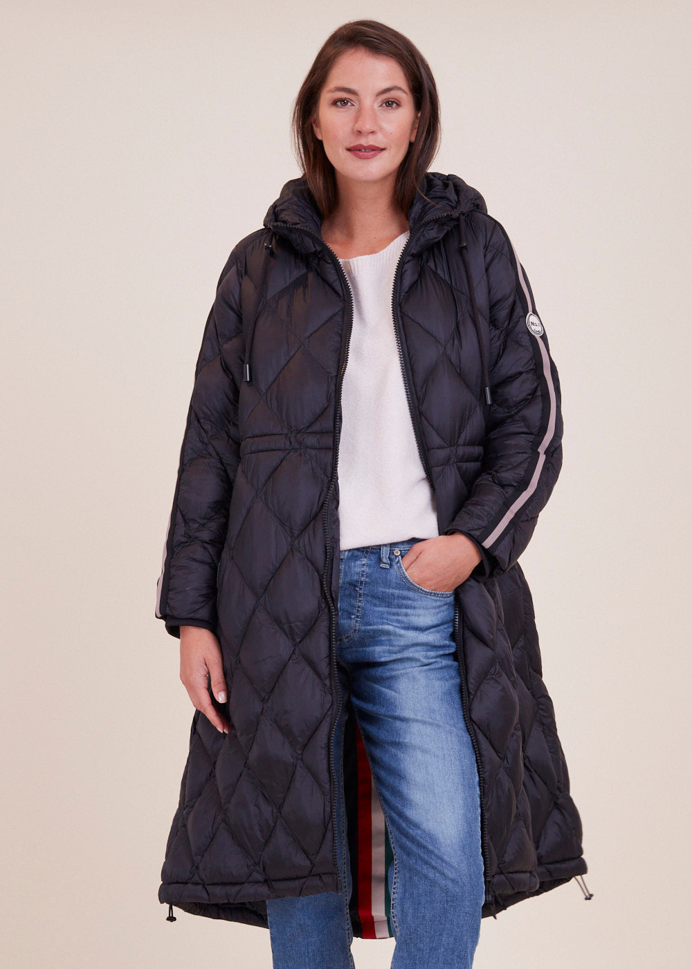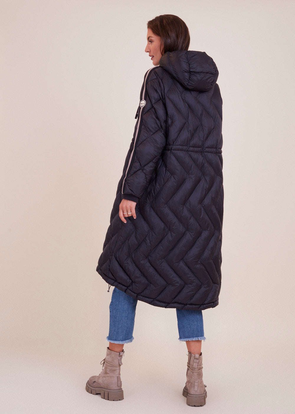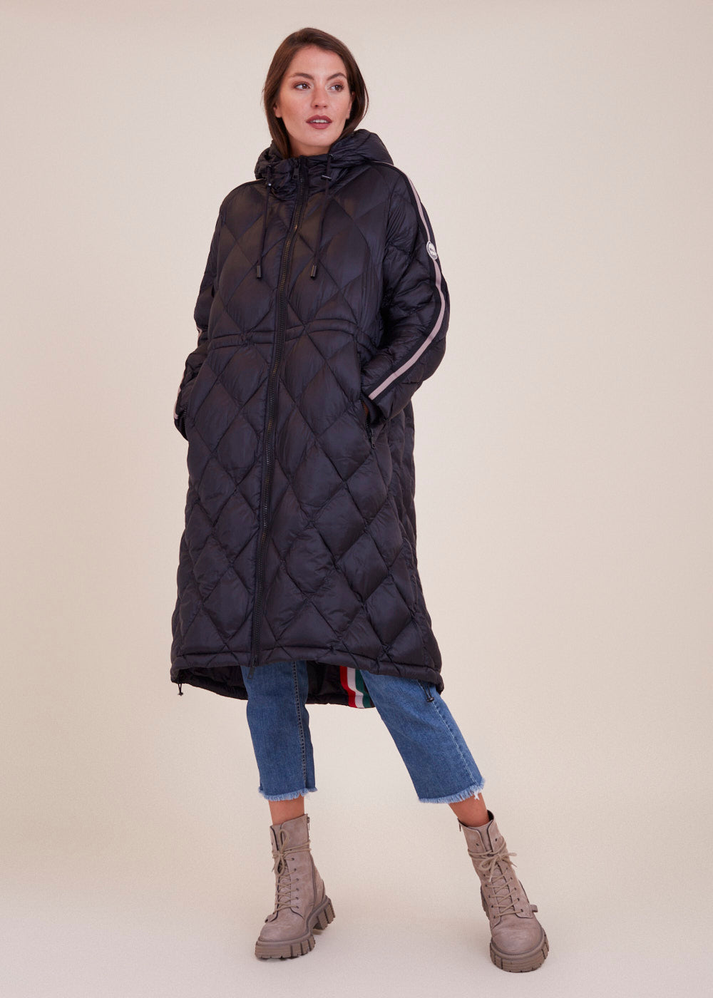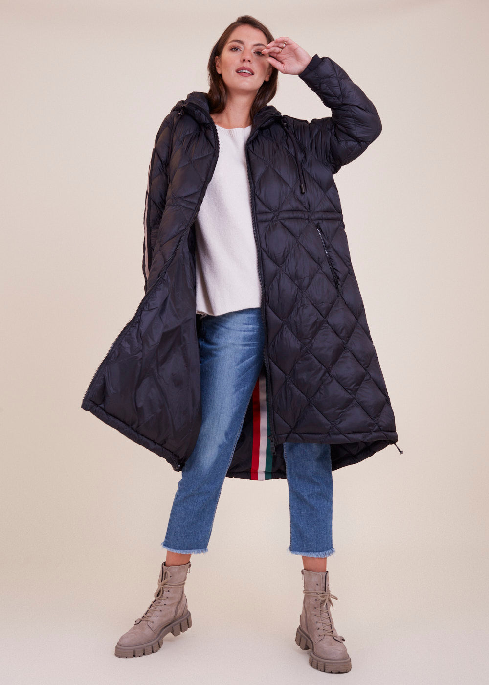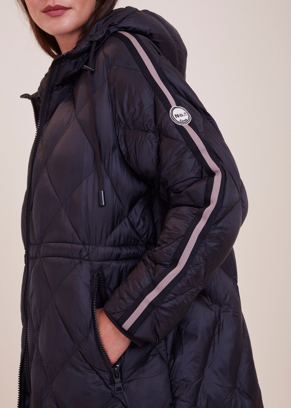 Wir lieben Como! Der trendige Steppmantel des Labels No.1 Como besticht durch und seinen Zierstreifen entlang des Ärmels und sein strapazierfähiges Material. Er hat einen A-linienförmig Schnitt in einer Diamantensteppung. Sein Zwei-Wege-Reißverschluss und die Kapuze mit Tunnelzug sorgen für eine hohe Funktionalität. Durch den innenliegende Tunnelzug auf Taillenhöhe lässt sich der Mantel auch wunderbar taillierter tragen.
