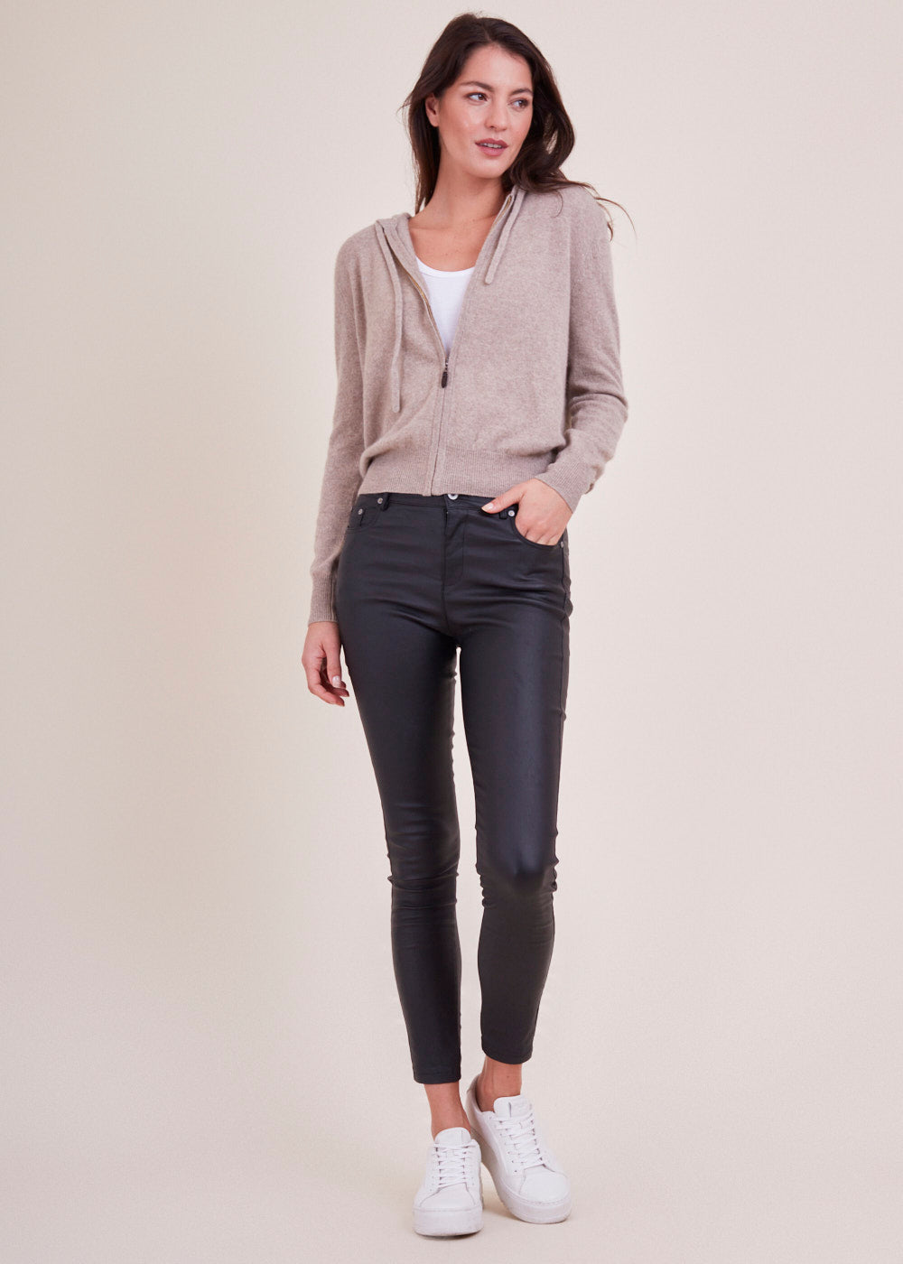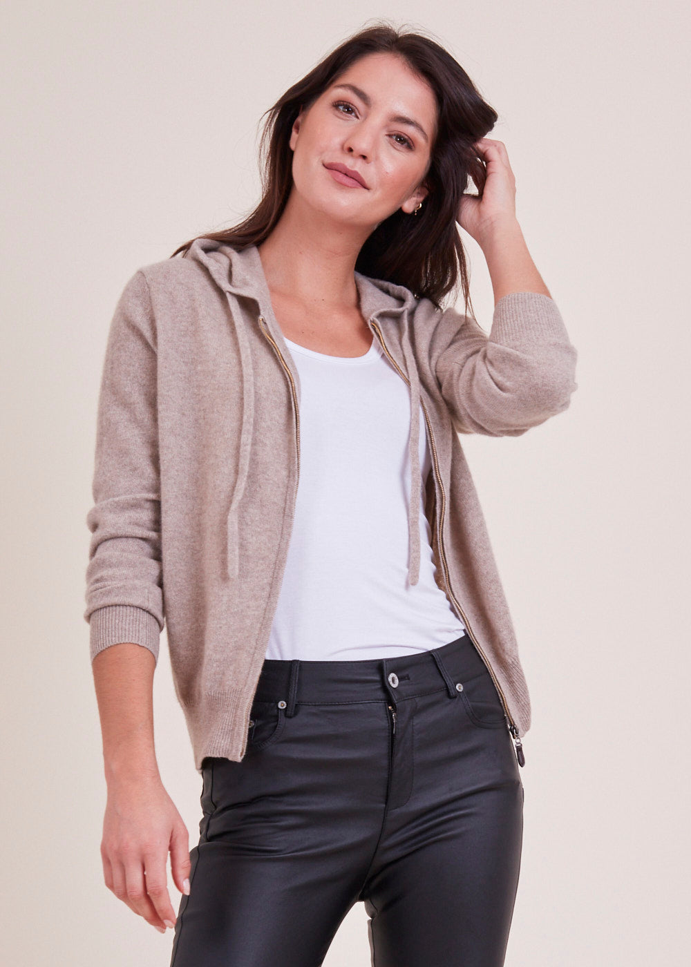 Kaschmirstrickjacke mit Kapuze