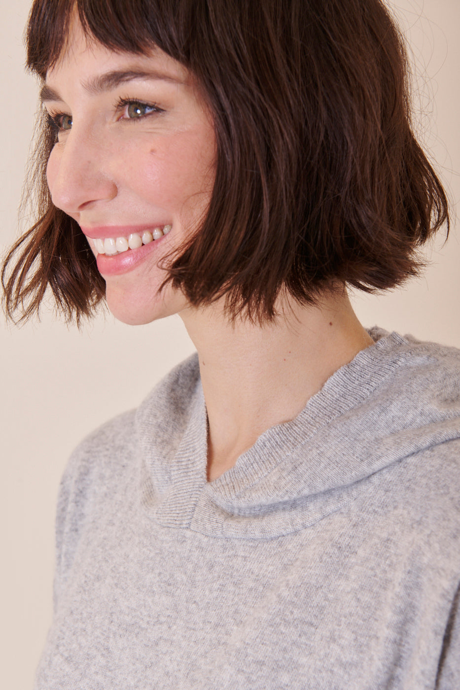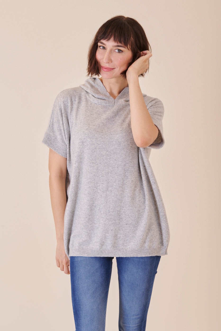 Lässig und kastenförmig geschnittener Hoody mit halben Arm. Er hat besondere Rippendetails an der Kapuze, sowie am Saum und Armabschluss. Ein absoluter Wohlfühl Hoody mit tollen Kaschmiranteil. Kombiniere diesen Artikel, um ganz lässig zu wirken, mit einer Jeans und Sneaker.