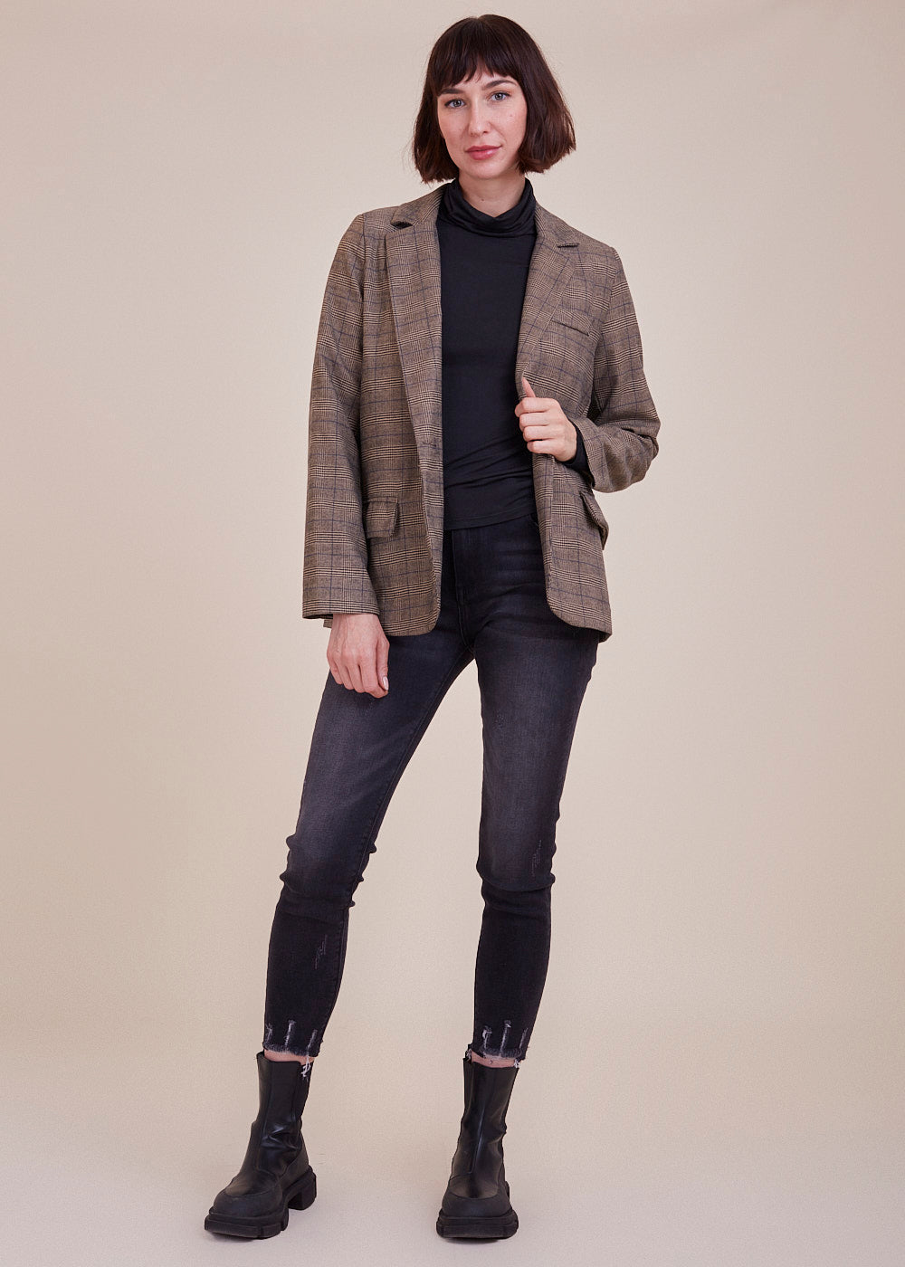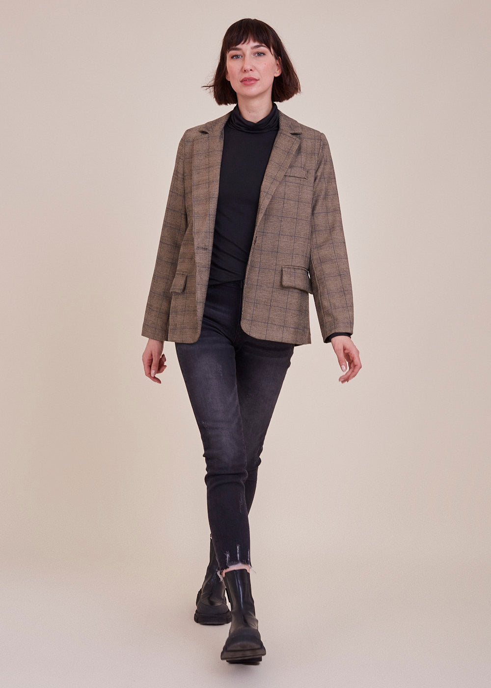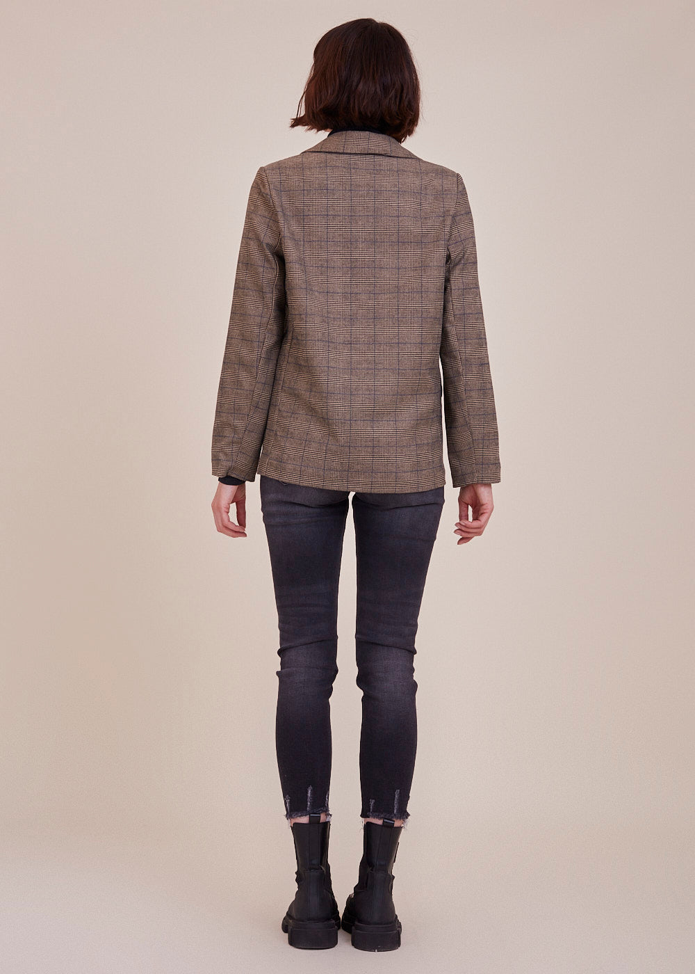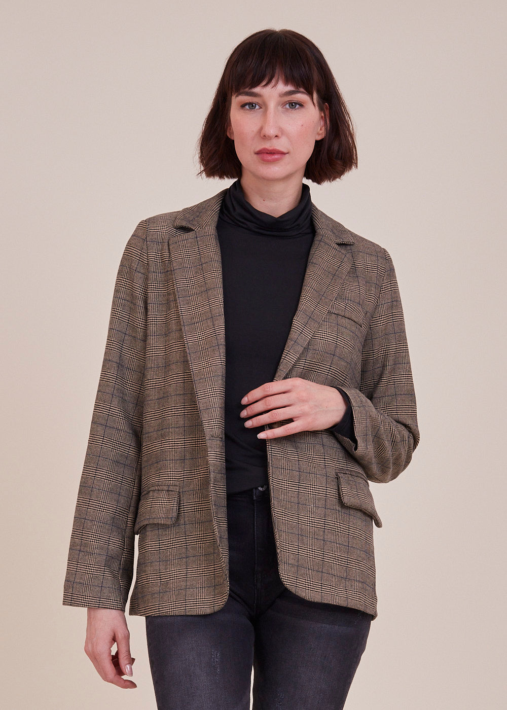 Besonderer Glencheck Blazer aus einer Mischfaser. Er erstrahlt in einem All-Over Glencheck Muster und hat ein steigendes Rever. Mit Pattentaschen und einreihigen Knopf zum verschließen. Er ist ein absolutes Fashion It-Piece und somit für unsere "Fashionista" genau das richtige. Wir lieben ihn jetzt schon!