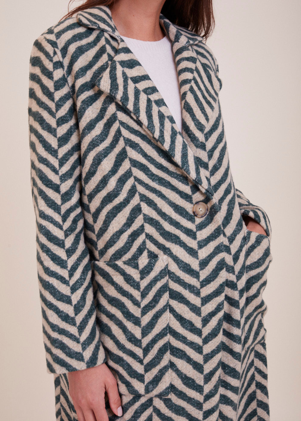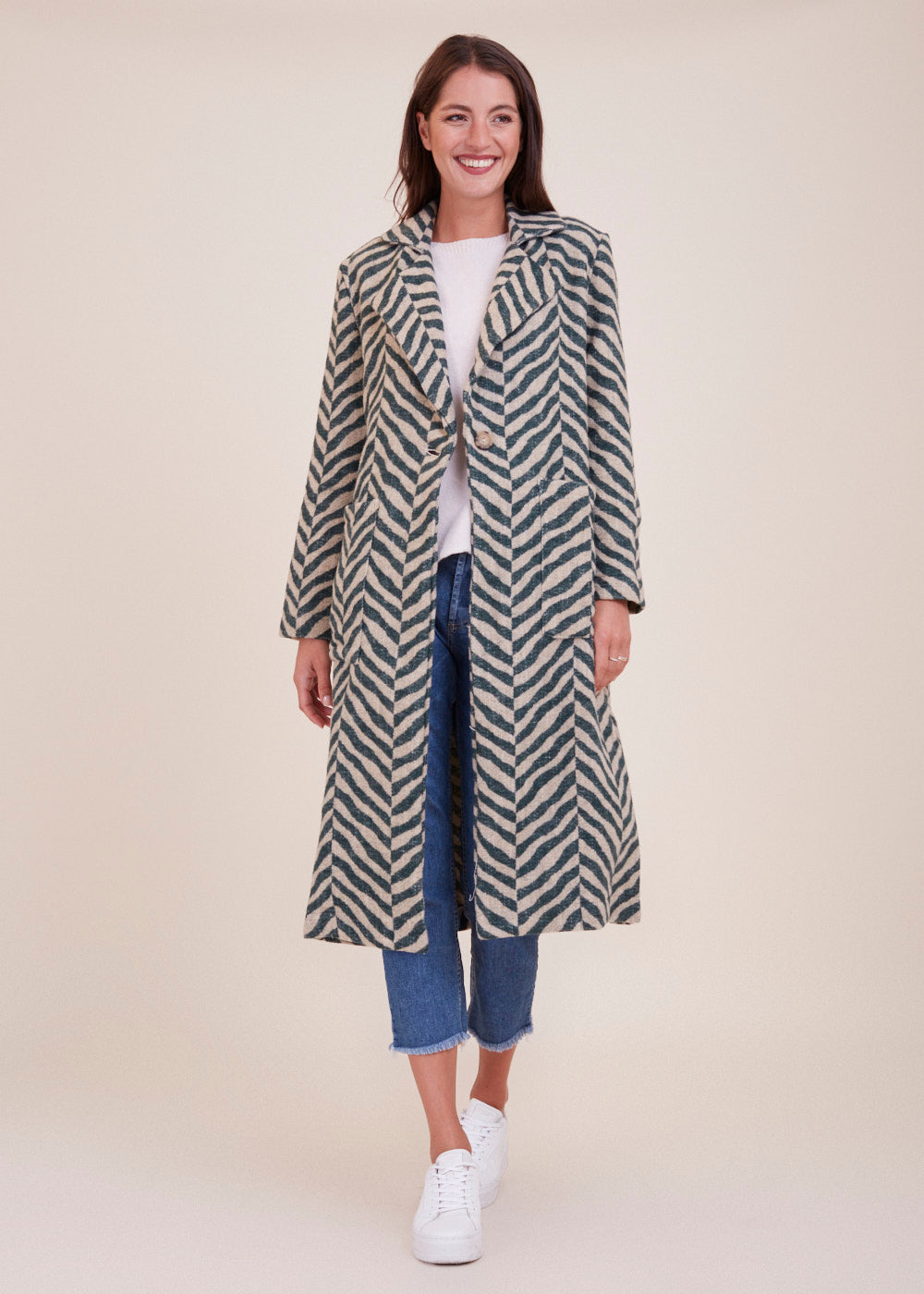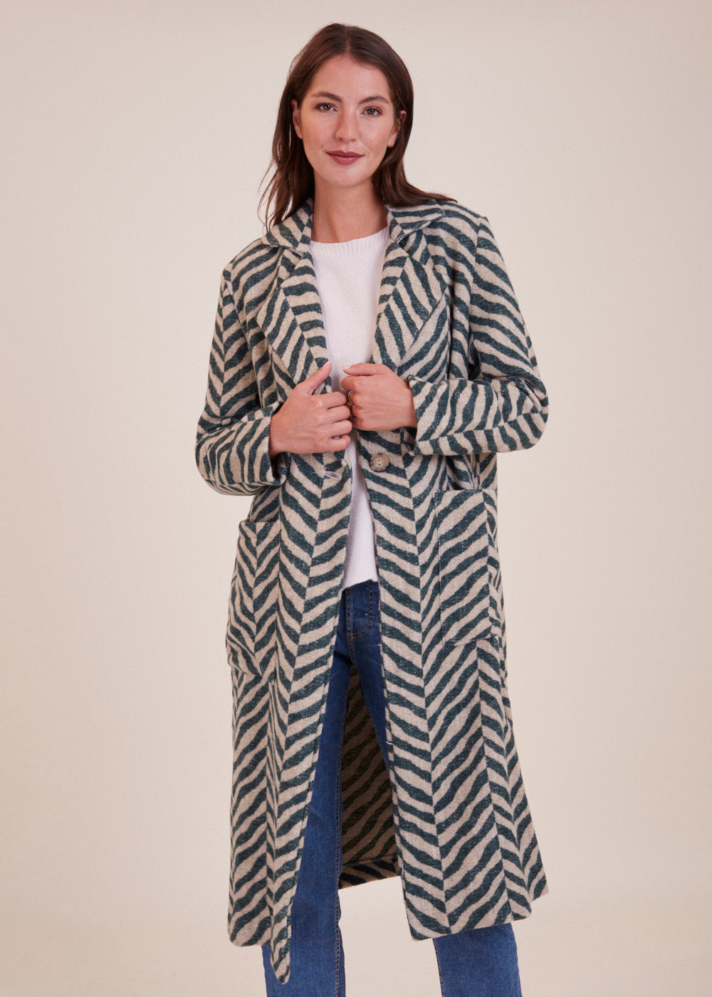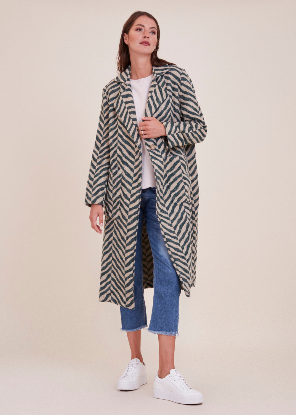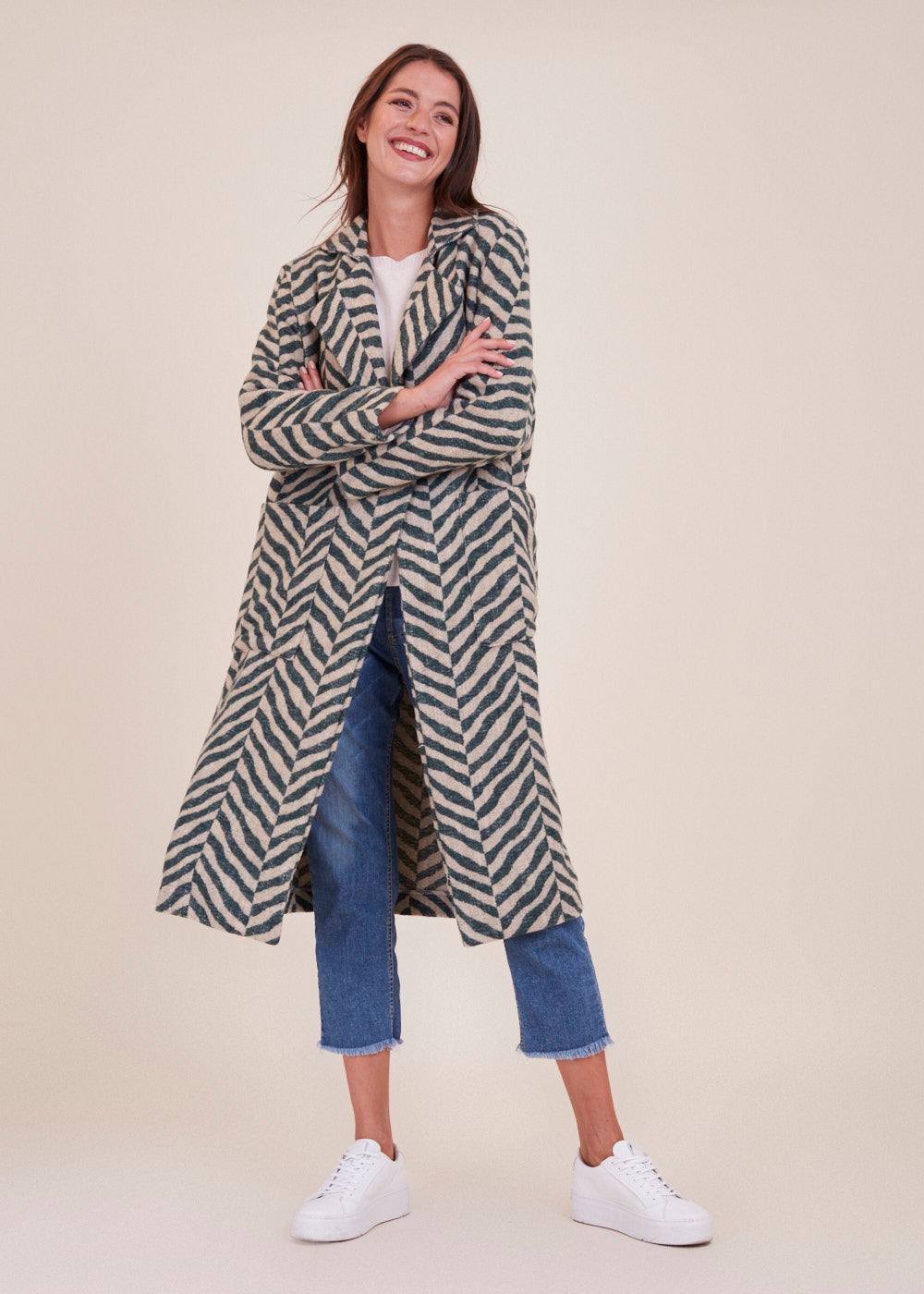 Dein Begleiter für den Herbst: Unser Mantel mit einem großartigen Print ist ganz sicher ein echtes Highlight! Der Mantel ist gerade geschnitten und besitzt einen Reverskragen sowie eine Zwei-Knopf-Leiste auf Höhe der Taille. Der grüne Ton gemischt mit einem edlen beige verleihen jedem Look Modernität und macht dich zu einem echten Hingucker!