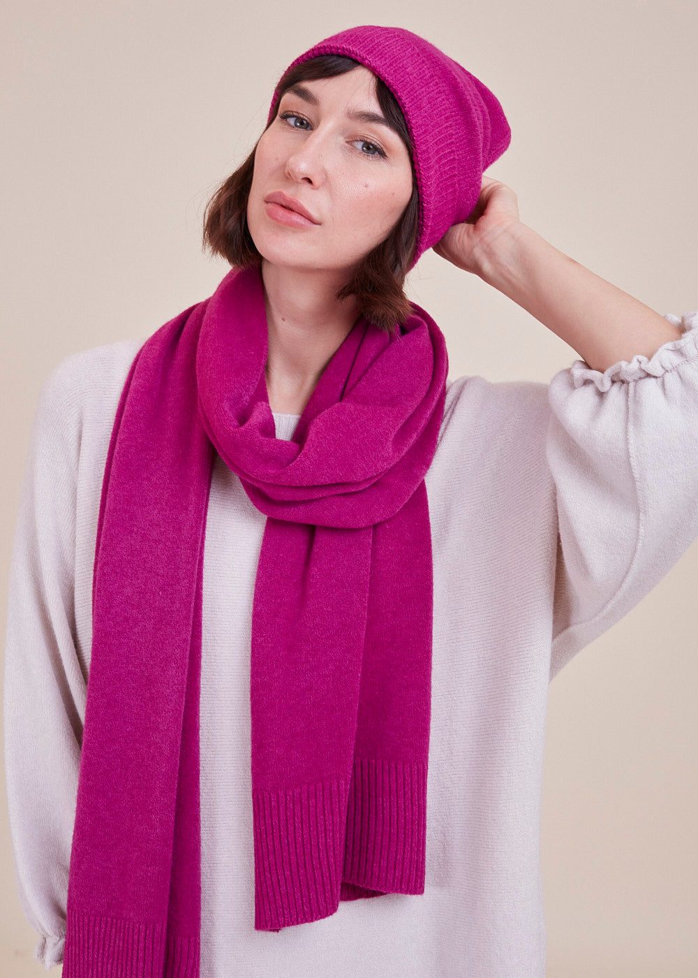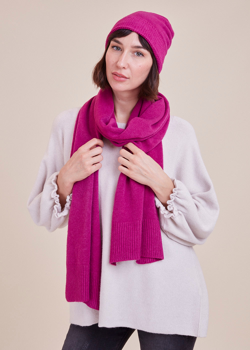 Kuschelige Mütze aus weichem Strick mit breitem Umschlag. Du findest auch den passenden Schal, in unserem Shop, dazu.