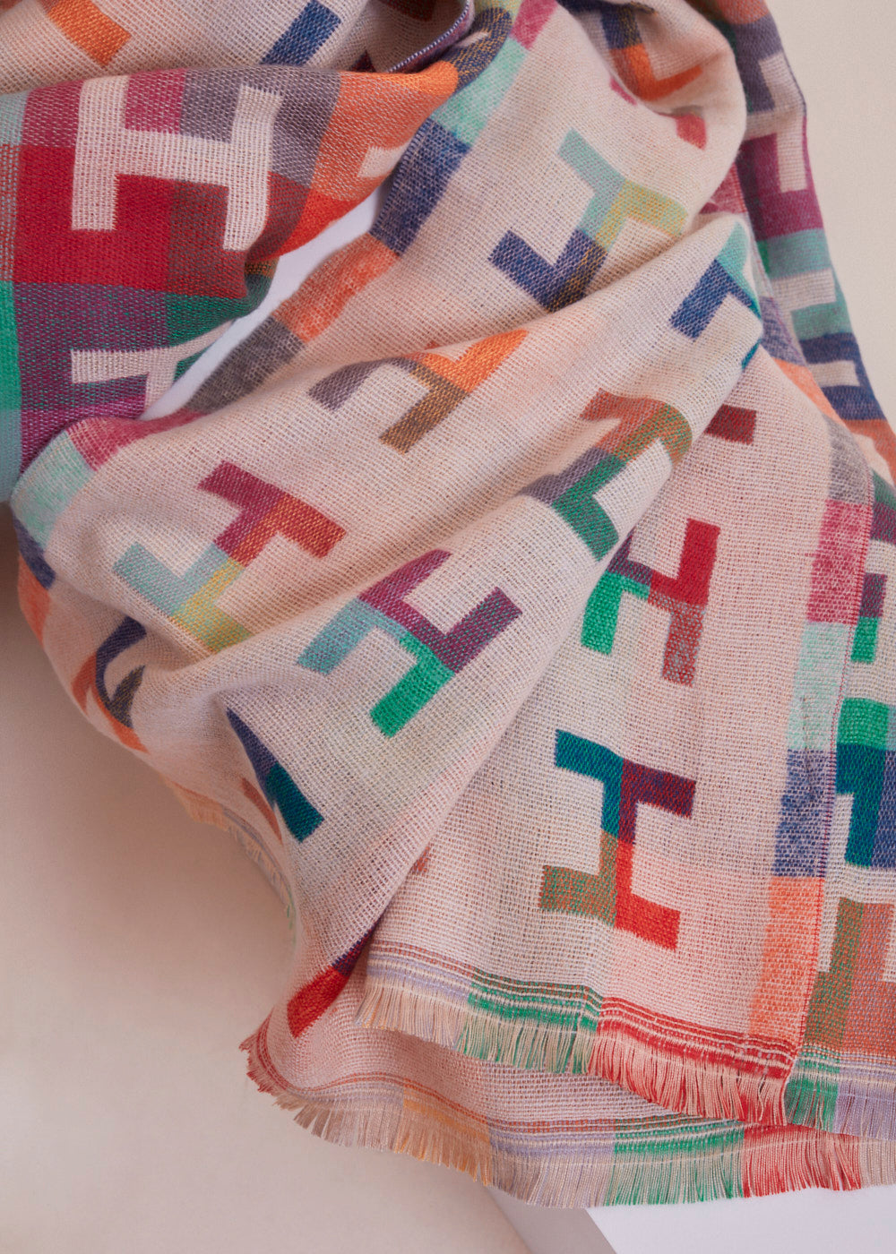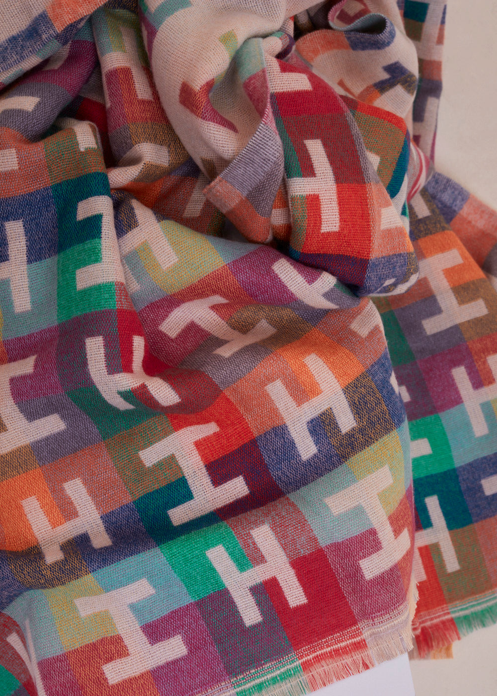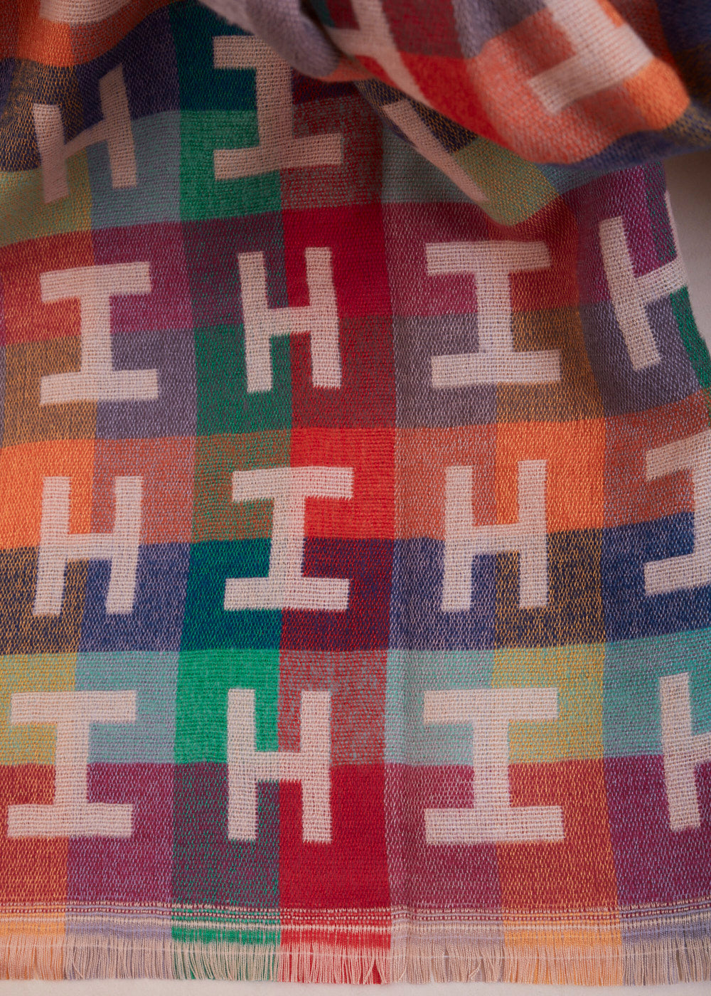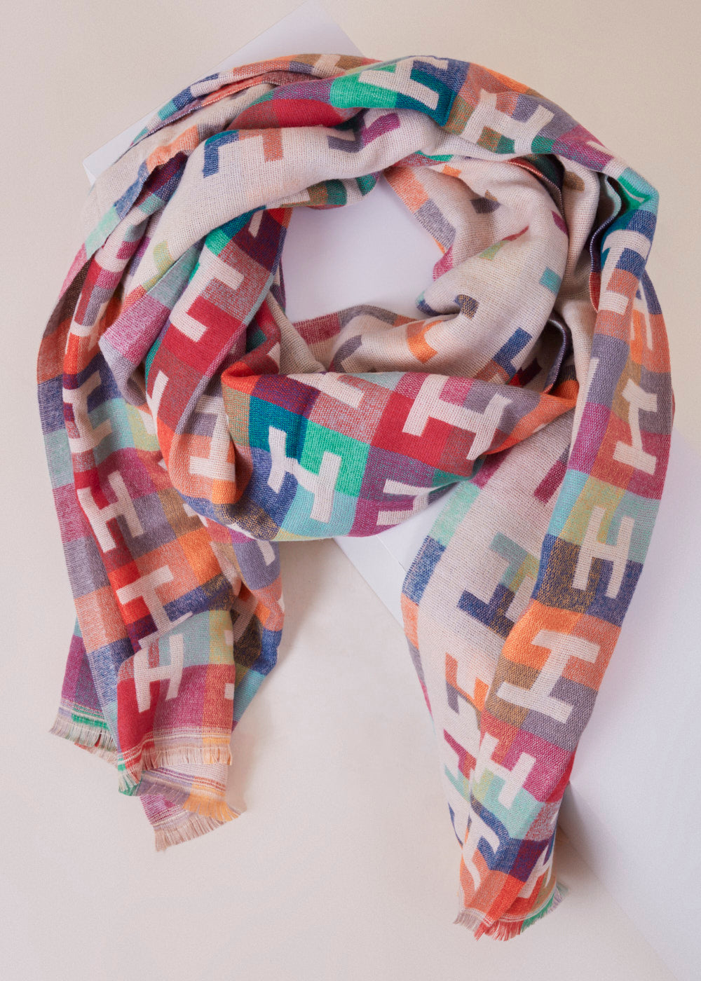 Ein besonderer Hingucker! Dieser besondere Schal setzt auf ein cooles H-Design. Er beinhaltet alle Trendfarben und ist daher zu vielen Outfits kombinierbar. Mit dem kuschelig weichen Schal kannst du dein Outfit ganz einfach aufwerten und hast gleichzeitig einen großartigen Begleiter für Reisen und kühlere Tage dabei.