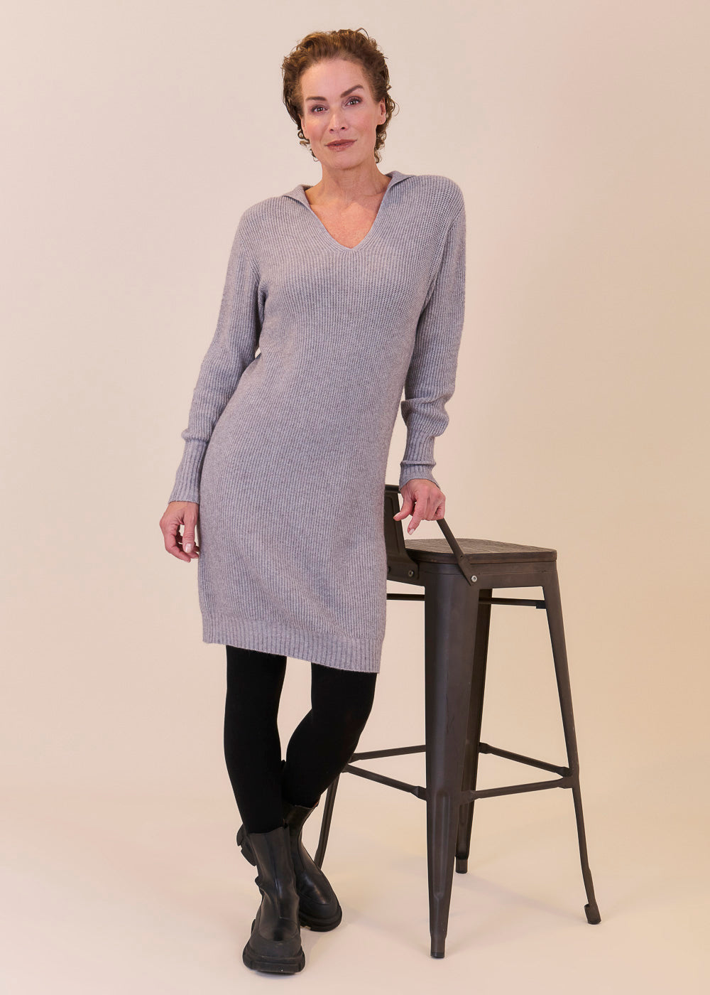 Figurbetontes Strickleid aus unserem Kuschelgarn. Es hat lang geschnittene Arme und ein Rippenbündchen an den Saum, sowie an den Ärmeln. Der V-Ausschnitt schmeichelt deinem Dekolletee und verleiht diesem besonderen Strickteil das gewisse Etwas. Einfach zum Wohlfühlen!