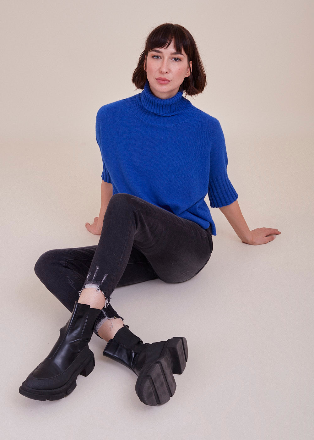 Das Model trägt bei einer Körpergröße von 179 cm die Konfektionsgröße XS.