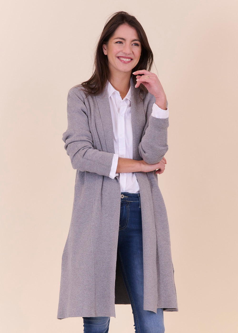 Diese lange Strickjacke aus unserem Kuschelgarn eignet sich perfekt für kühlere Tage unterwegs, zuhause oder im Büro. Der Cardigan ist lang geschnitten und so besonders lässig und bequem. In der verschlusslosen Art fällt die gemütliche Strickjacke locker und lädt zum Einkuscheln ein. Auch die seitlichen Eingriffstaschen verleihen einen lässigen Look für coole Herbst-Styles!