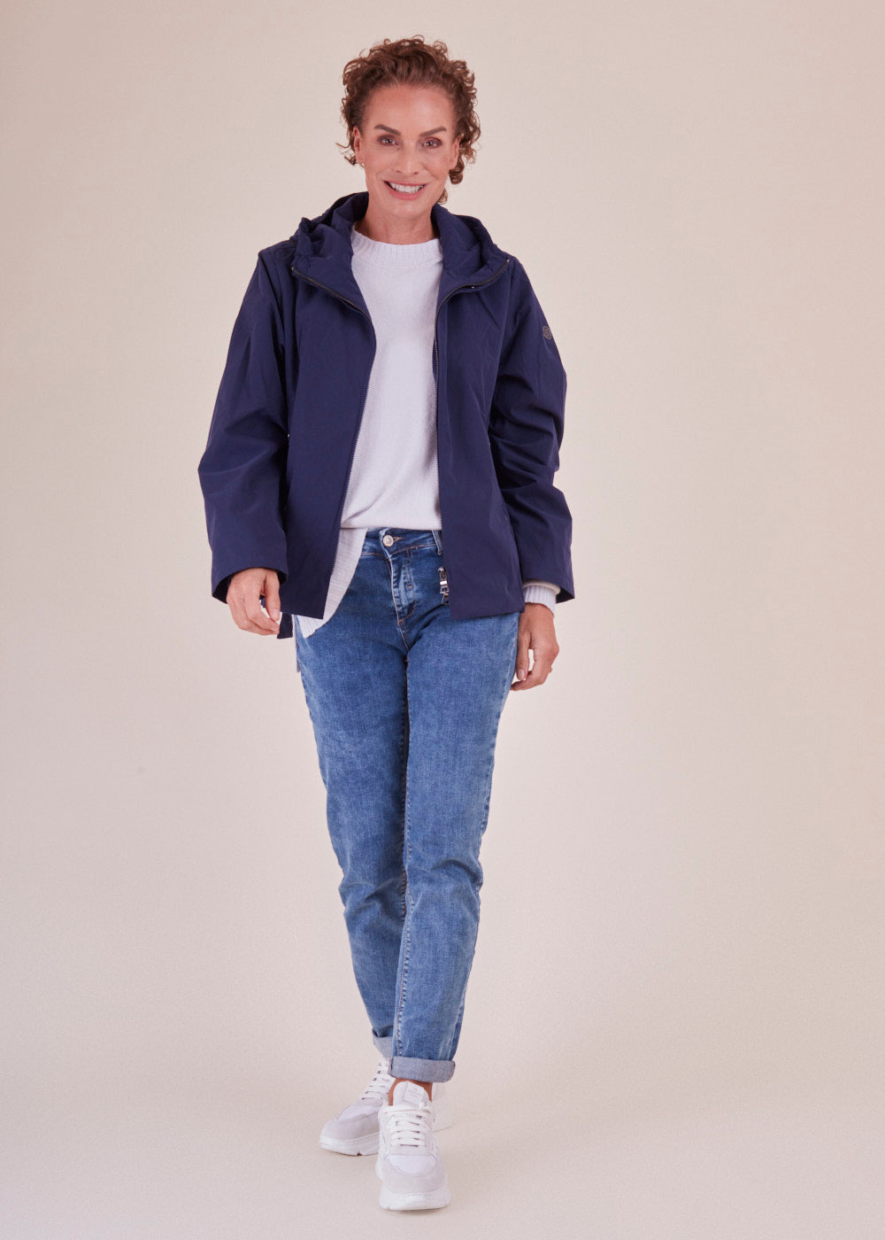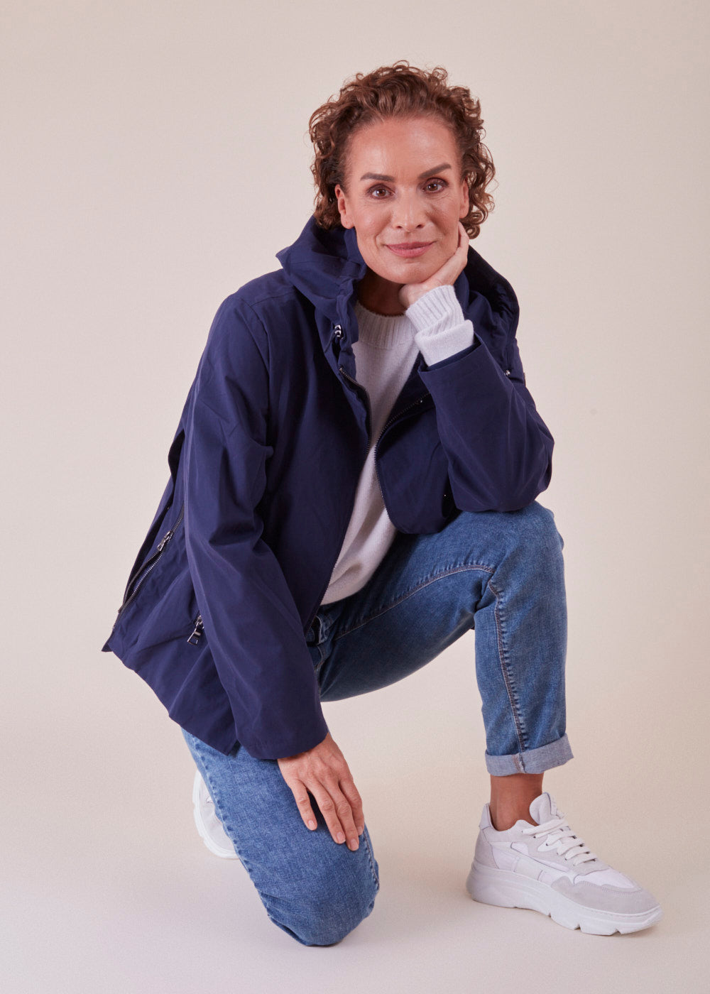 Unsere geliebte lässig geschnittene Fashionjacke kommt aus dem Hause BLONDE NO.8!  Das lässig geschnittene Modell Valentina hat ein leicht verlängertes Rückenteil und eine lässige Kapuze. Mit seitlichen Reißverschlüssen zum einfachen erweitern der Jacke.