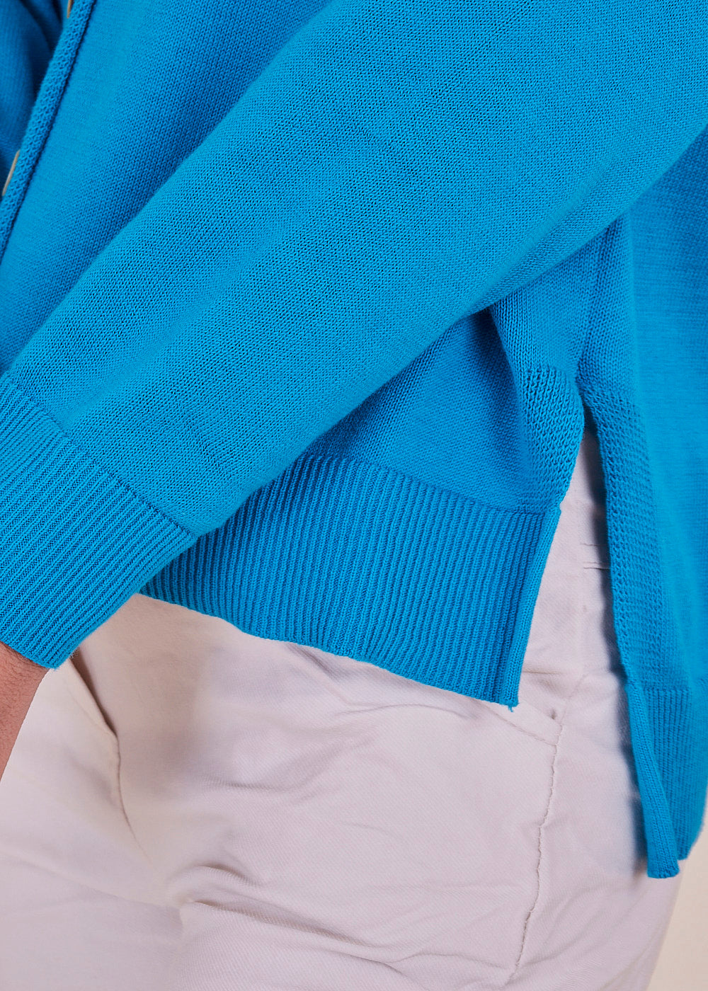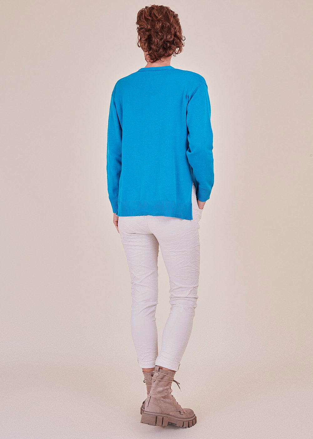 Kurz und kastenförmig geschnittene Strickjacke mit langen Armen aus unserem Bestseller Garn. Sie hat ein Rippenbündchen an den Ärmeln und am Saum. Durch die Frontknöpfe lässt sich diese Jacke wunderbar geschlossen tragen. Zum darunter tragen empfehlen wir dir unsere Basic Tops. Kuschelig weicher Tragekomfort mit absoluter Wohlfühlgarantie.