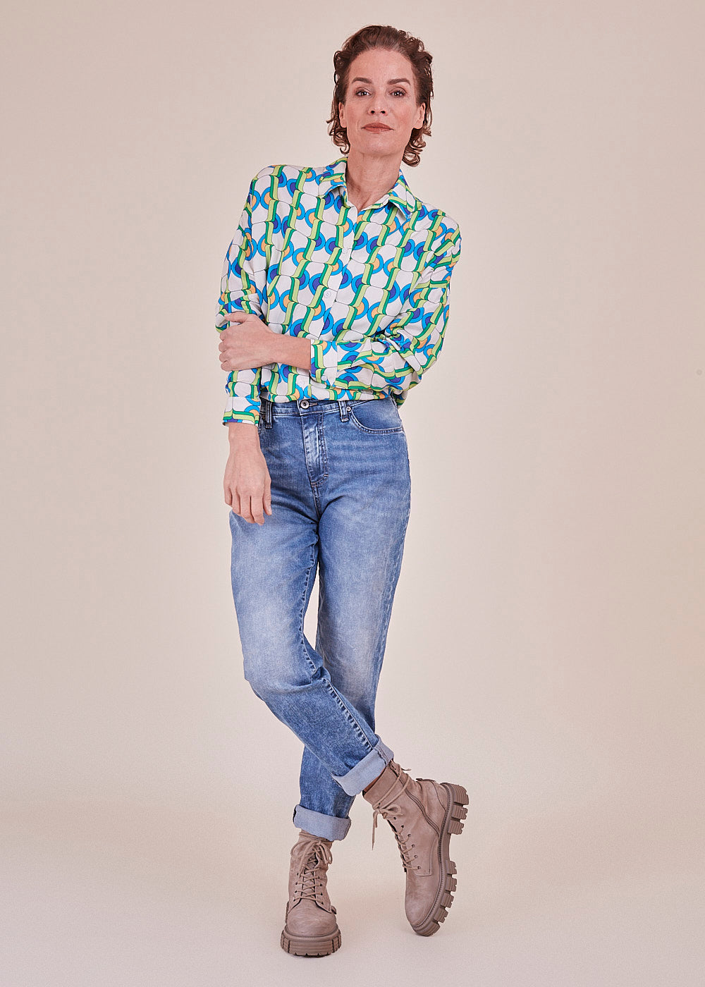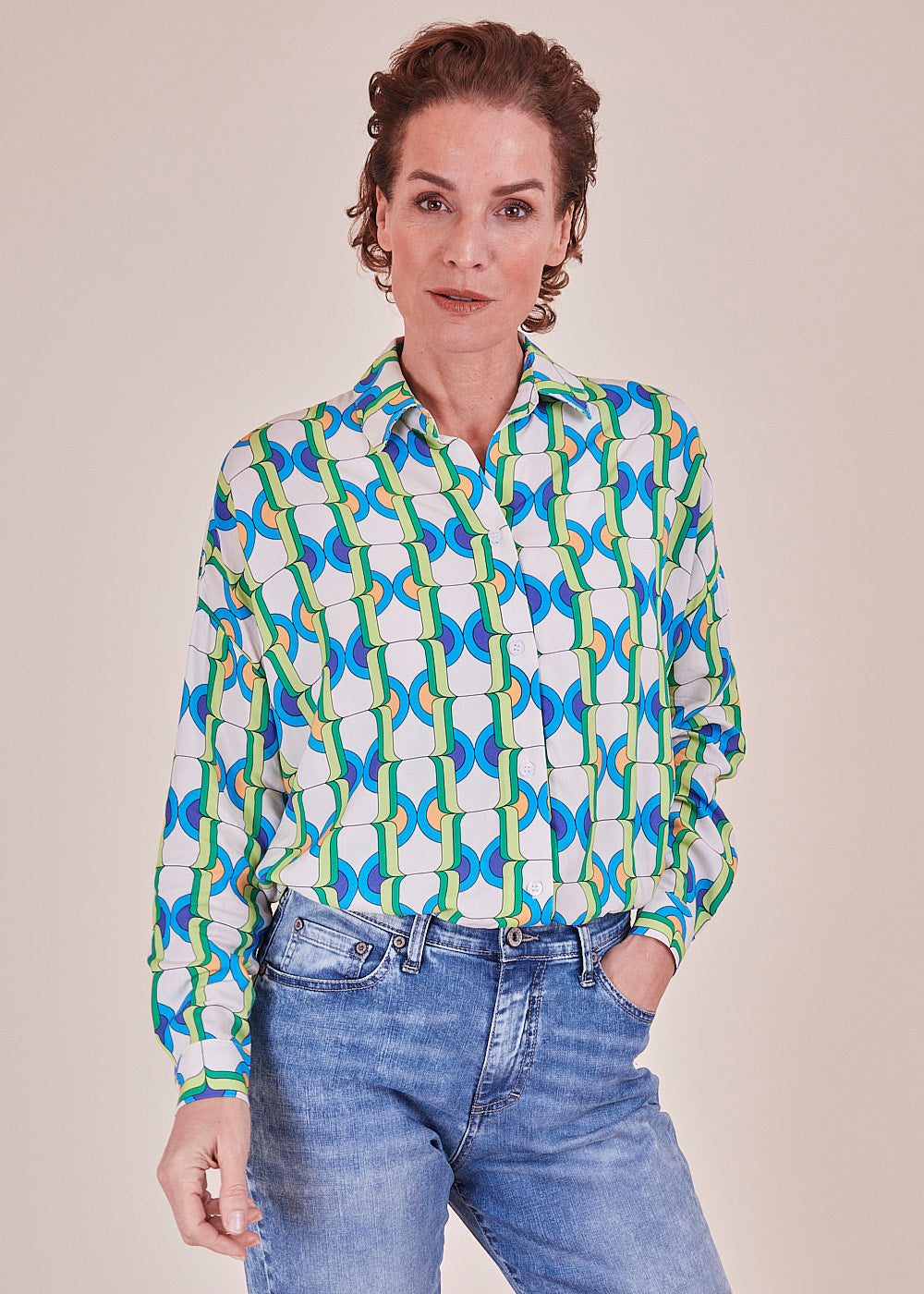 Wir lieben Druck! Diese lässig fließende Viskosebluse in den neuen Trendfarben hat lange Ärmel mit überschnittenen Schultern. Durch ihr leichtes Viskosematerial hat sie einen angenehmen Tragekomfort. Sie hat durchgehende Knopfleiste. Ein absoluter Hingucker.