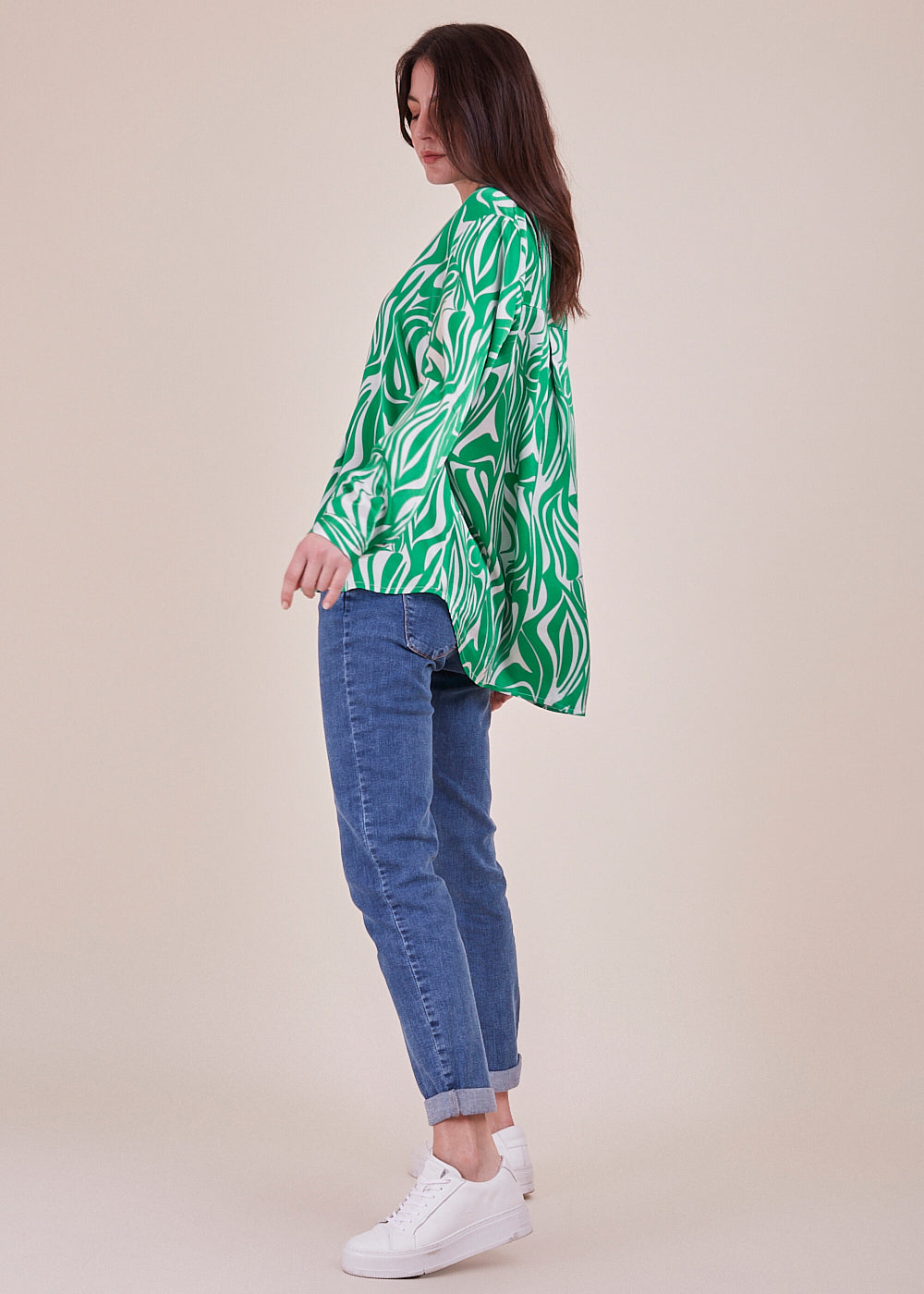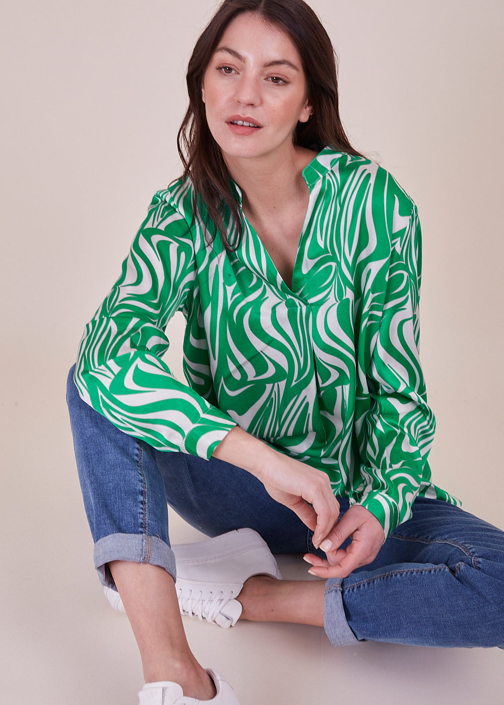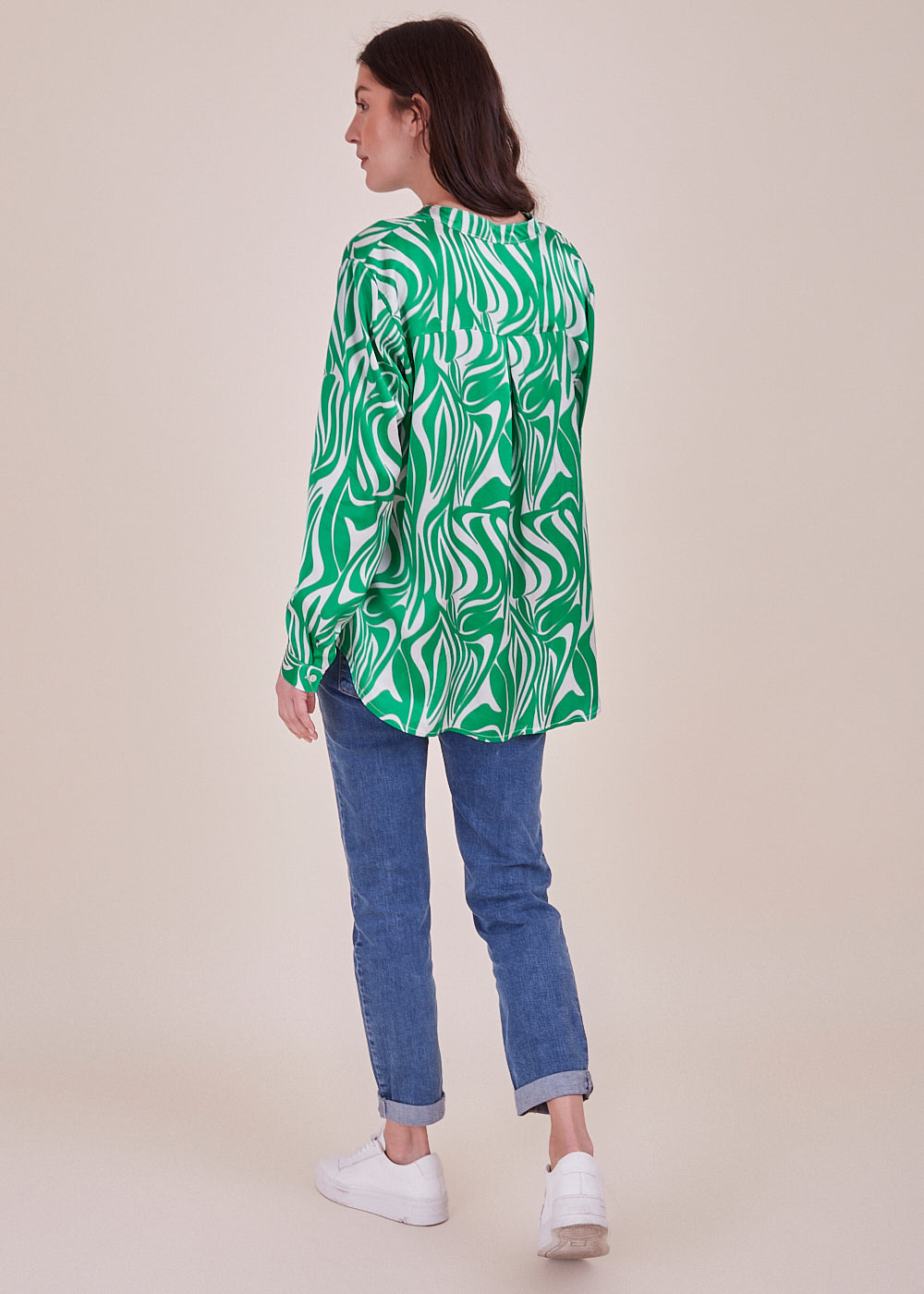 Wir lieben Grün! Diese lässig fließende Viskosebluse in den neuen Trendfarben hat lange Ärmel mit überschnittenen Schultern. Durch ihr leichtes Viskosematerial hat sie einen angenehmen Tragekomfort. Sie hat durchgehende Knopfleiste. Ein absoluter Hingucker.