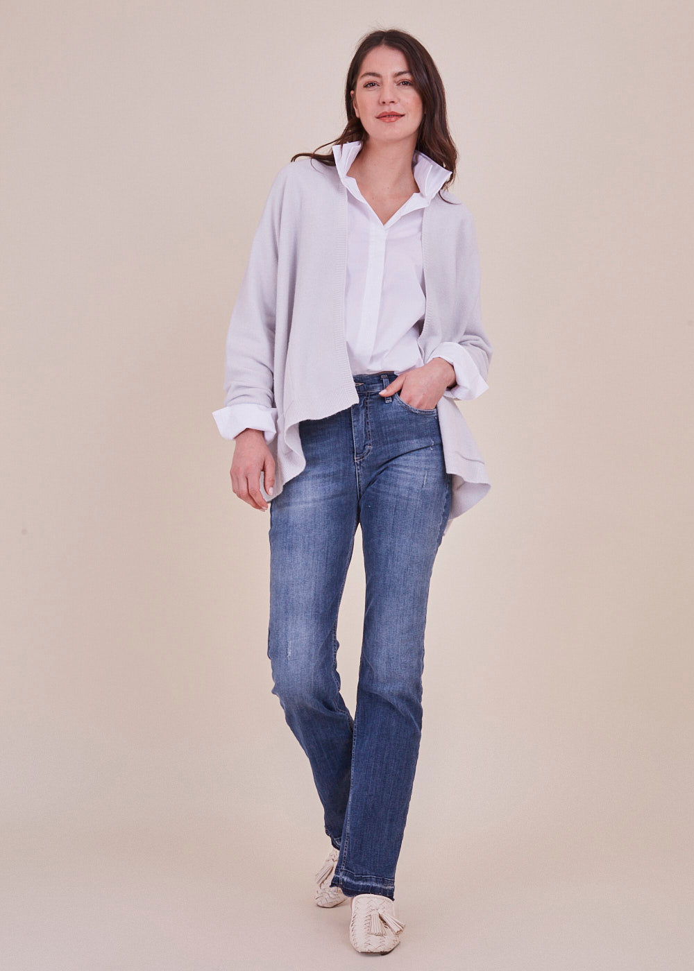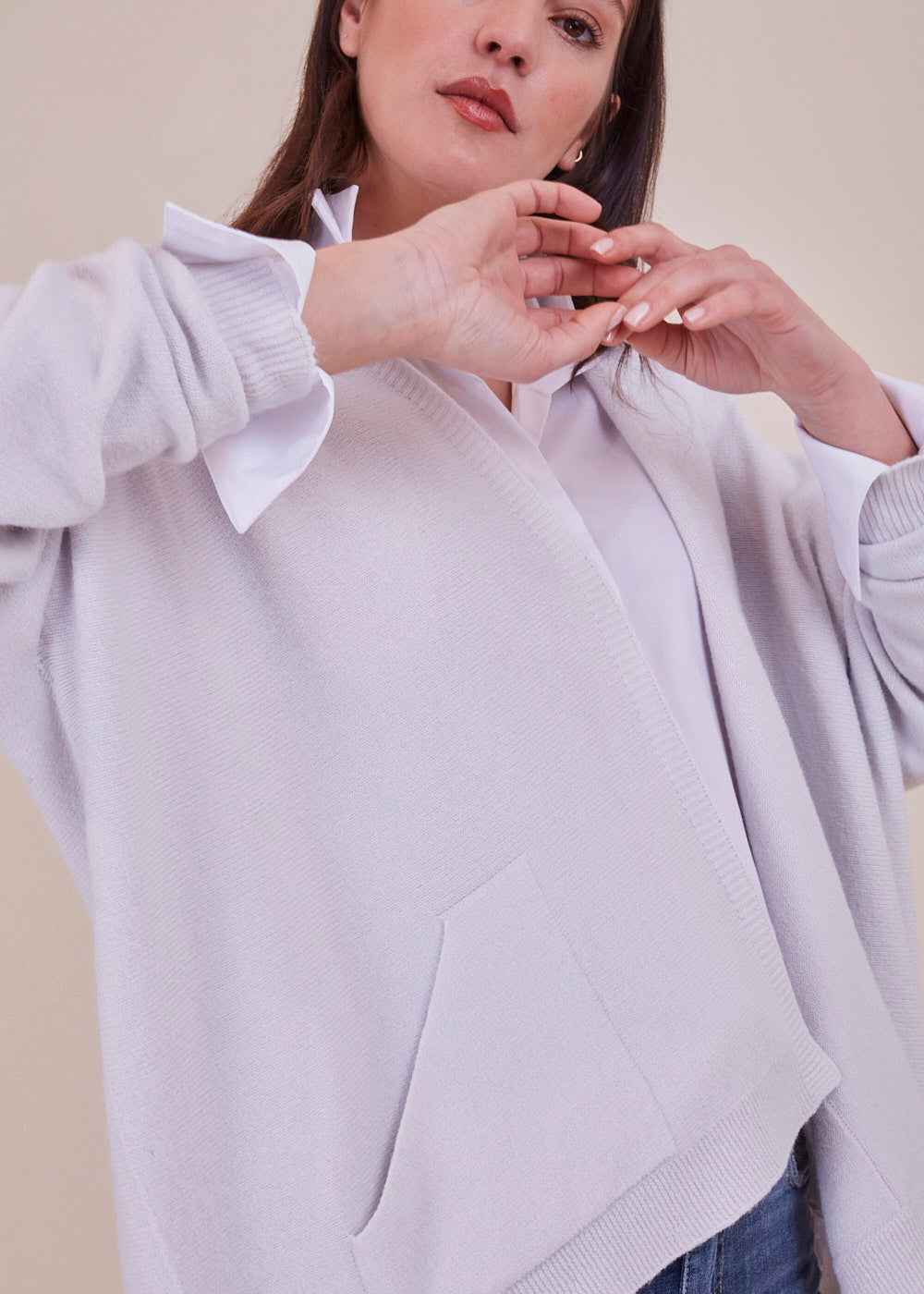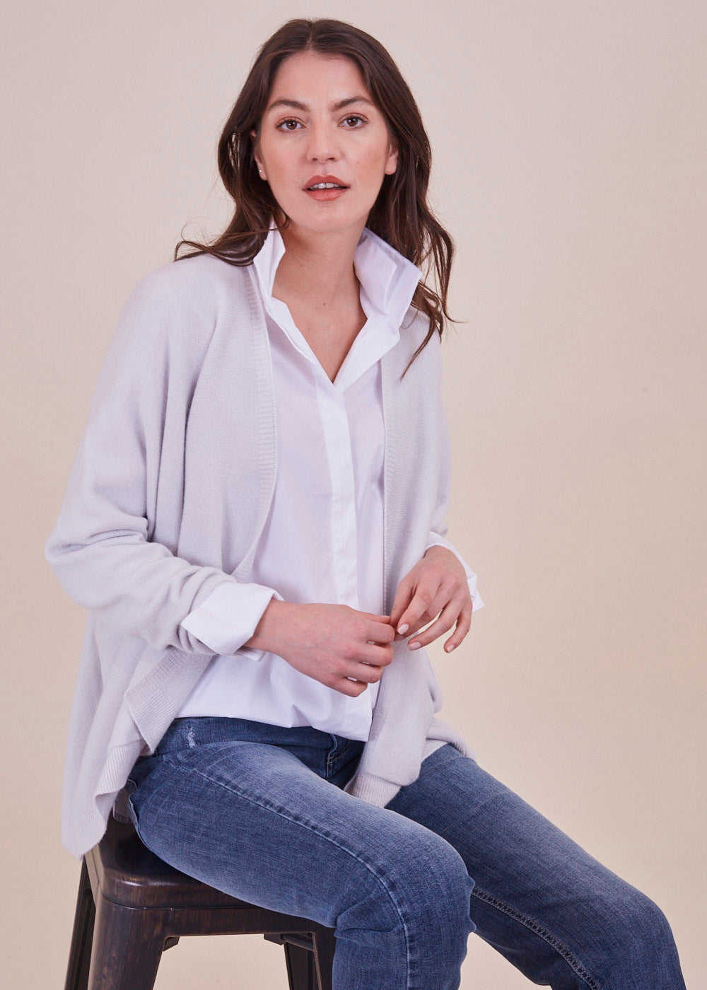 Kastenförmig geschnittene Strickjacke mit langen Armen aus unserem Bestseller Garn. Sie hat ein Rippenbündchen an den Ärmeln und am Saum. Kuschelig weicher Tragekomfort mit absoluter Wohlfühlgarantie und durch seine Leichtigkeit perfekt für das Frühjahr.