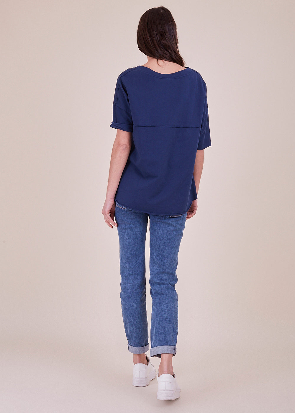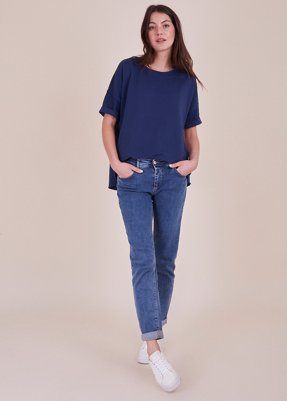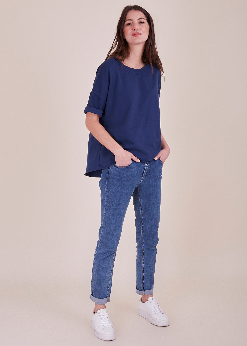 Lässig geschnittenes Sweatshirt mit kurzen Armen und Rundhalsausschnitt. Ein absolutes Must-Have für deinen Kleiderschrank. Es lässt sich ideal unter unseren Strickjacken kombinieren. Oder trage es als Basic zu einer Jeans und Sneakern.