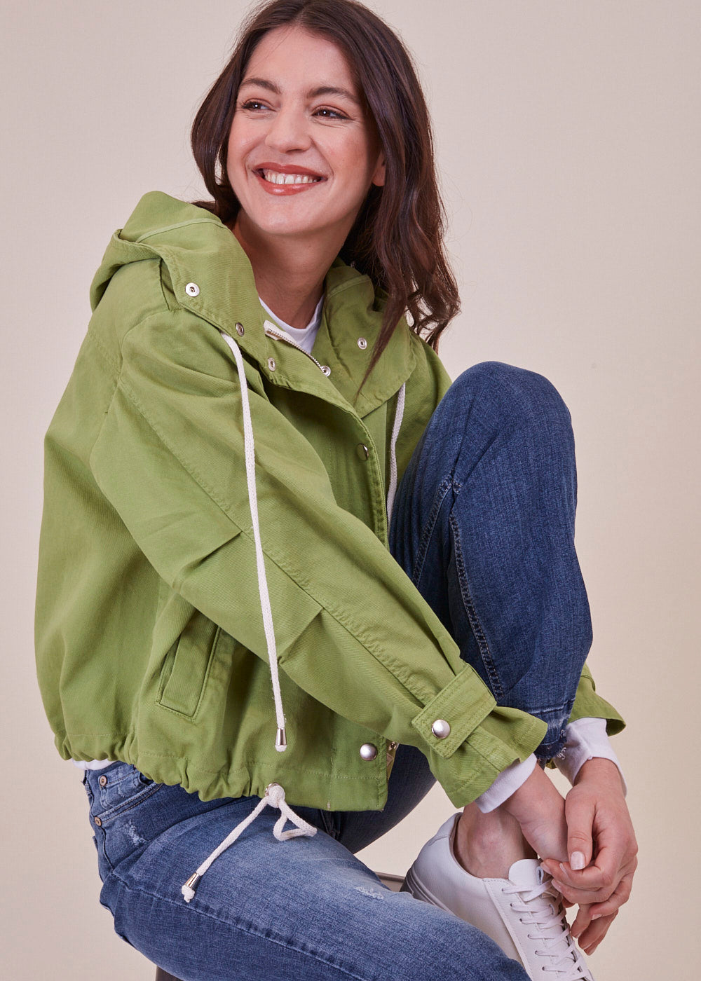 In jeder Situation gut aussehen – mit dieser Freizeitjacke. Die unifarbene Freizeitjacke überzeugt in modisch aktueller Trendfarbe. Durch ihren Blouson Schnitt, kann sie durch das Saum Band wunderbar in der weite reguliert werden. Langer Ärmel mit besonderen Arm Details. Gefertigt ist sie aus einem pflegeleichten gewaschenen Baumwollmaterial. Mit vielen großartigen Details. Einfach ein Hingucker!