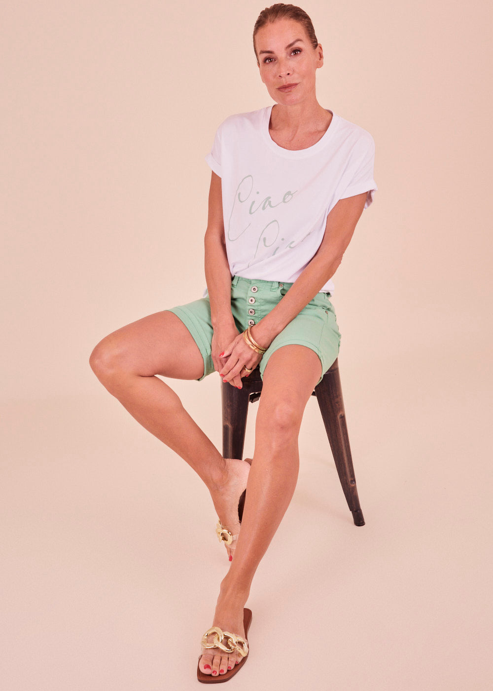 Yes, Please! Diese tolle Please-Shorts passt sich durch ihre außergewöhnliche Stretch-Qualität perfekt an deine Figur an und lässt dich den Alltag bequem meistern! Die mittlere Leibhöhe sorgt für einen sicheren Sitz der Hose etwas unterhalb des Bauchnabels. Sie hat einen Reißverschluss und das bekannte Metallherz auf der hinteren Gesäßtasche. Darüber hinaus kann sie ganz individuell von der Länge variiert werden.