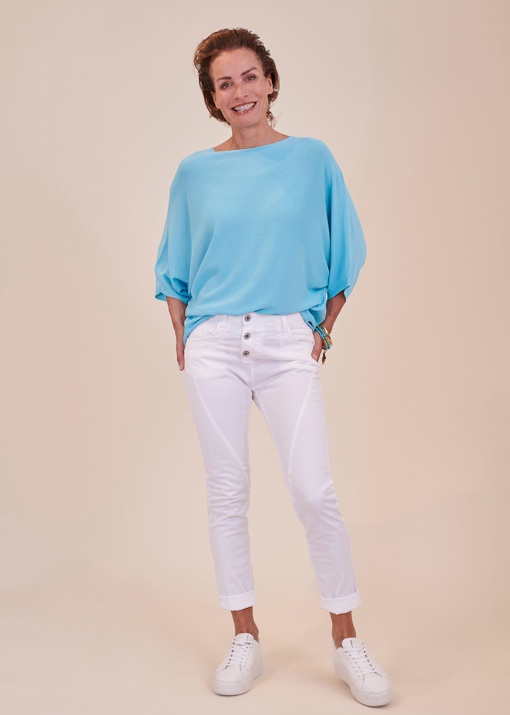 Wir lieben Farbe! Der lässig geschnittene Pullover besteht aus einem Mischgewebe. Dadurch schmiegt er sich streichelzart an jede Haut.