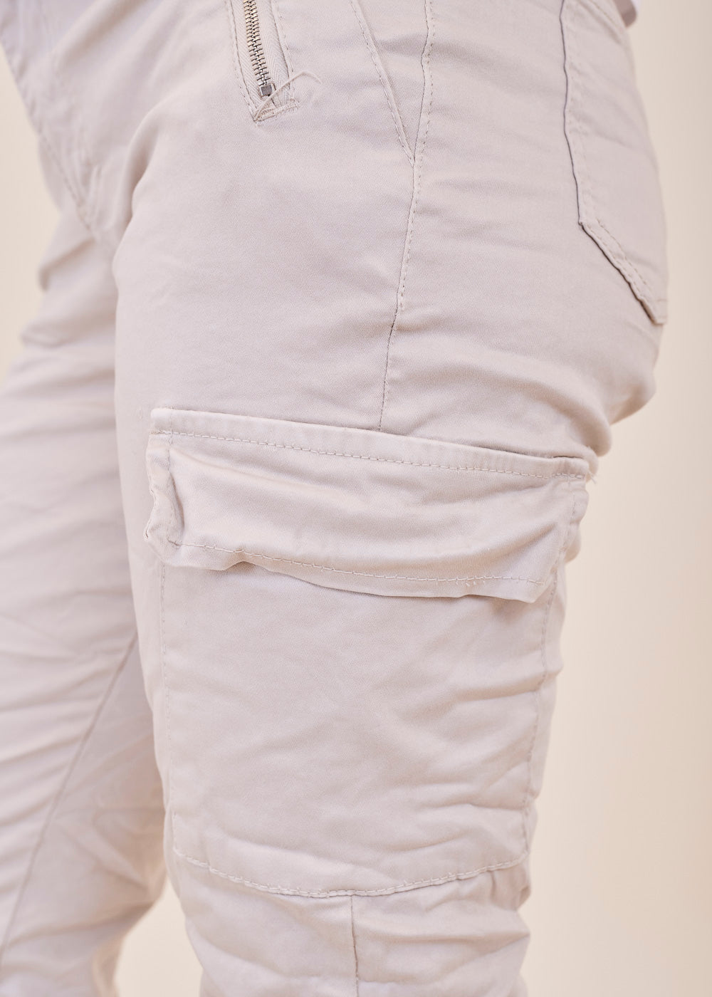 Unsere geliebte Cargohose ist schon jetzt das absolute Must-Have in deinem Kleiderschrank. Die angenehme Elasthan Ware macht nicht nur eine gute Figur sondern ist darüber hinaus auch super bequem. Die seitlichen Taschen und die Reißverschlüsse verleihen der Hose das gewisse etwas.