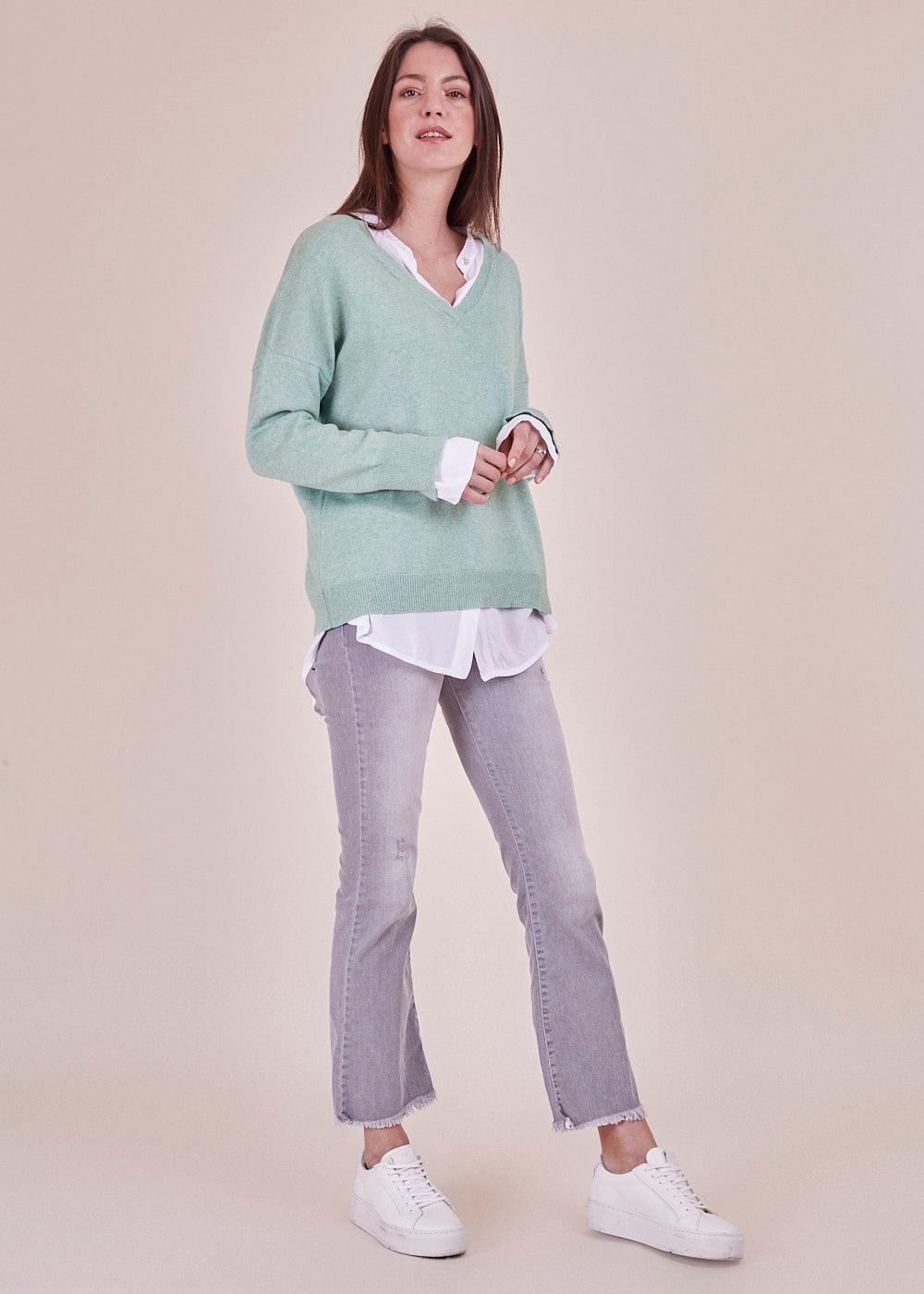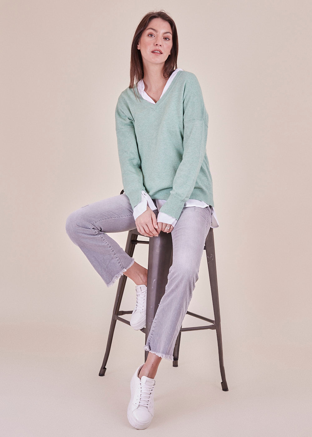 Hier kommt dein neuer Lieblingspullover! Der V-Ausschnitt Pullover besteht aus einer weichen Strickqualität und ist vielseitig kombinierbar. Klassische Elemente wie der V-Ausschnitt, die langen Ärmel und der gerade Saum machen den Strickpulli zu einem Basic-Allrounder. Kuschelig weicher Tragekomfort mit absoluter Wohlfühlgarantie.