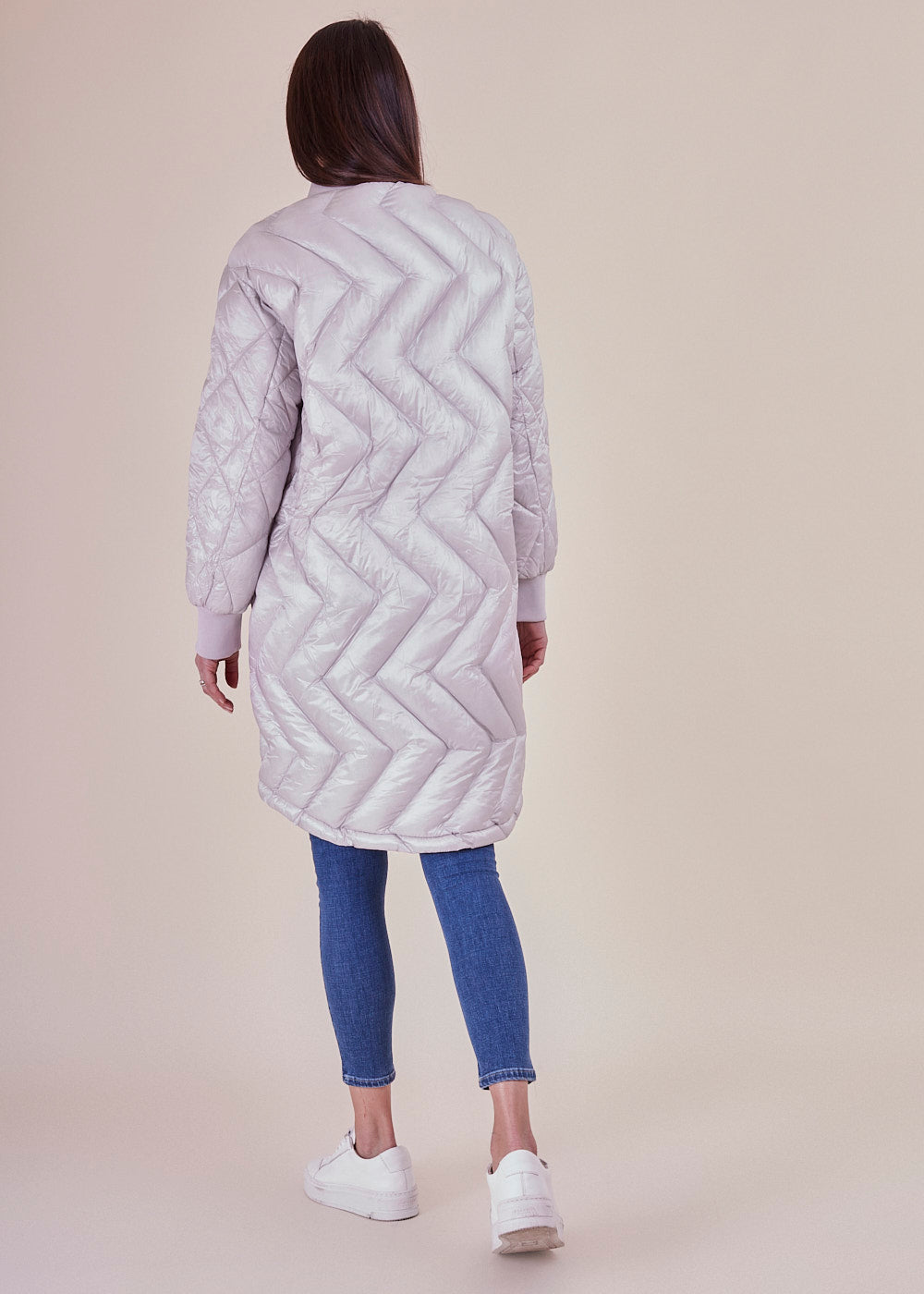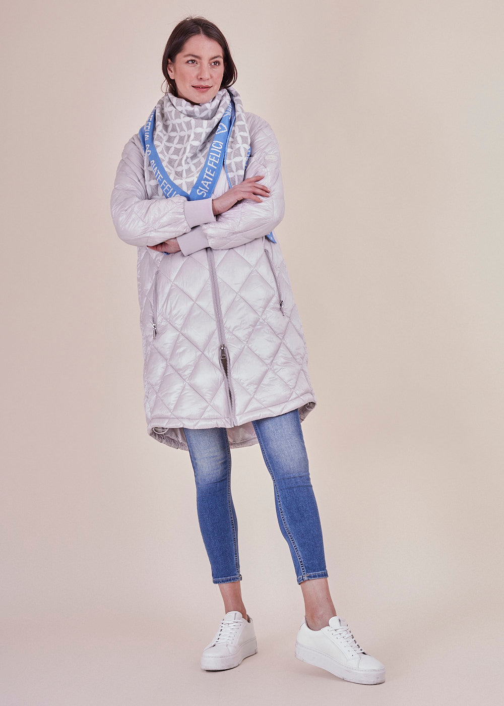 Der leicht wattierte Mantel von No.1 Como ist einfach Fashion. Er spielt mit unterschiedlichen Steppungen auf Vorder- und Rückseite, was ihm einen besonderen Look verleiht. Der weite Schnitt, der verstellbare Kordelzug im Bündchen und der College Kragen machen den Fashion-Style komplett. Mit einem Zwei-Wege Reißverschluss.