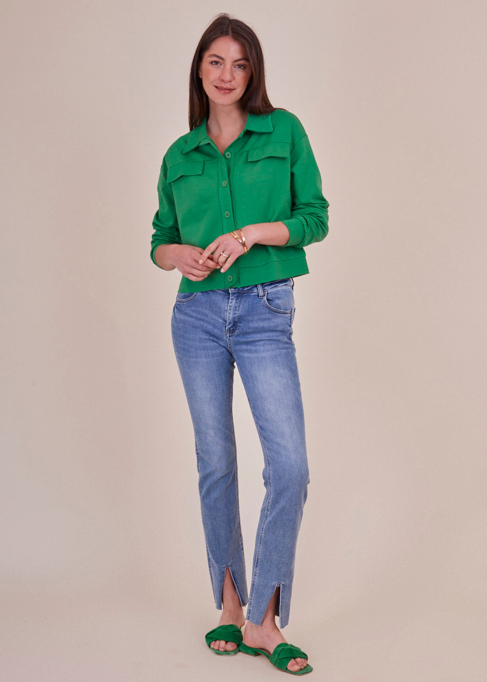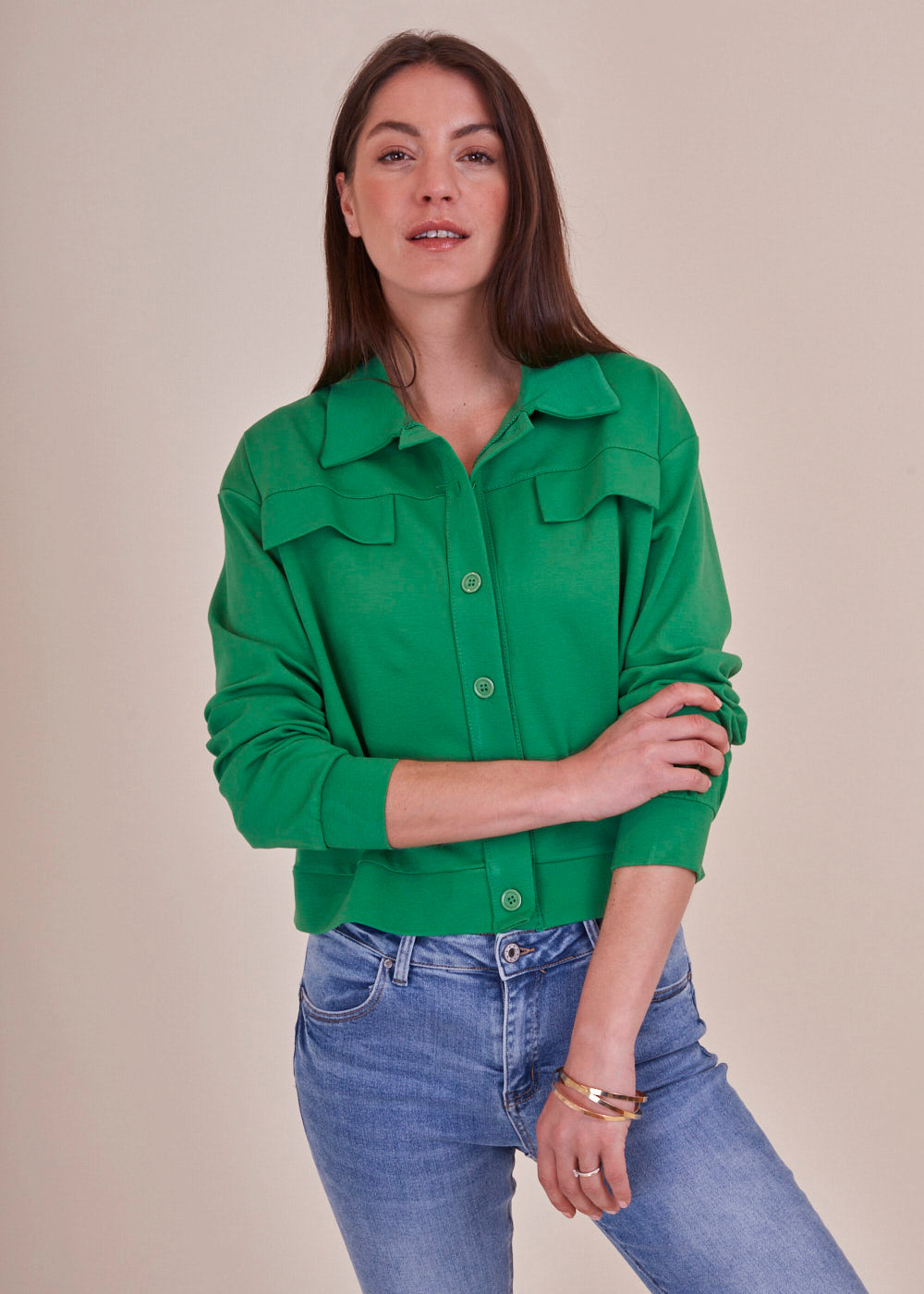 Für unsere Fashionista ! Die modische Kurzjacke ist ein absoluter Trendartikel für diese Saison. Mit coolem Hemdkragen, großen aufgesetzten Taschen und der durchgehenden Knopfleiste setzt Sie ein modisches Statement und und macht deinen Sommerlook zu einem Eyecatcher! Du kannst diesen Artikel geöffnet, aber auch gerne geschlossen tragen. Viel Spaß beim kombinieren!