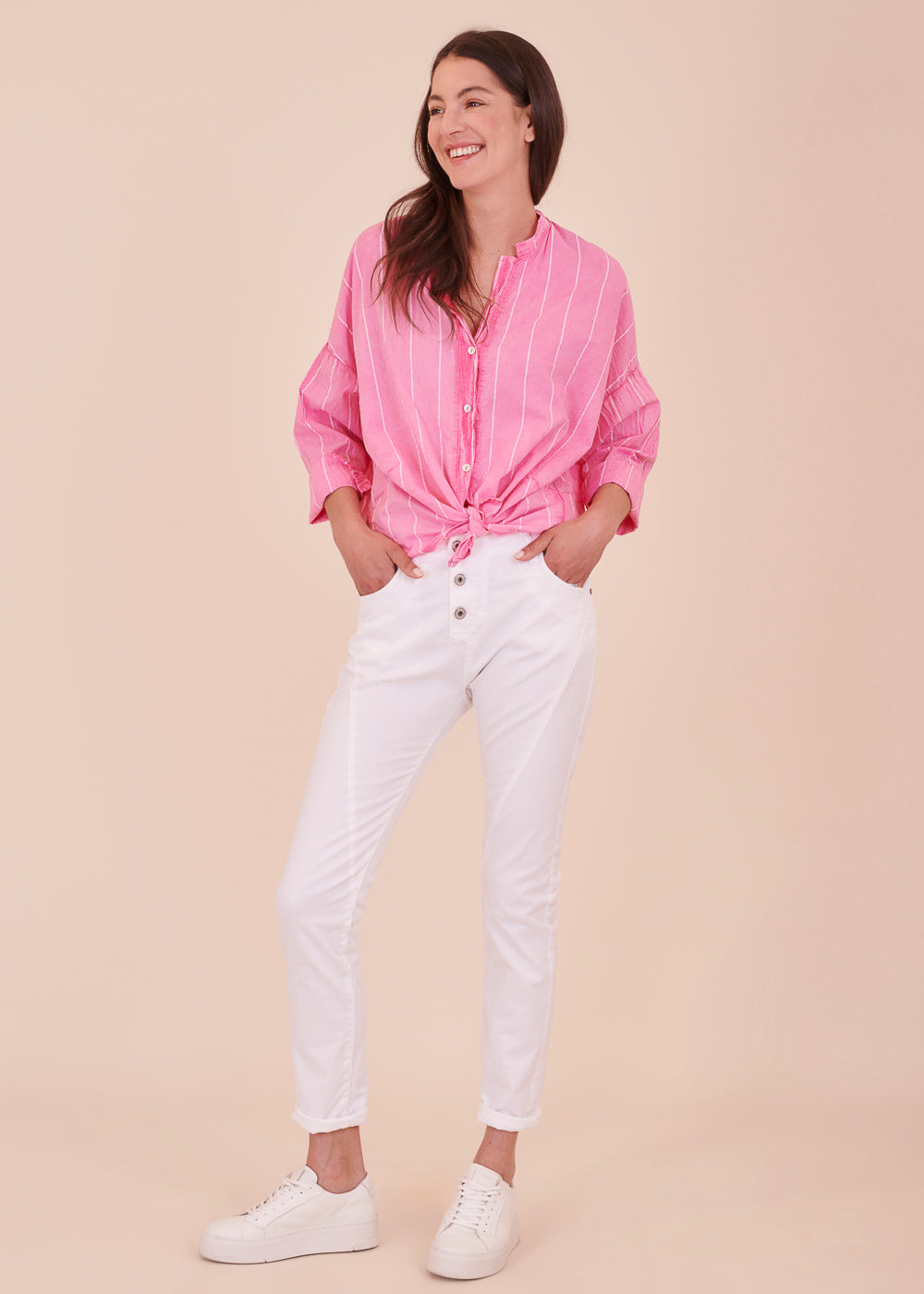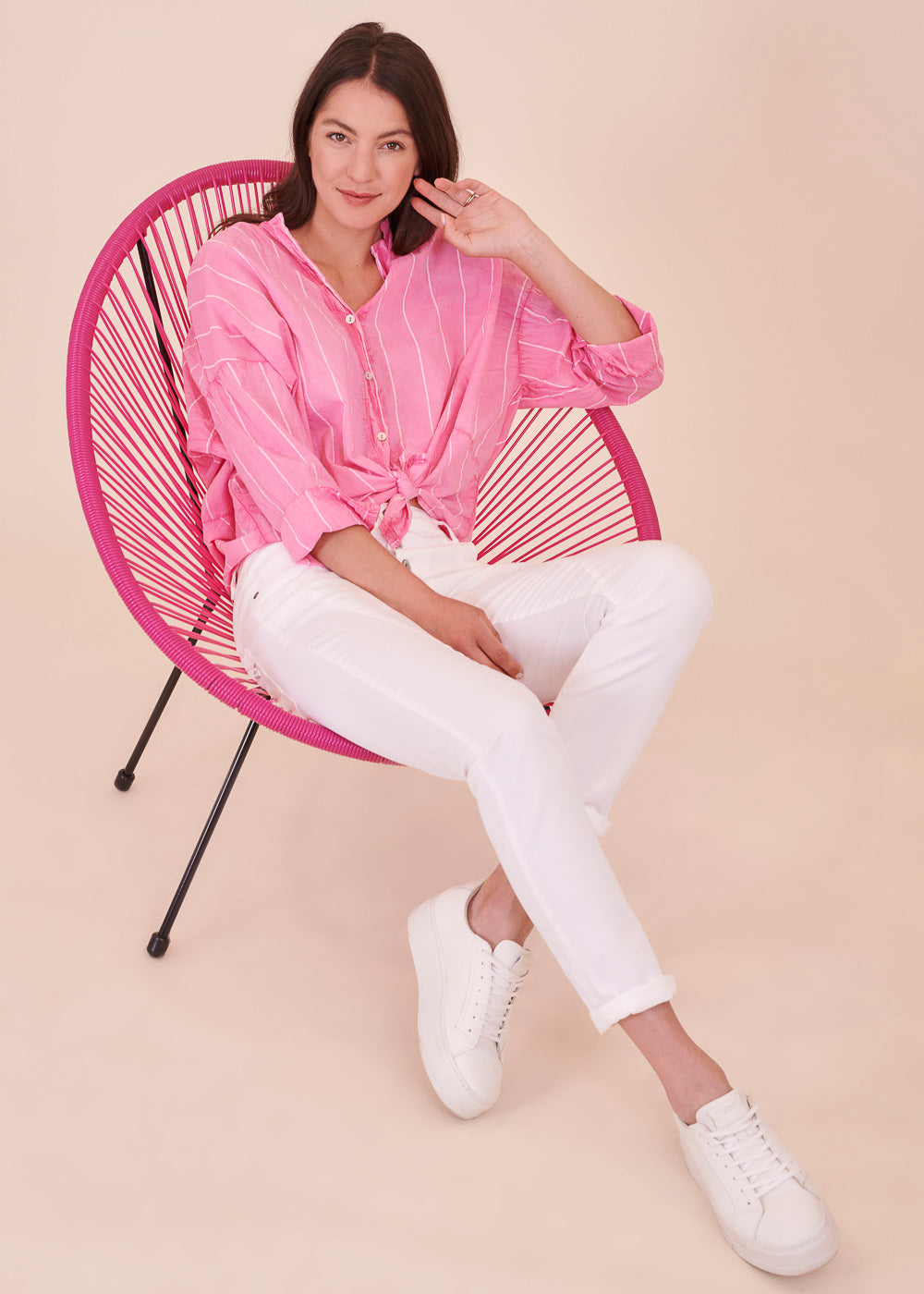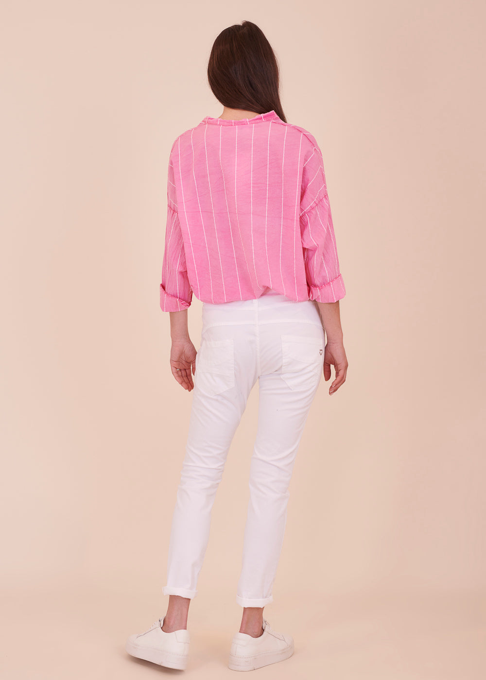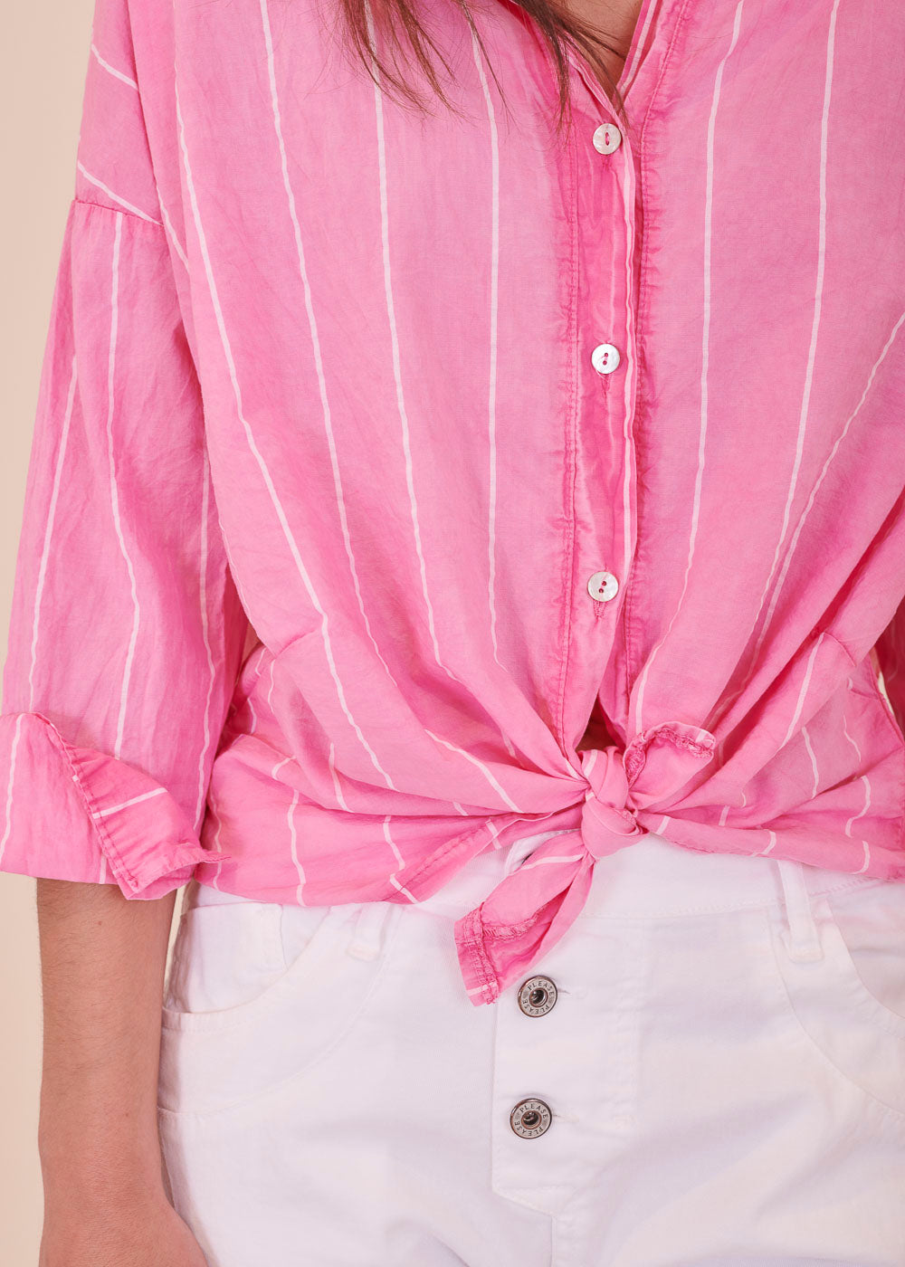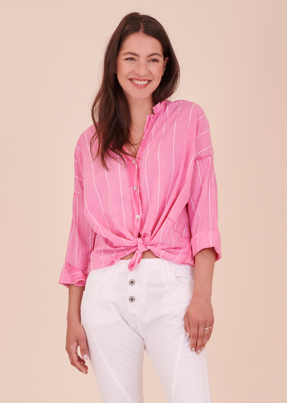 Schön luftig und damit perfekt für heiße Tage. Diese Strehkragenbluse aus Baumwolle und Knopfleiste überzeugt durch ihr großartiges Design. Die lockere Passform und überschnittenen Schultern verleihen der Bluse eine gewisse Lässigkeit. Der Ärmel ist leicht verkürzt.