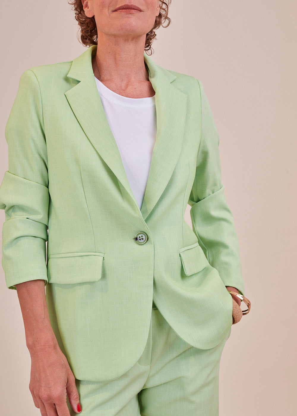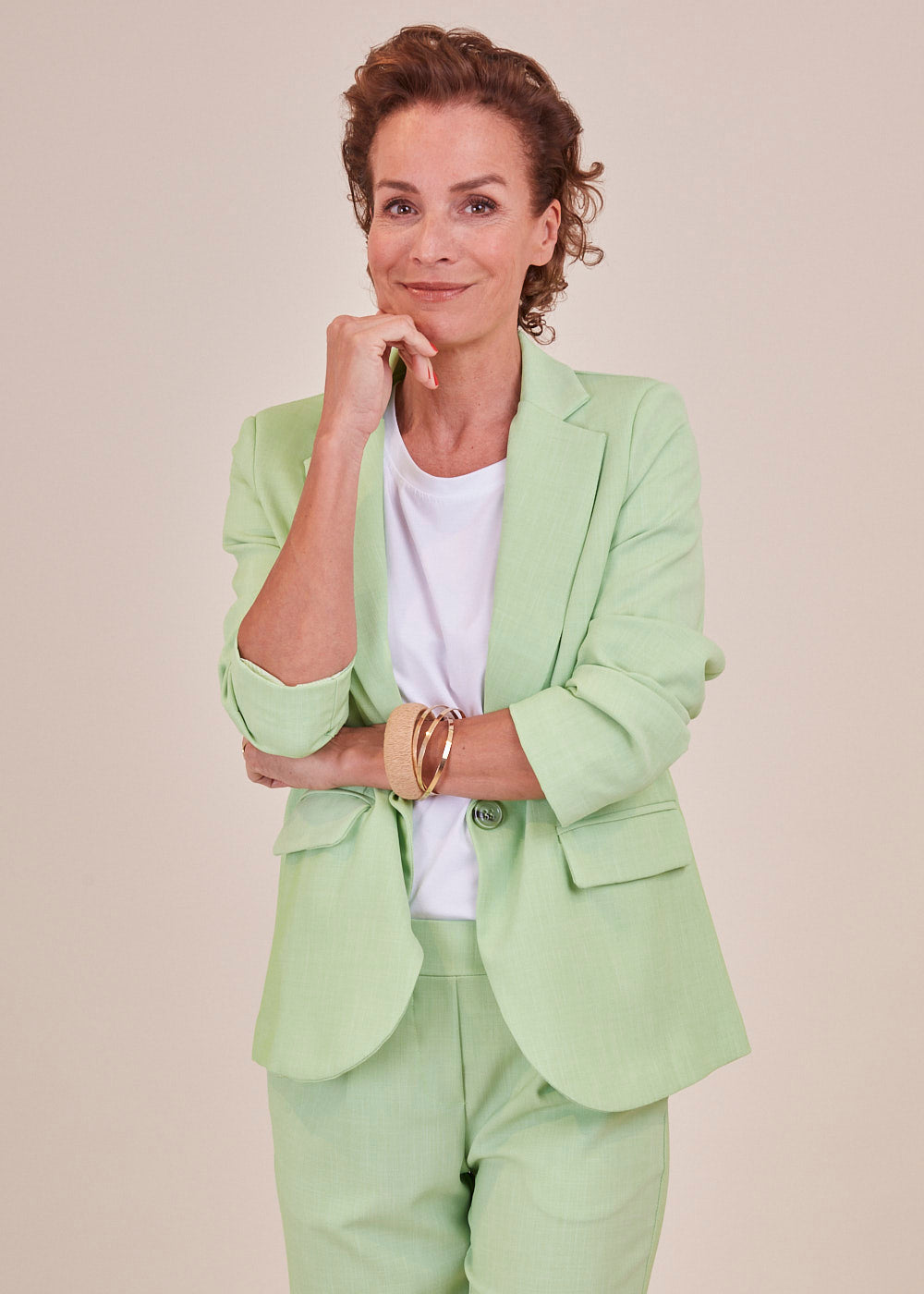 LIME! Unglaublich, wie lässig ein Blazer wirken kann: Wir haben den Klassiker in der modischen Variante. Der Blazer hat lässigen Schnitt.Fantastisch in Kombination mit der dazugehörigen Bundfalten-Hose oder leger getragen mit einer Blue-Jeans.