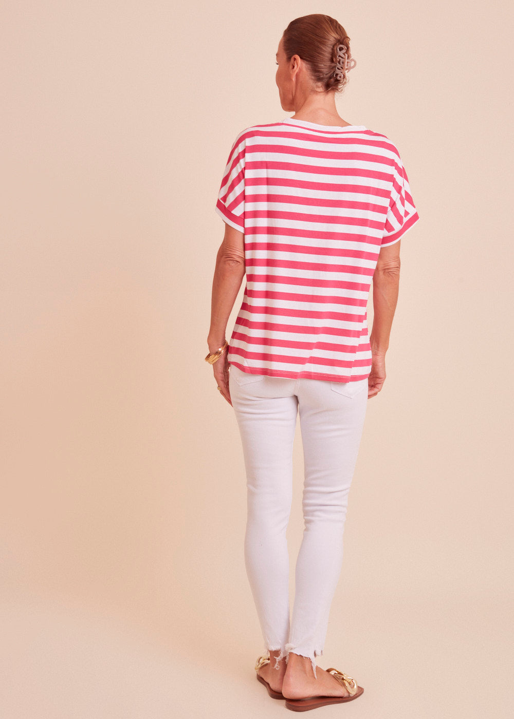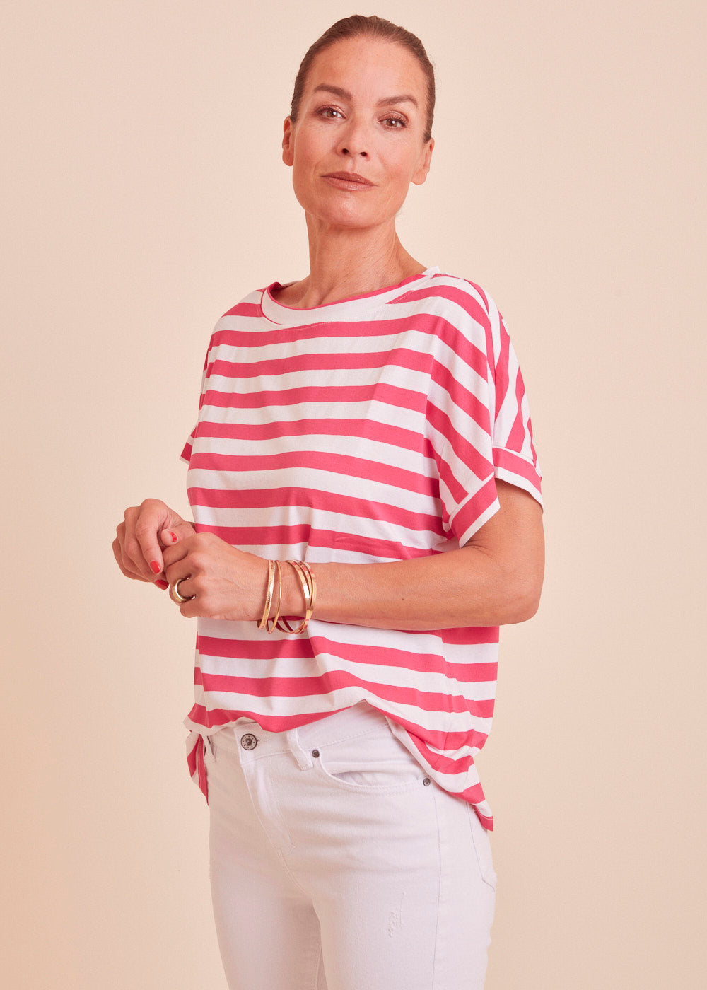 T-Shirt aus weicher Baumwolle mit einem Rundausschnitt und überschnittenen Schultern.