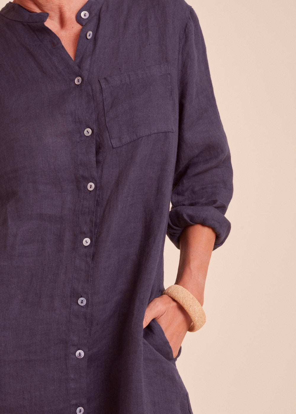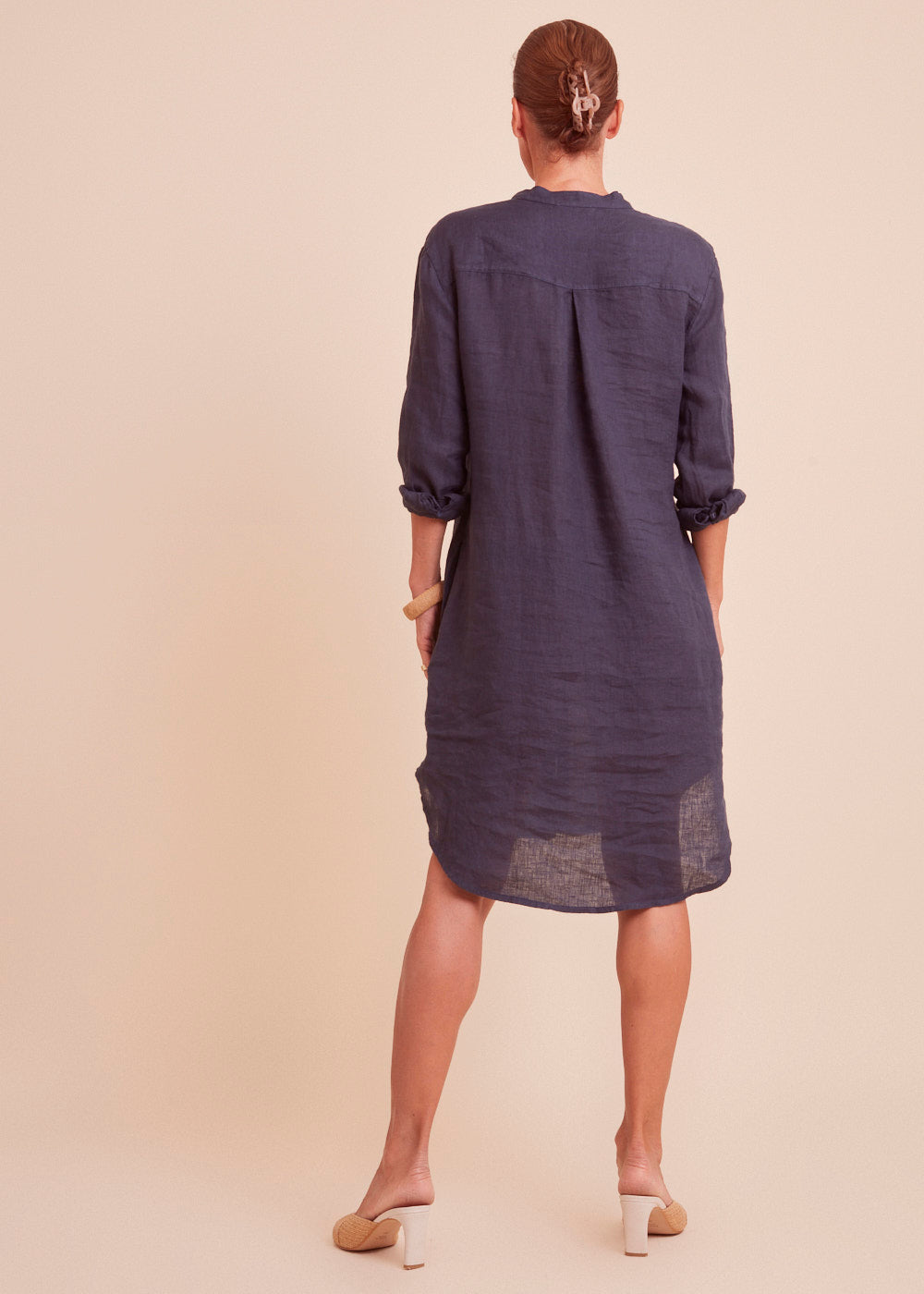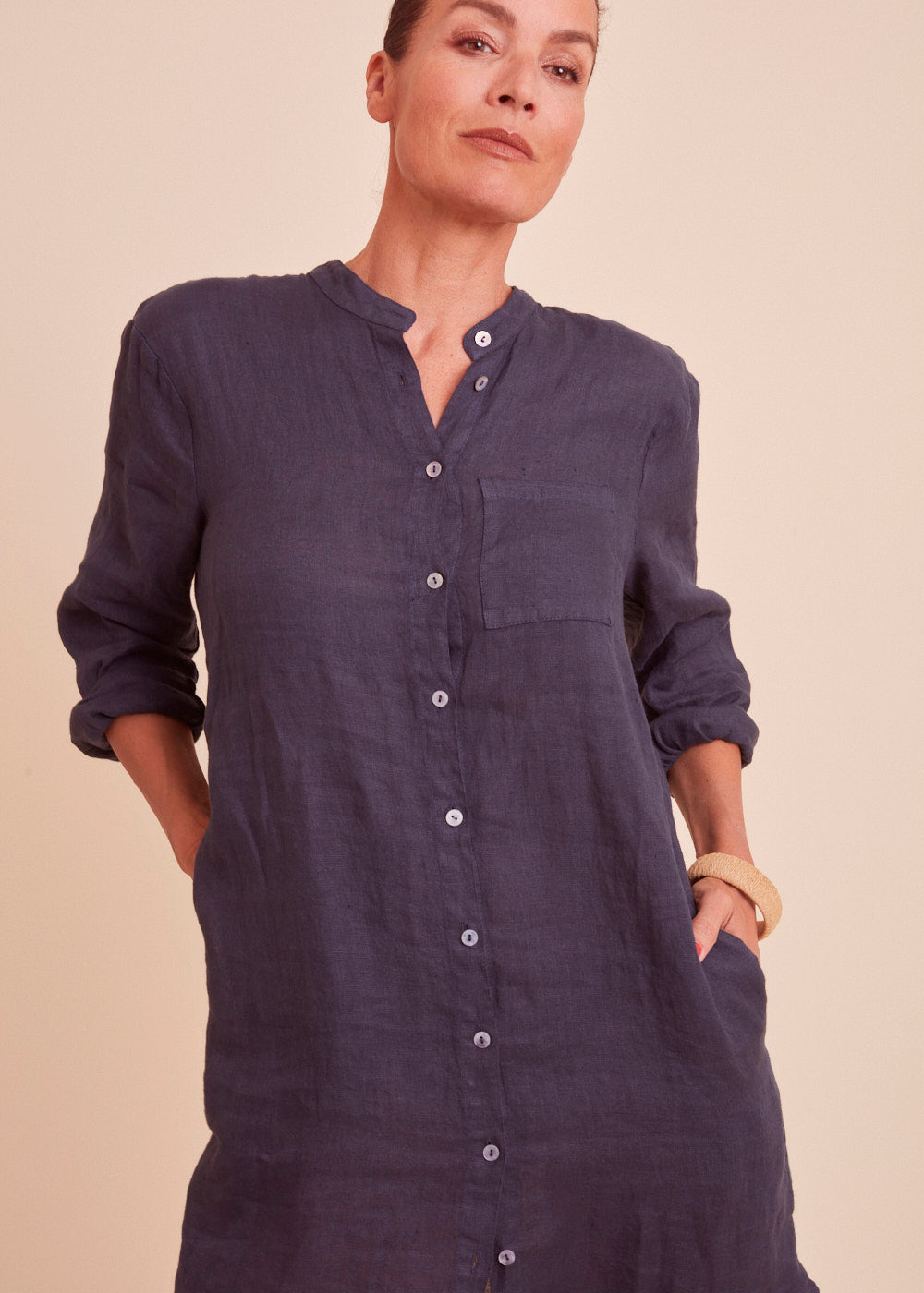 Dieses Leinenkleid im Hemdblusenstil ist schon jetzt deiner neue Lieblingsartikel. Die wunderschöne dunkel blaue Farbe ist dabei zeitlos und modern. Das angenehme Leinenmaterial kühlt auch an heißen Sommertagen deine Haut. Das Hemdblusenkleid-Outfit wird mit Sneakern oder Plateau Sandalen sportlich-modern.