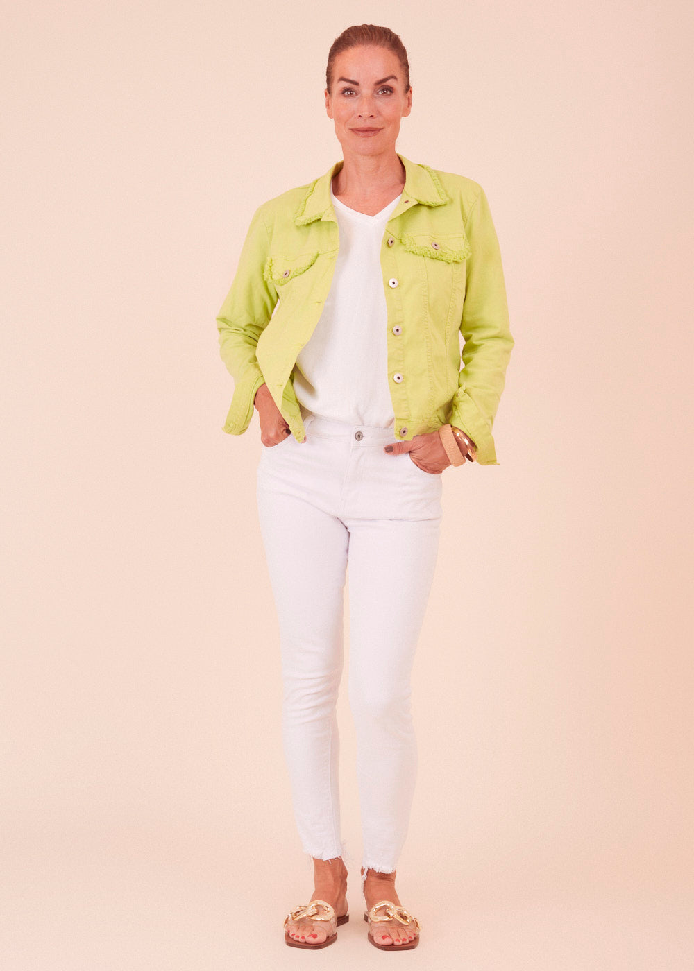 Diese Jacke wird jetzt zu deinem Lieblingsstück. Die langen Ärmel schließen mit einer Manschette ab. Das sorgt für einen guten Sitz, denn sie können nicht mehr verrutschen. Die Jeansjacke ist sehr figurbetont geschnitten, sodass du deinen Körper schön in Szene setzt. Mit den Brusttaschen hast du einen guten Stauraum für kleinere Gegenstände wie Hausschlüssel oder Kleingeld.