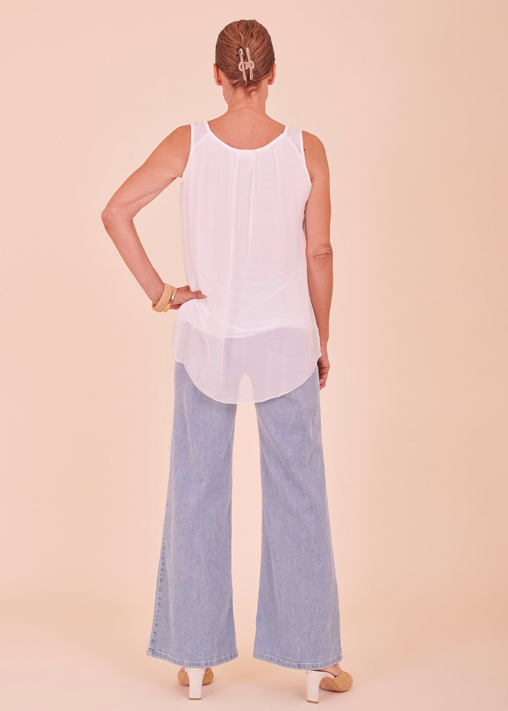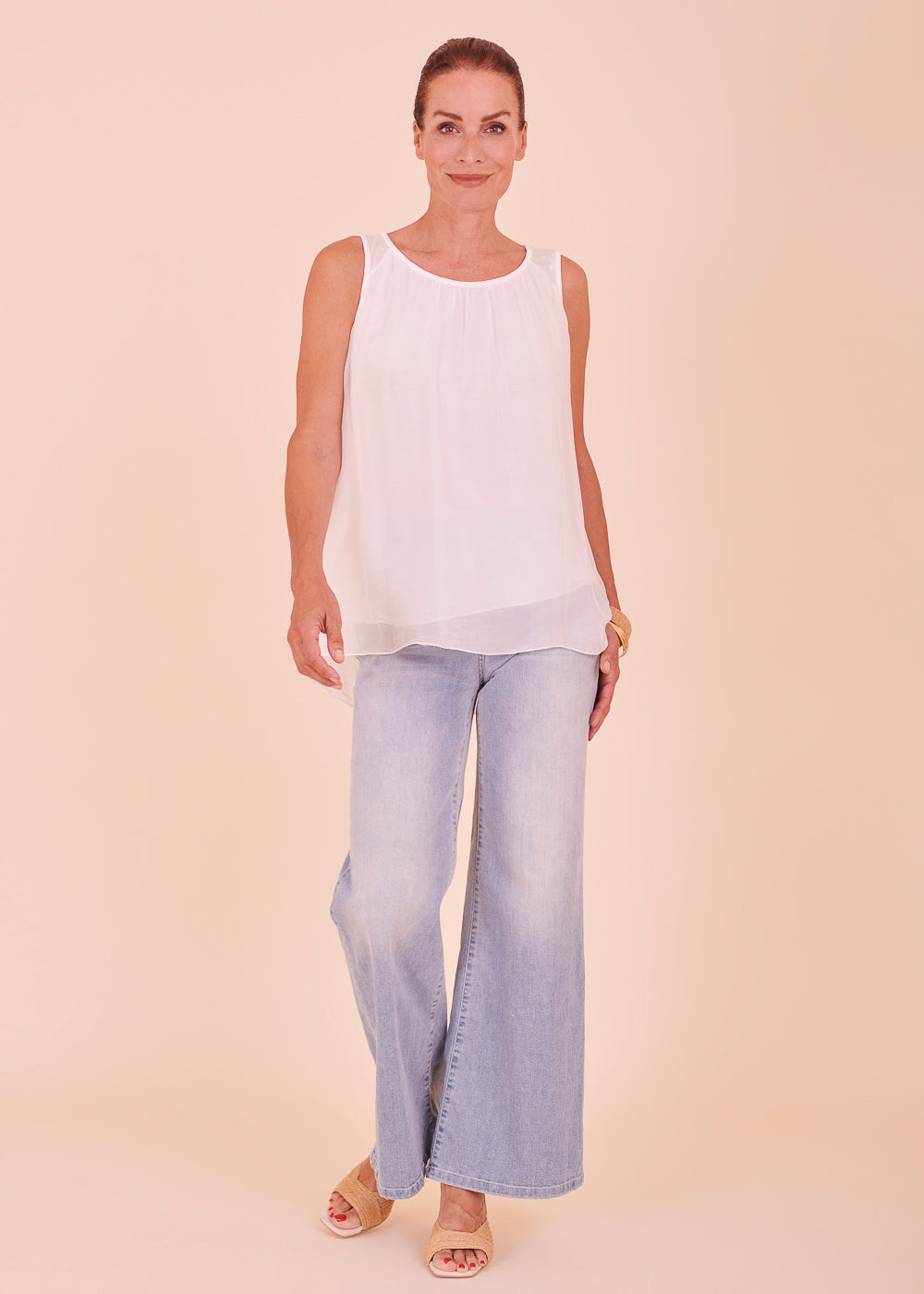Dieses leichte Seidentop ist passend für jedes Sommeroutfit. Das luftig leichte Seidenmaterial ist angenehm auf deiner Haut und trägt sich auch noch hervorragend bei den heißen Zimmertemperaturen. Sie hat einen angenehmer Tragekomfort dank ihrer hochwertiger Verarbeitung aus Seidenstoff.