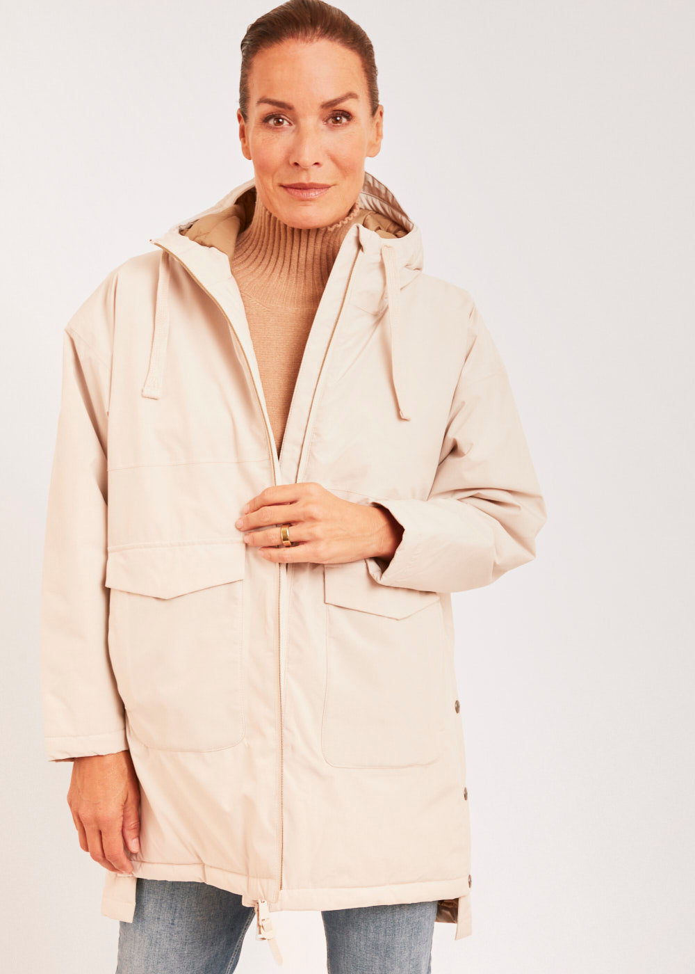 Suchst du nach einer hochwertigen Outdoorjacke in einem zeitlosen Beige? Unsere Jacke mit seitlichen Knöpfen ist genau das Richtige für Dich! Mit ihrem stilvollen Design und ihrer funktionalen Ausstattung ist sie der perfekte Begleiter.