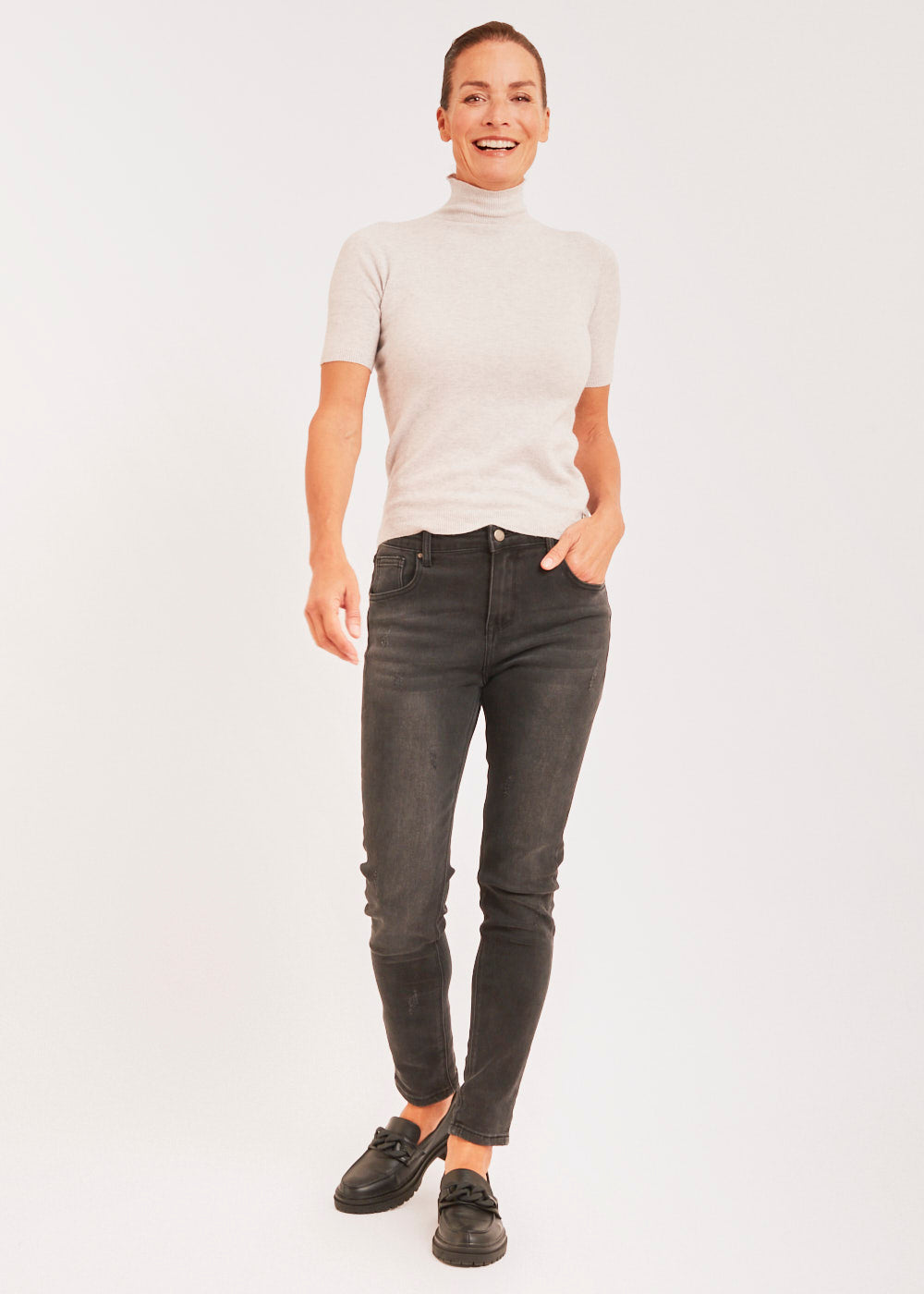 Das Model trägt bei einer Körpergröße von 179 cm die Konfektionsgröße S.